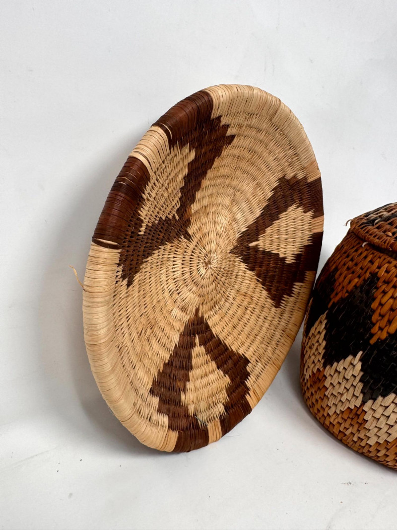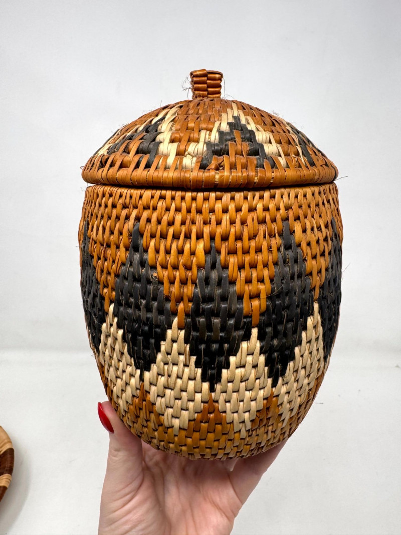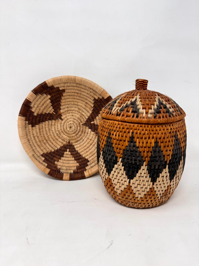 Lot # 17 - Zulu Handwoven Lidded Basket w/ Matching Saucer Tray