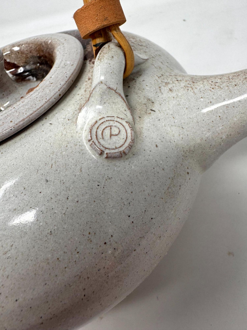 Lot # 24 - Two Asian Style Teapots Buddha Form & Studio Pottery Bamboo Handle