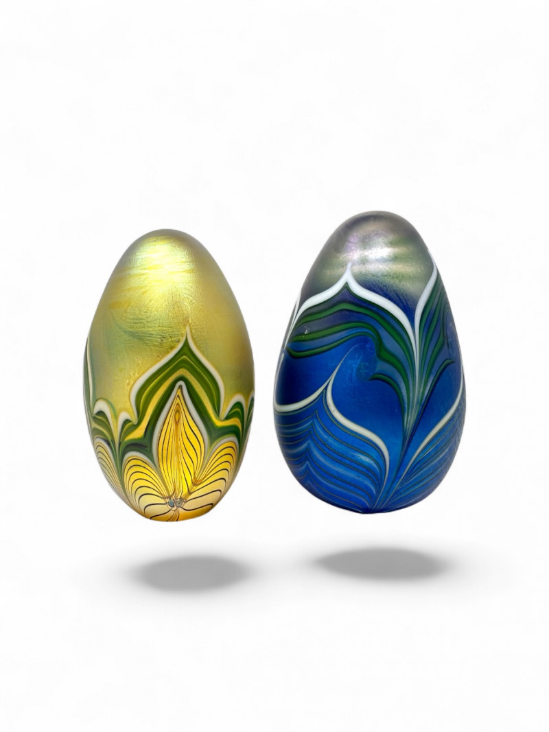 Lot # 25 - Orient & Flume Art Glass Egg Sculptures Pair