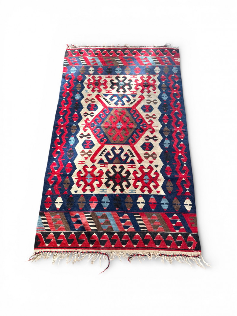 Handwoven Wool Kilim Rug Geometric Pattern.