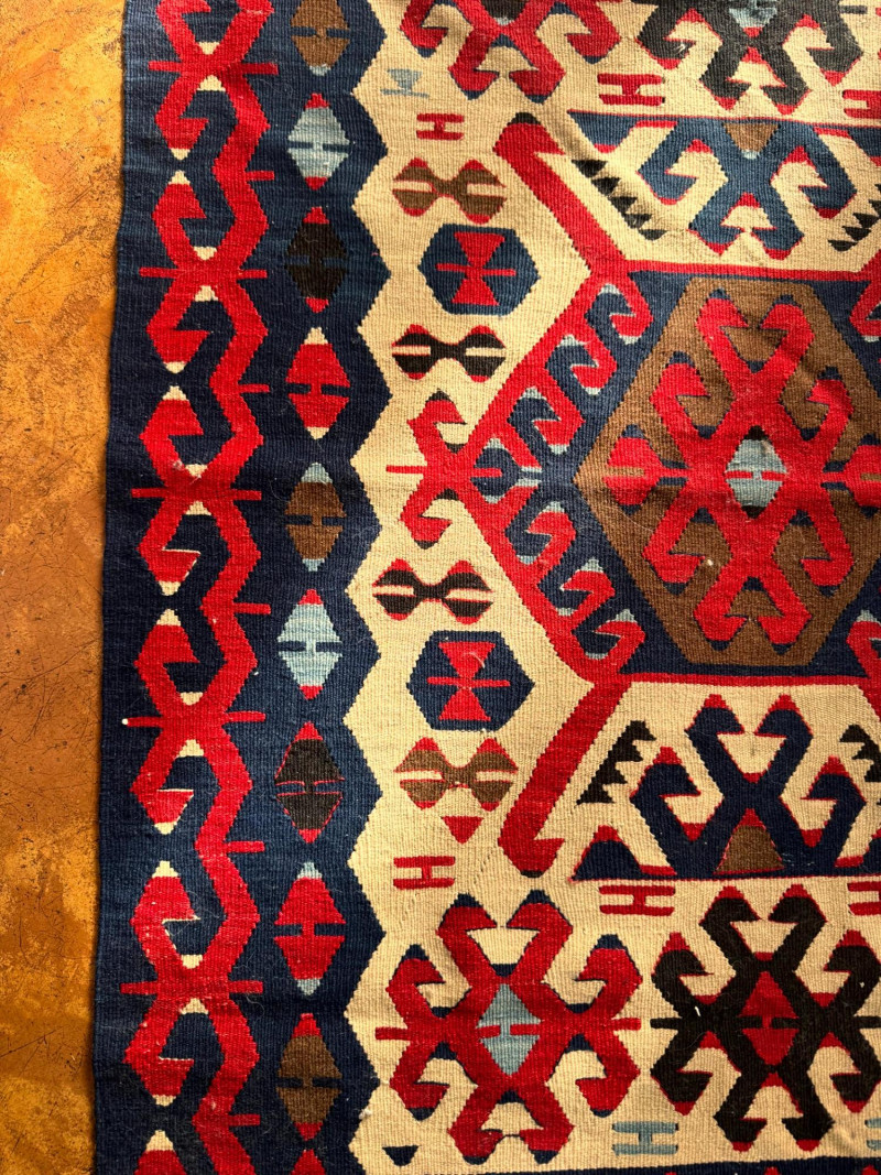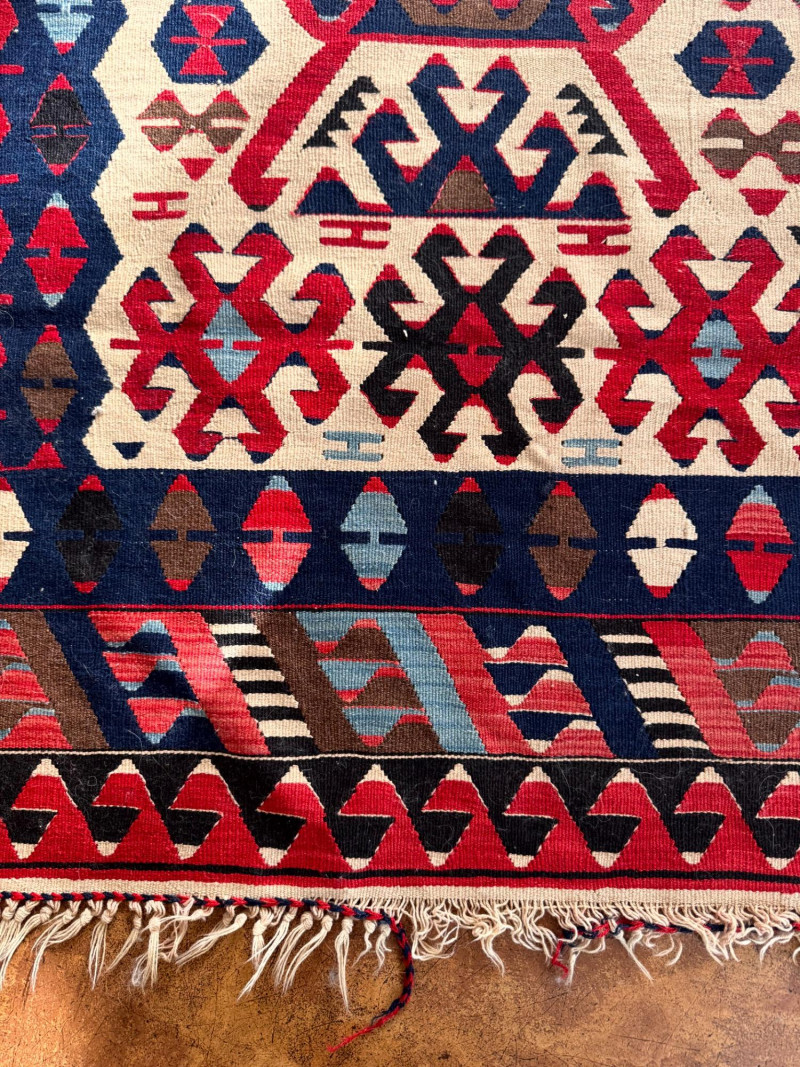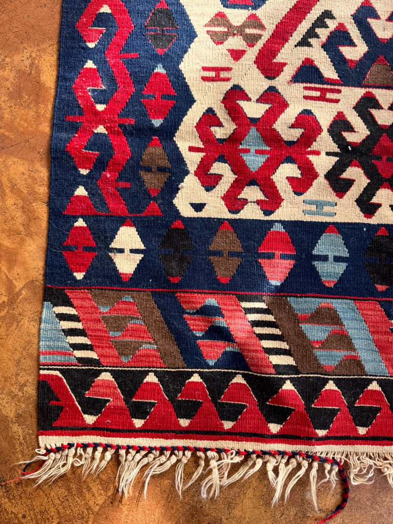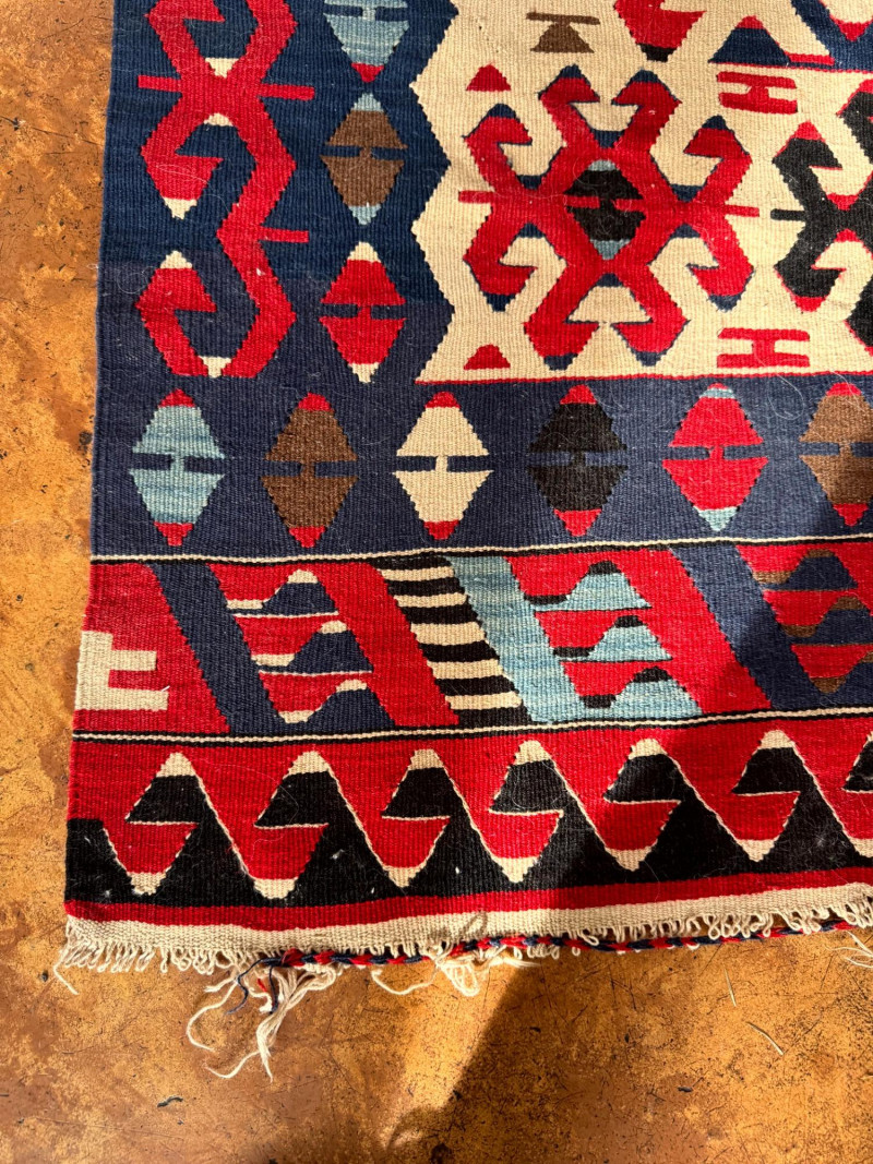 Lot # 27 - Handwoven Wool Kilim Rug Geometric Pattern