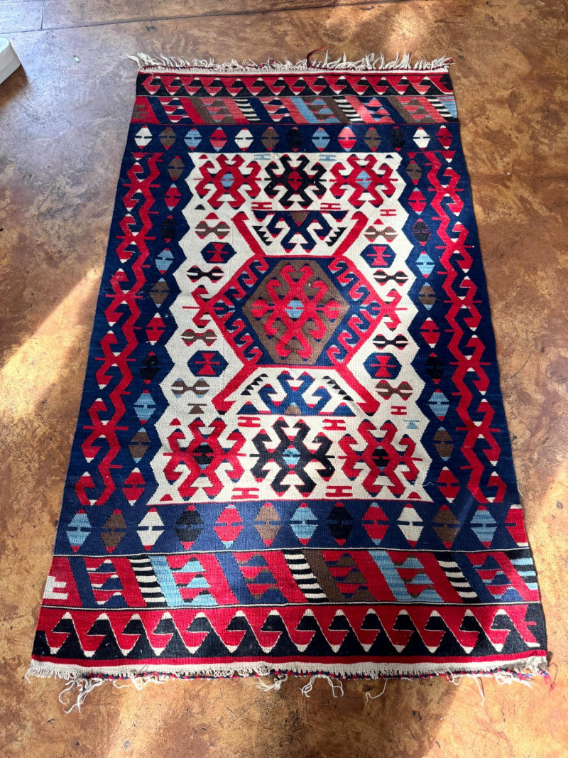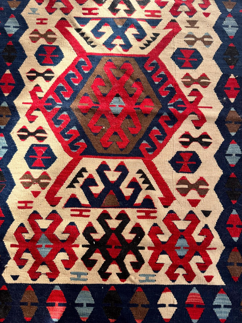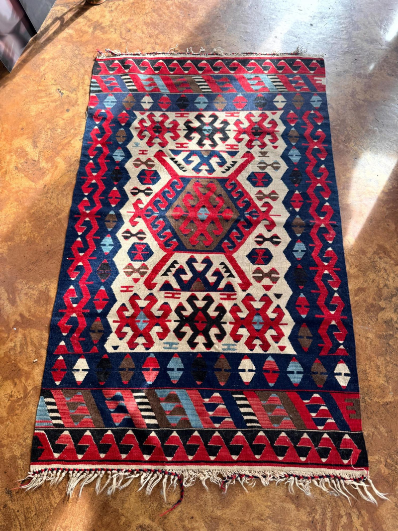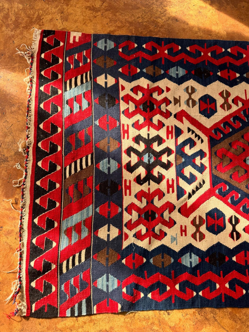 Lot # 27 - Handwoven Wool Kilim Rug Geometric Pattern