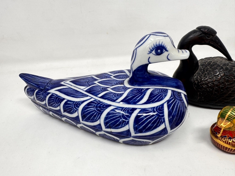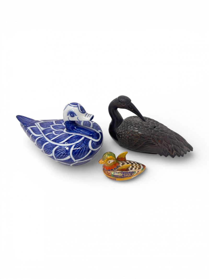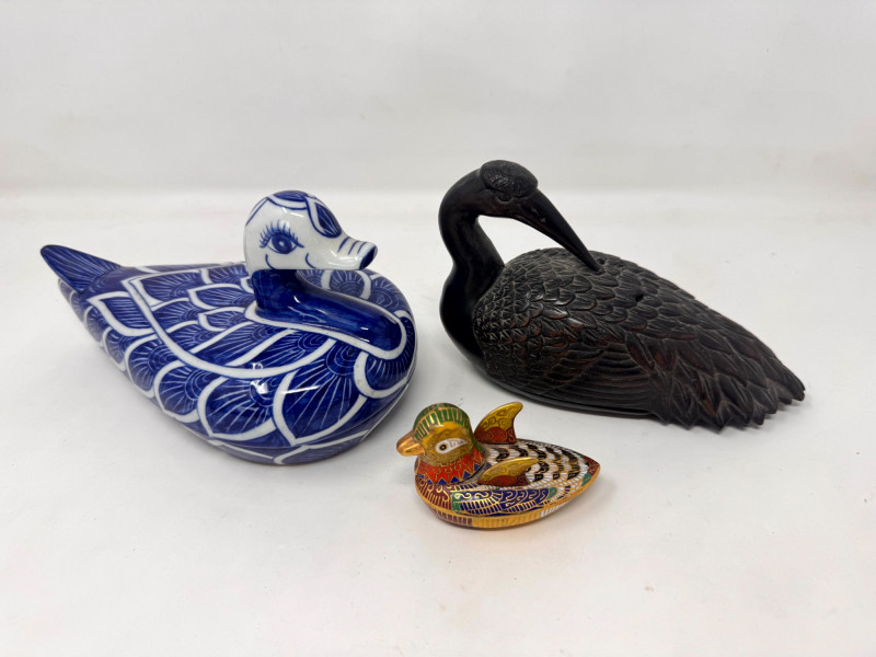 Lot # 32 - Japanese Bronze Bird Incense Burner + Decorative Bird Trinkets