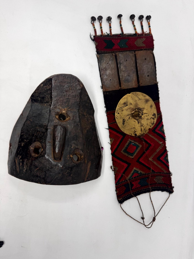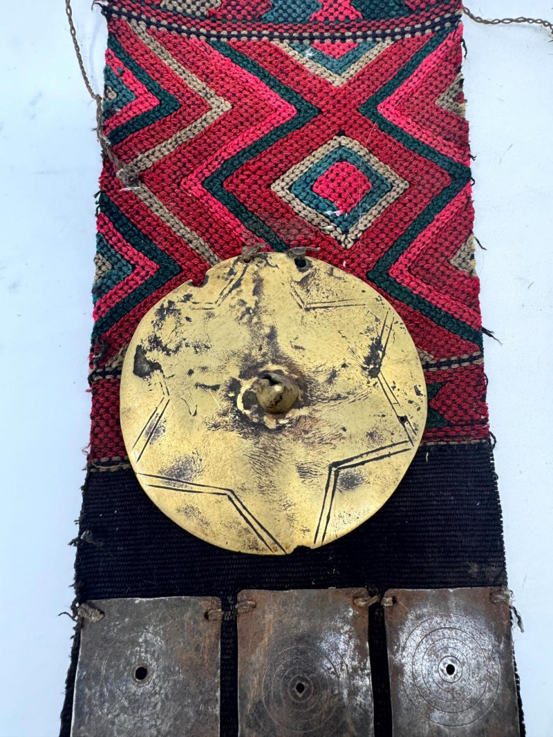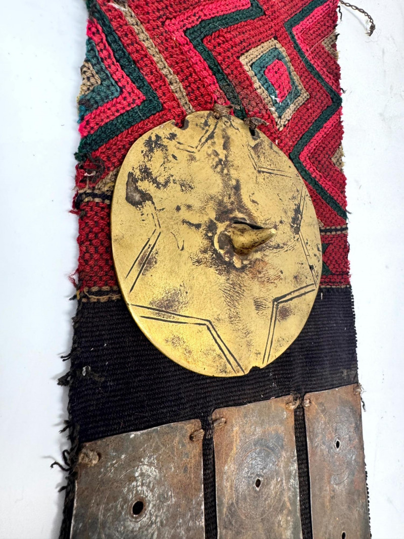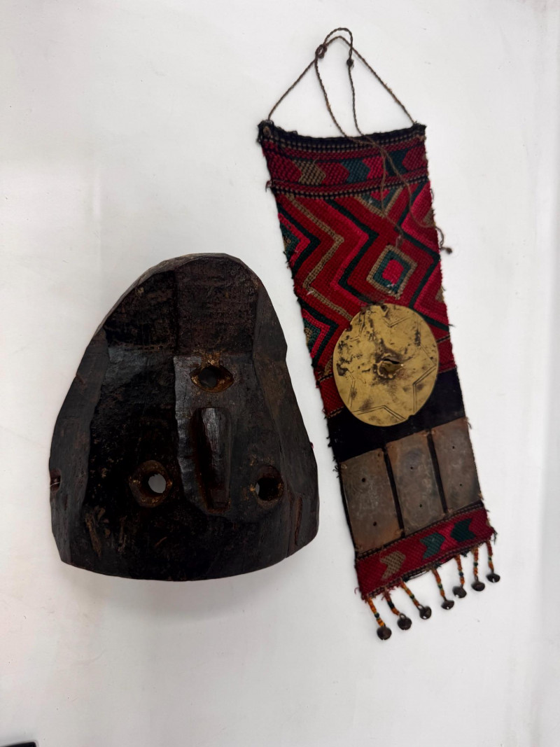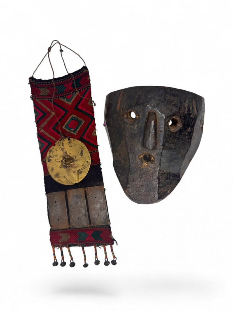 Carved Wooden Mask & Woven Textile Men’s Belt w/ Metal Details.