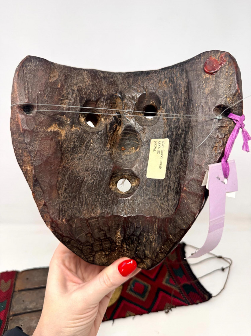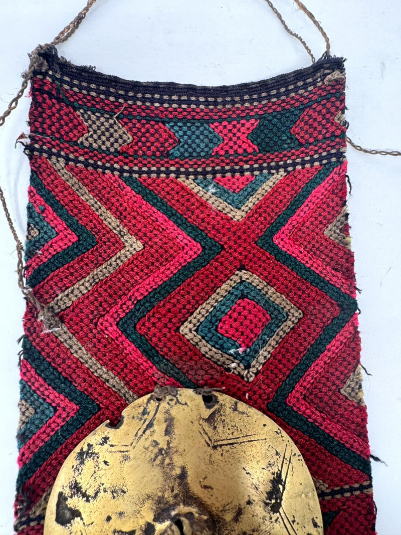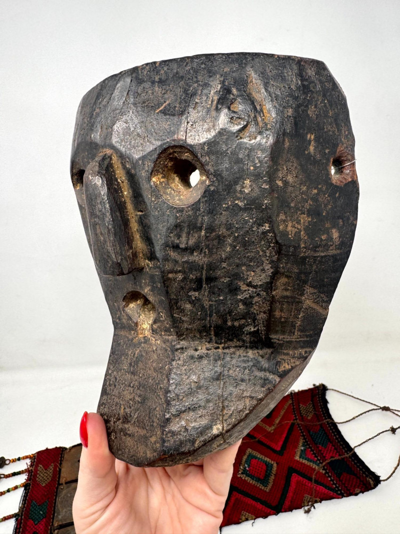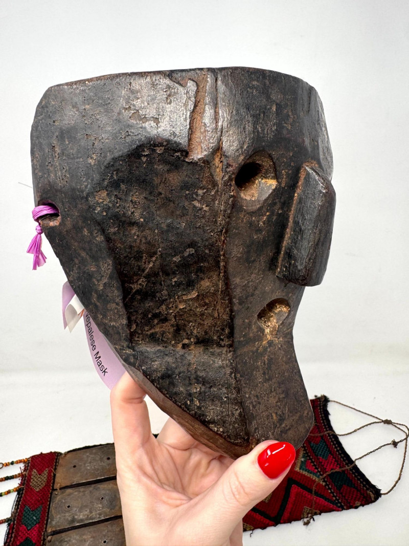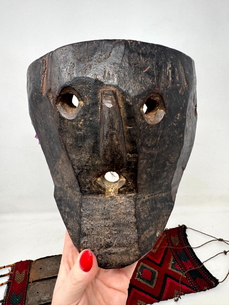 Carved Wooden Mask & Woven Textile Men’s Belt w/ Metal Details.