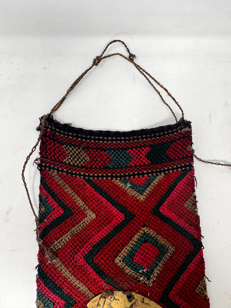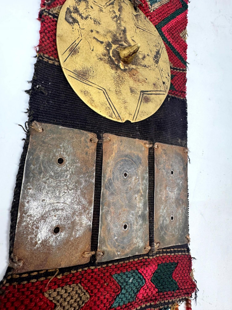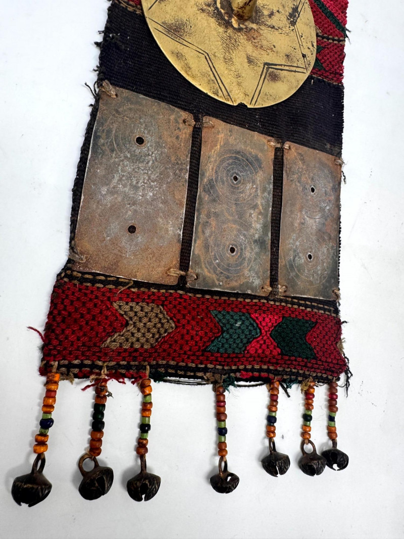 Lot # 34 - Carved Wooden Mask & Woven Textile Men’s Belt w/ Metal Details