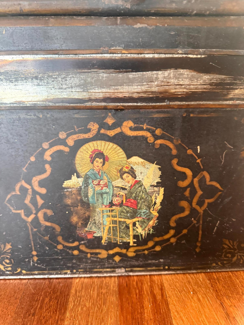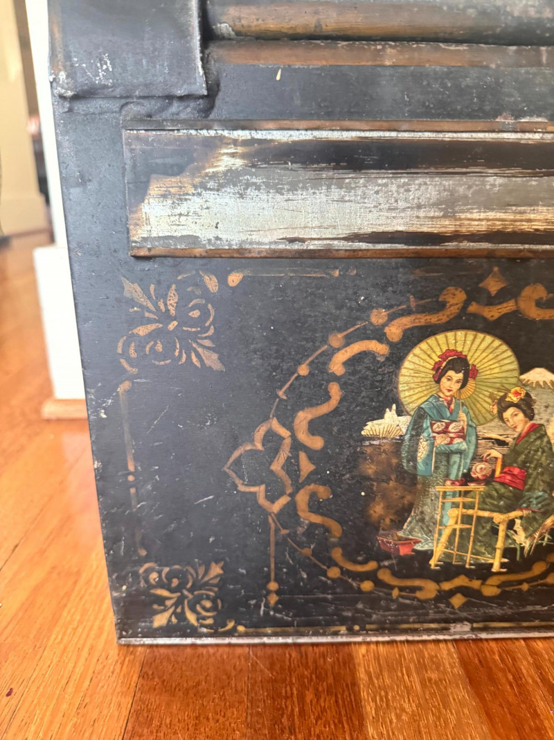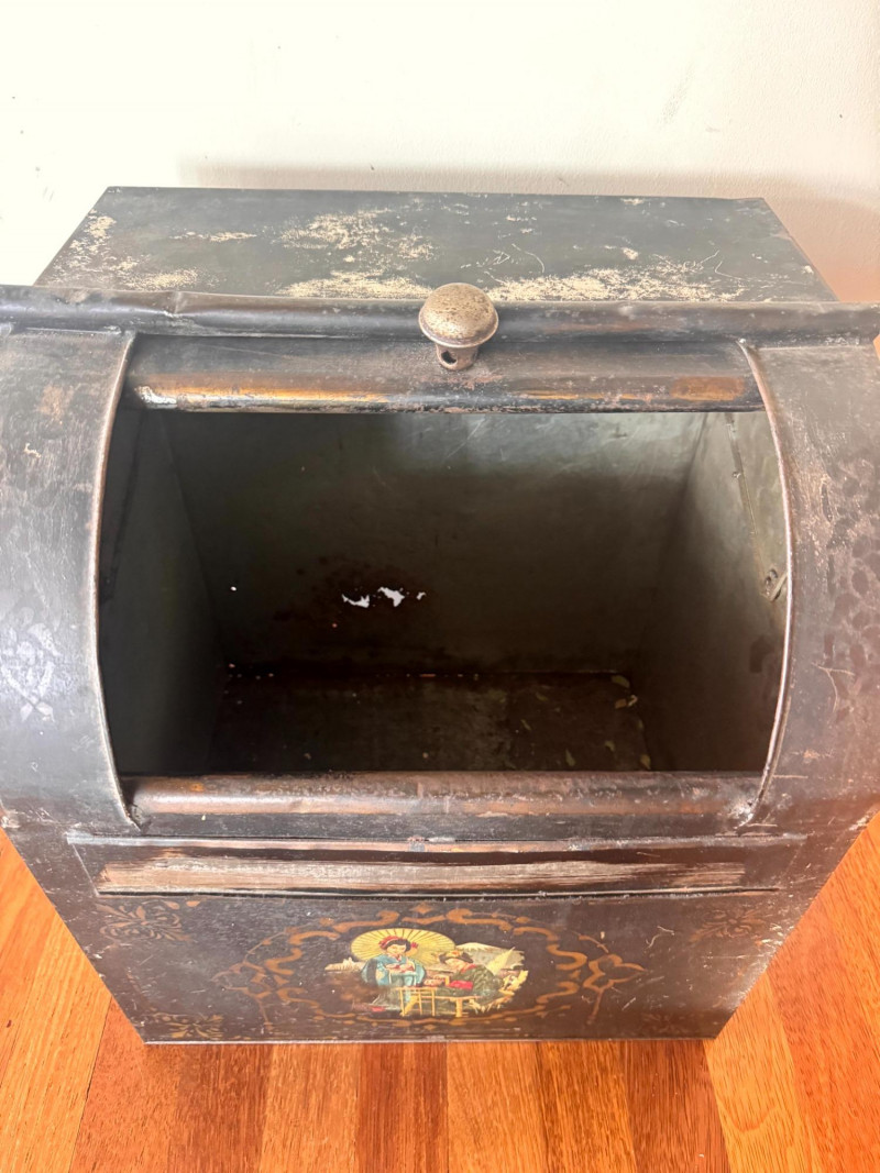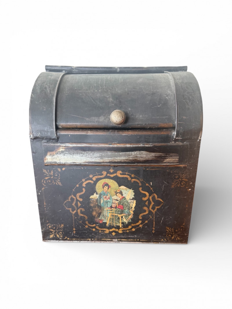 Lot # 38 - Antique Painted Tea Box / Coffee Bin w/ Figural Scene