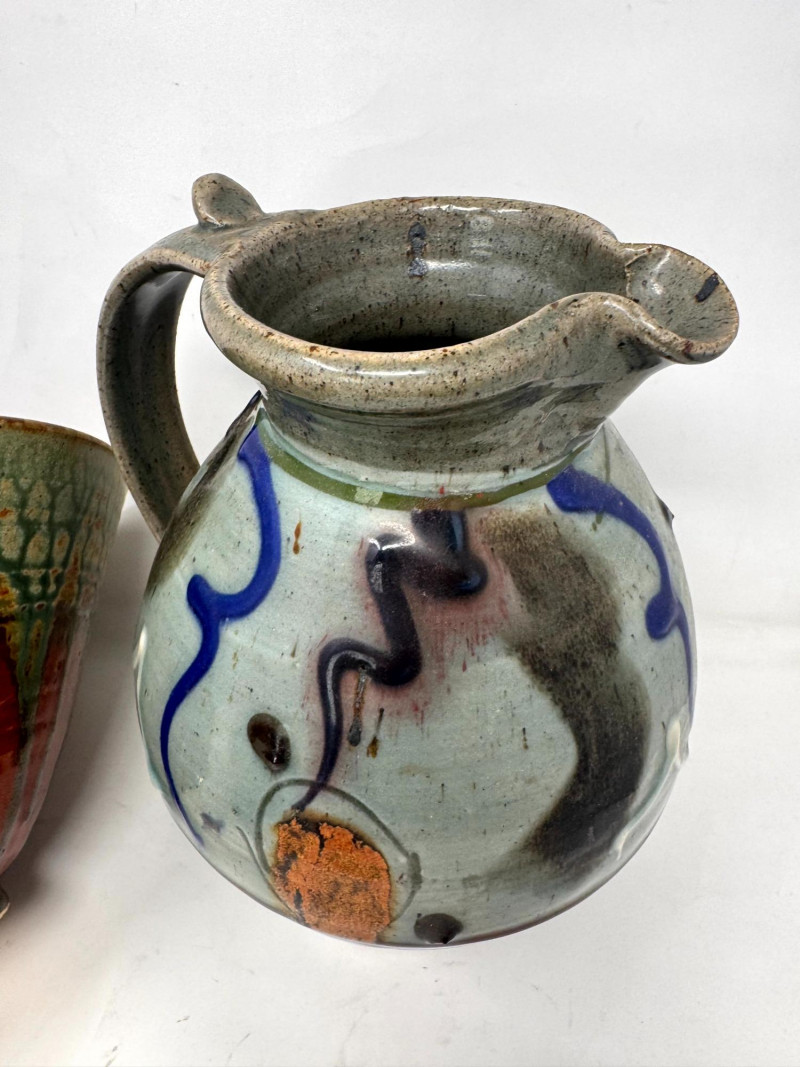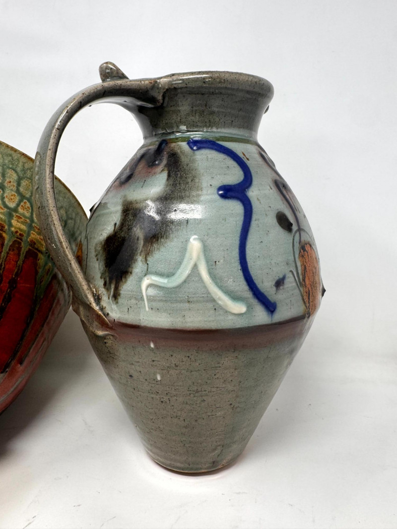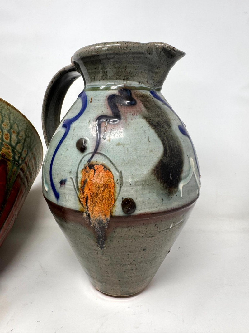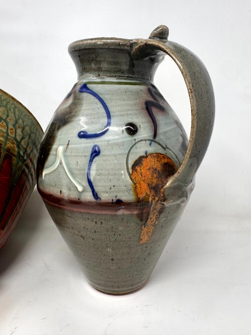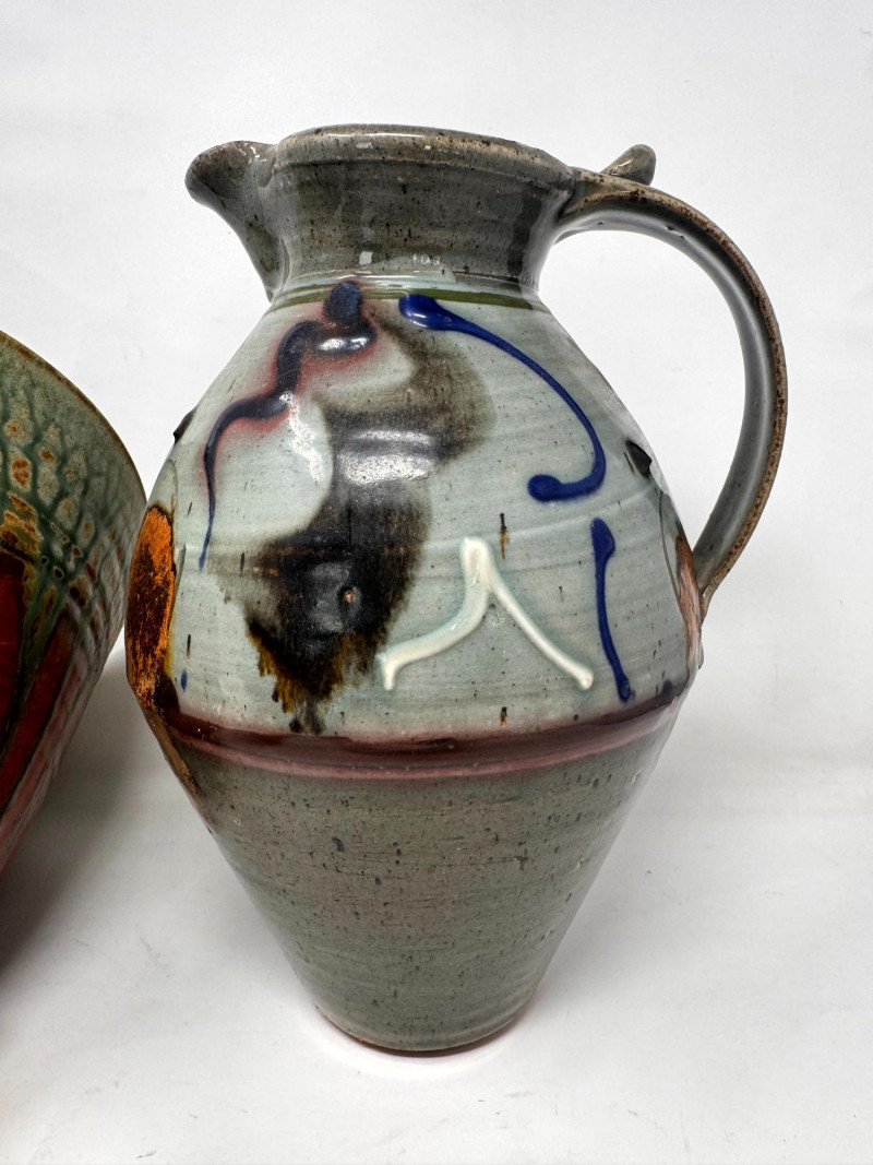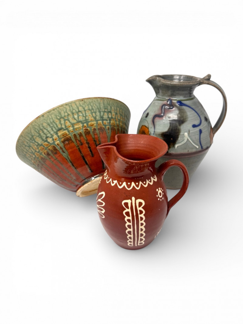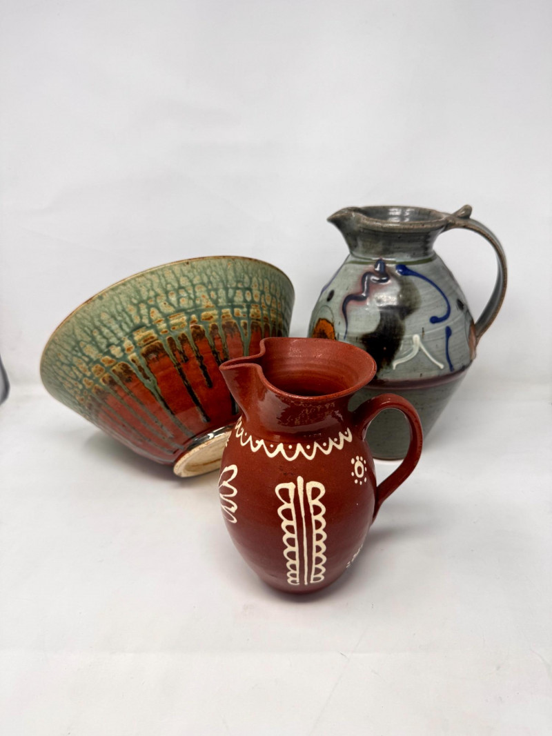 Lot # 41 - Handcrafted Studio Pottery Bowl w/ Two Glazed Stoneware Pitchers