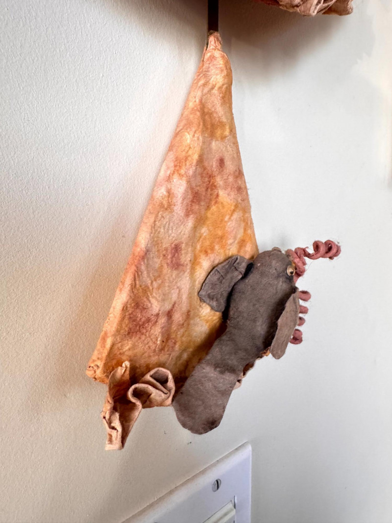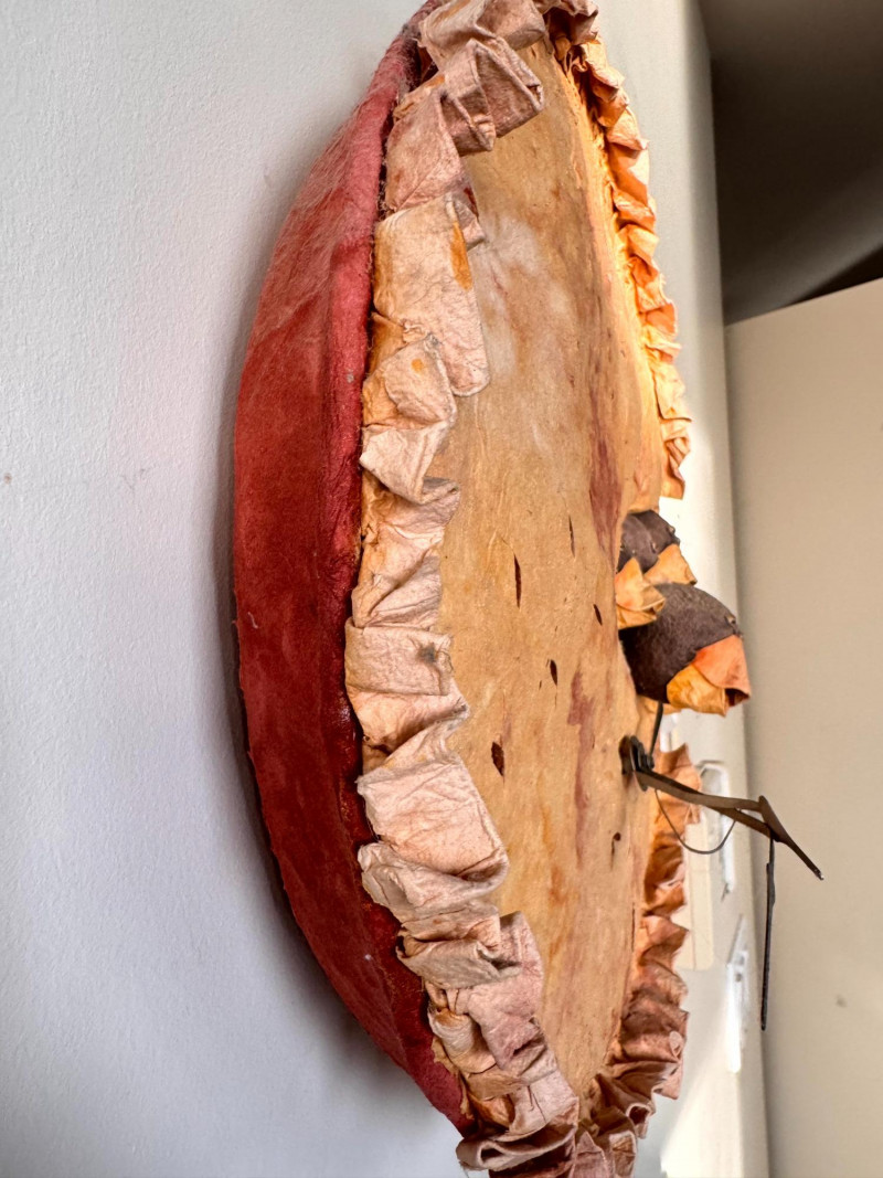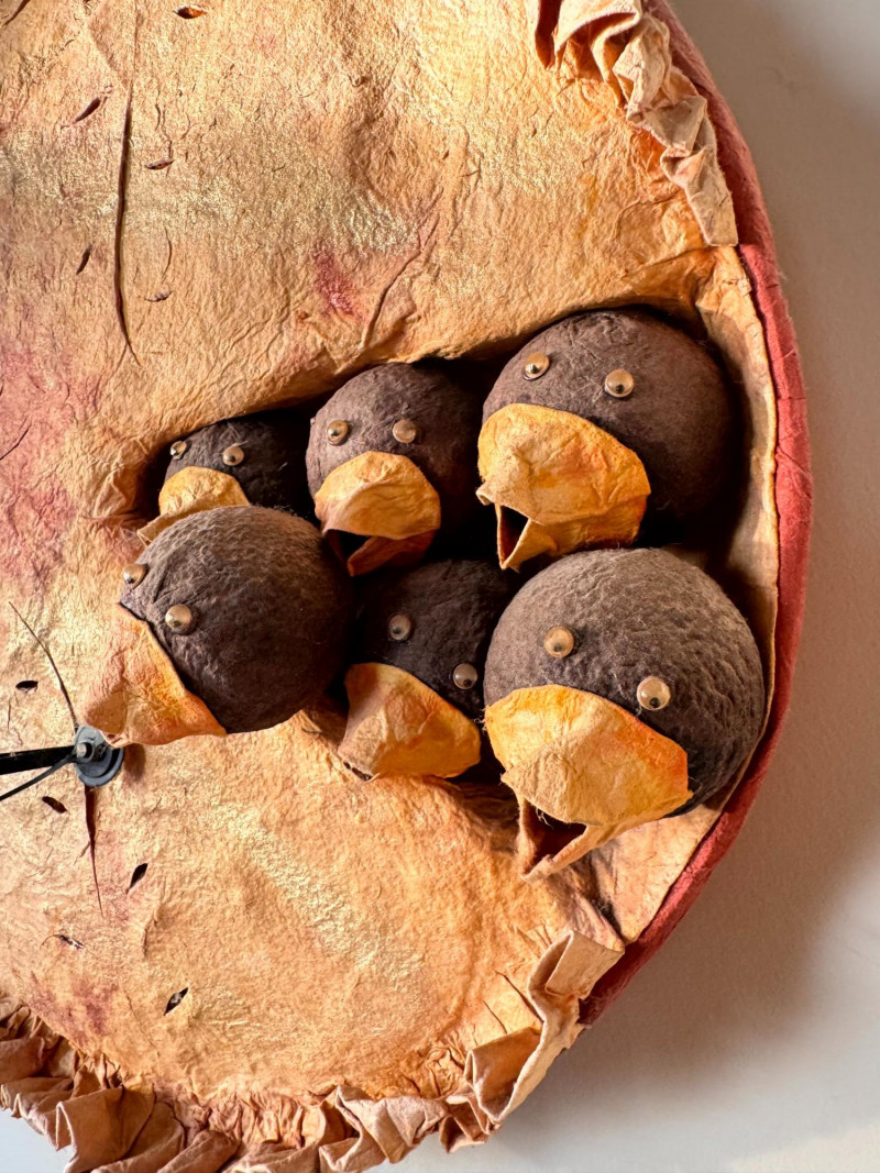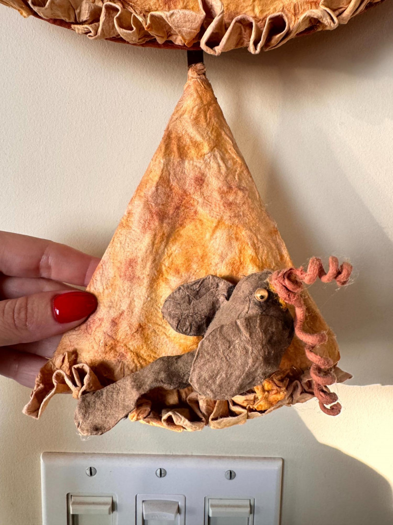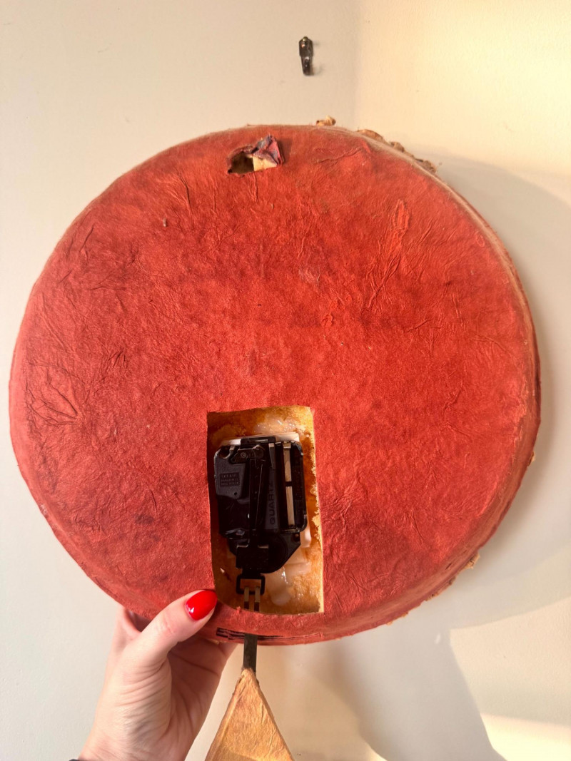 Whimsical Handmade Paper Wall Clock w/ Bird & Pie Design.