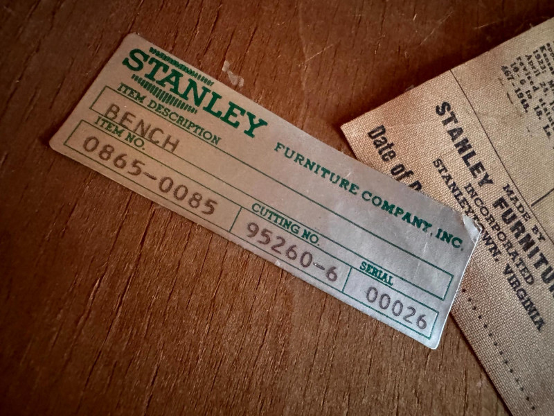 Vintage Stanley Furniture Upholstered Wood Bench.