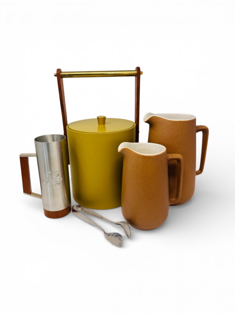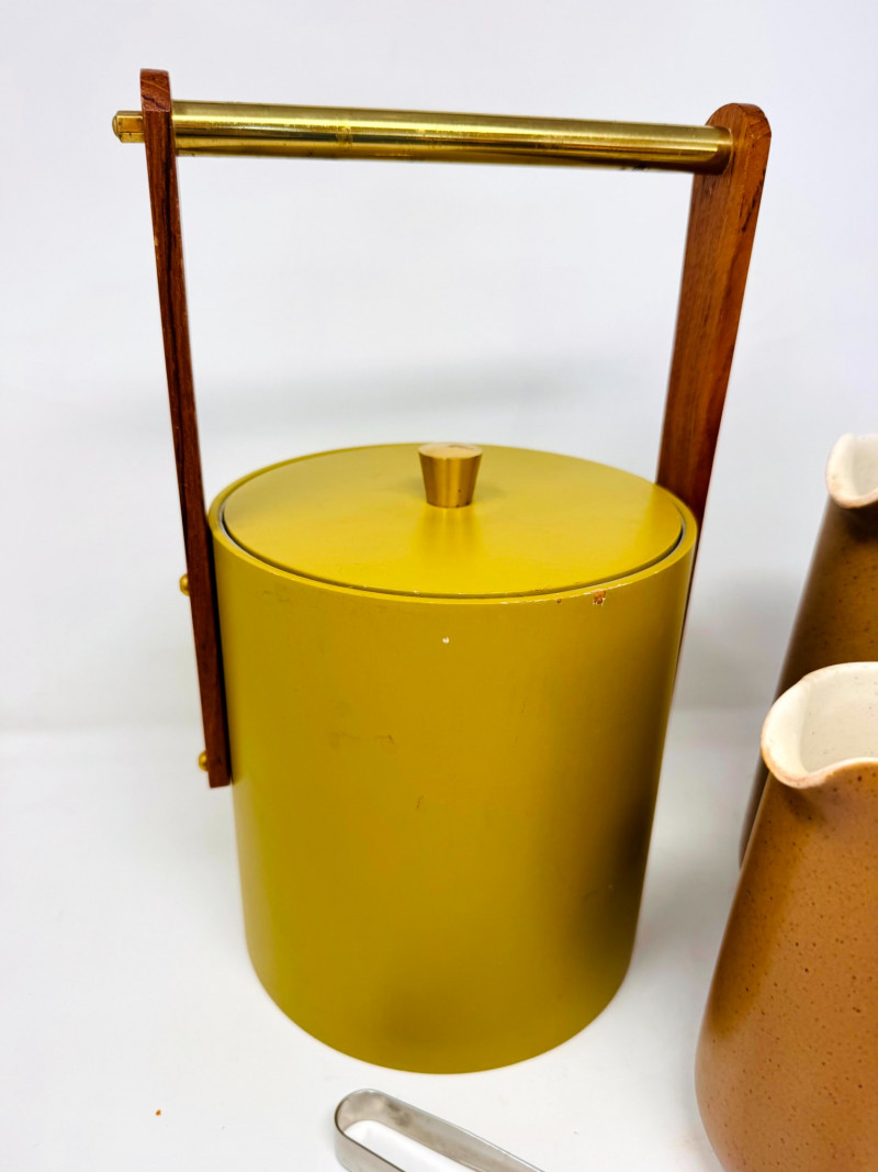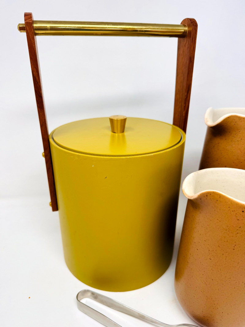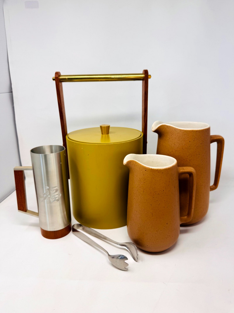 Lot # 51 - Mid Century Barware Group: Ice Bucket, Pewter Mug, Stoneware Pitchers