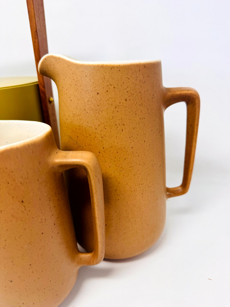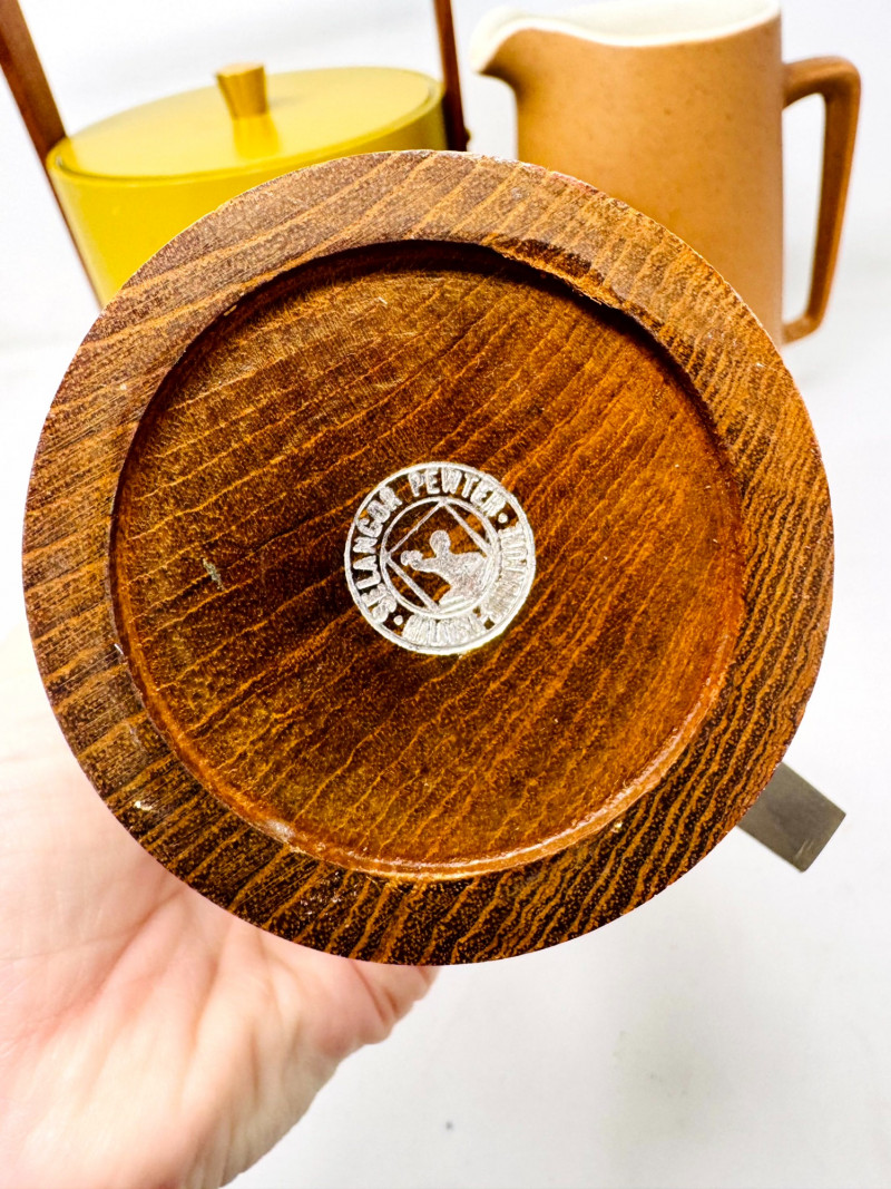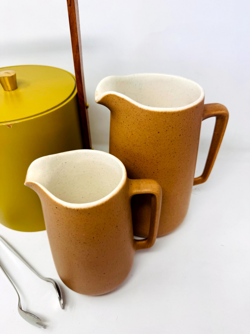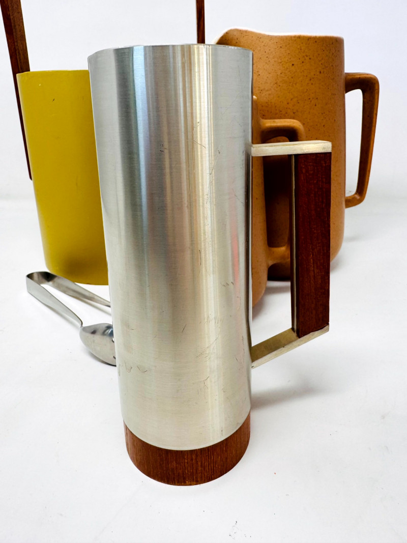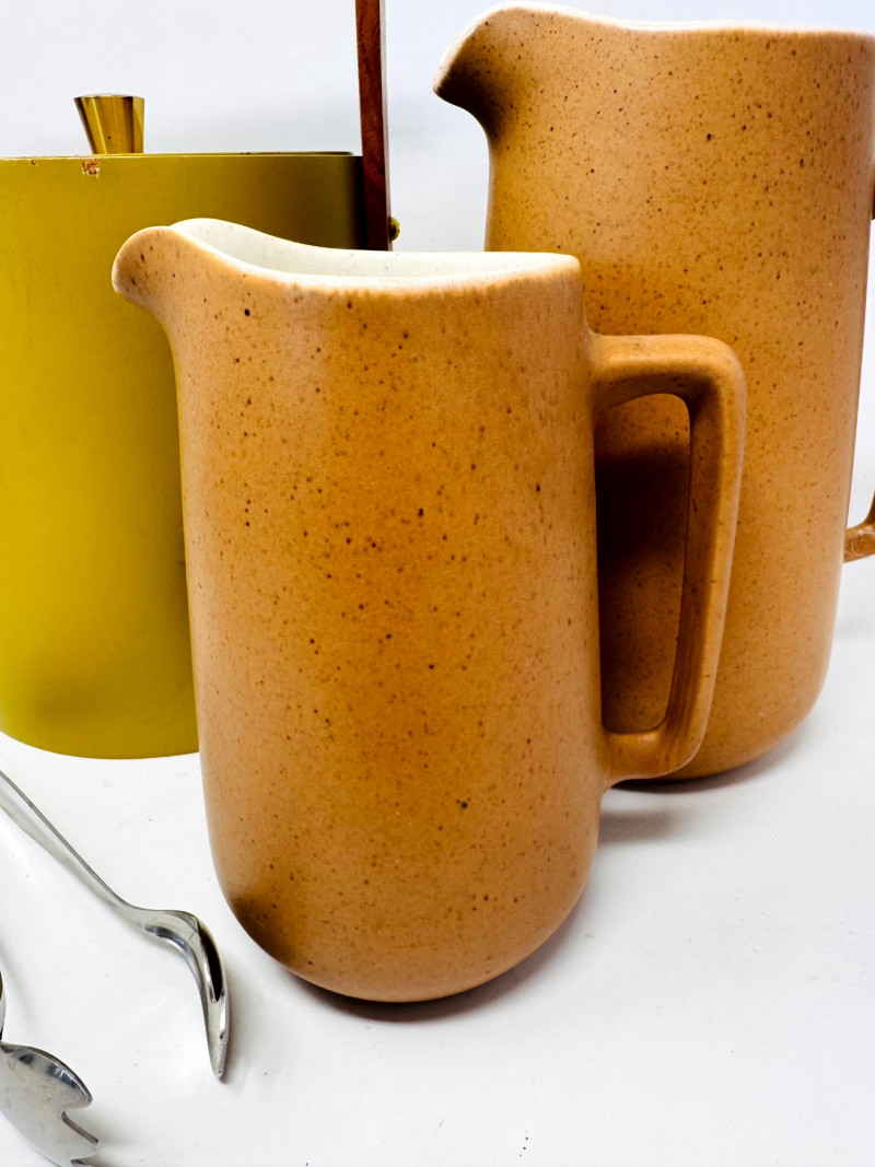 Lot # 51 - Mid Century Barware Group: Ice Bucket, Pewter Mug, Stoneware Pitchers