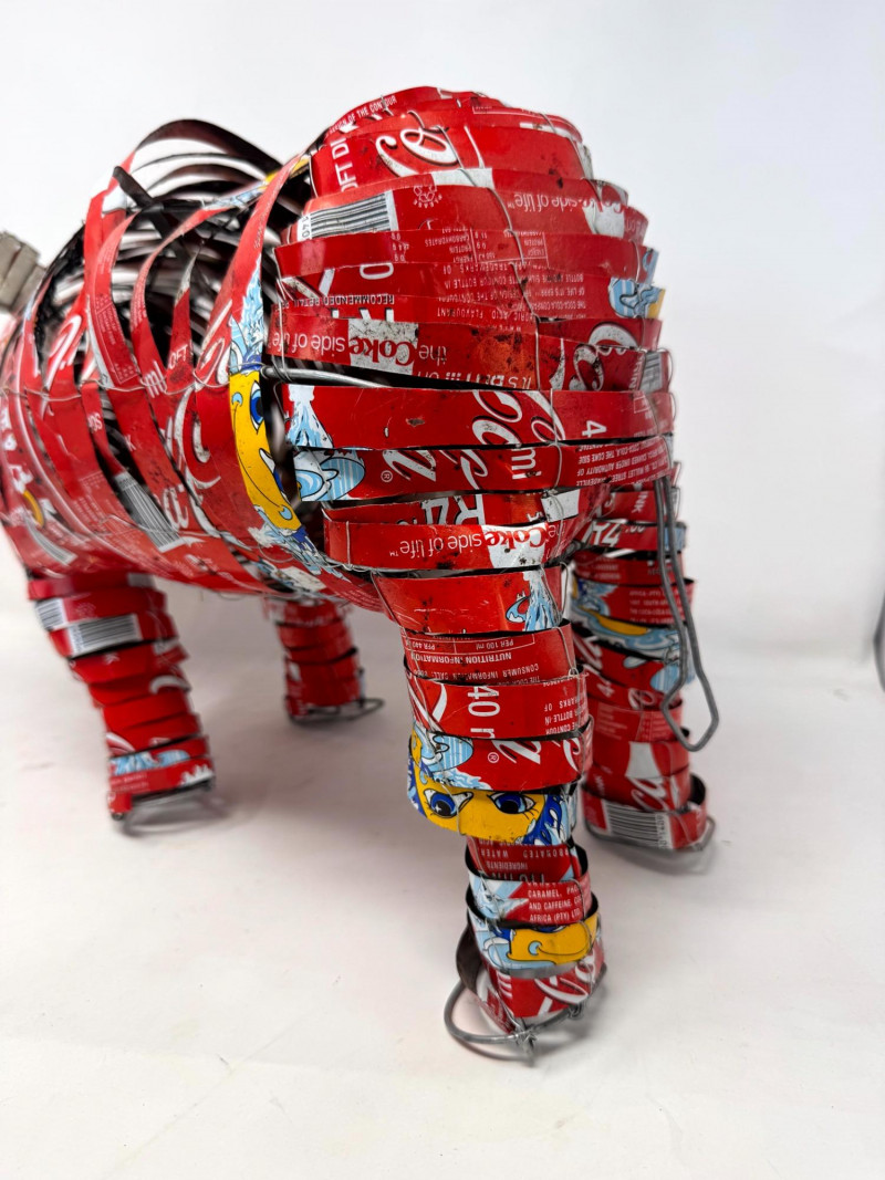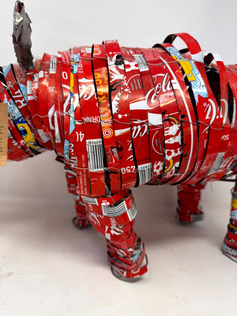 Lot # 54 - Recycled Metal Rhino Sculpture Soda Can Art By Besmo