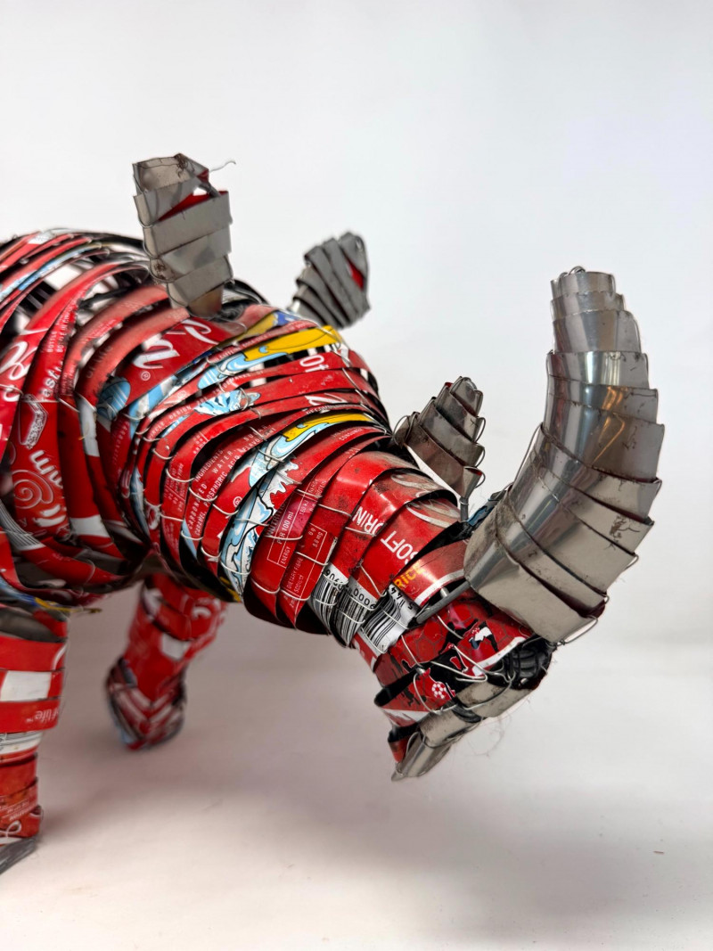 Recycled Metal Rhino Sculpture Soda Can Art By Besmo.