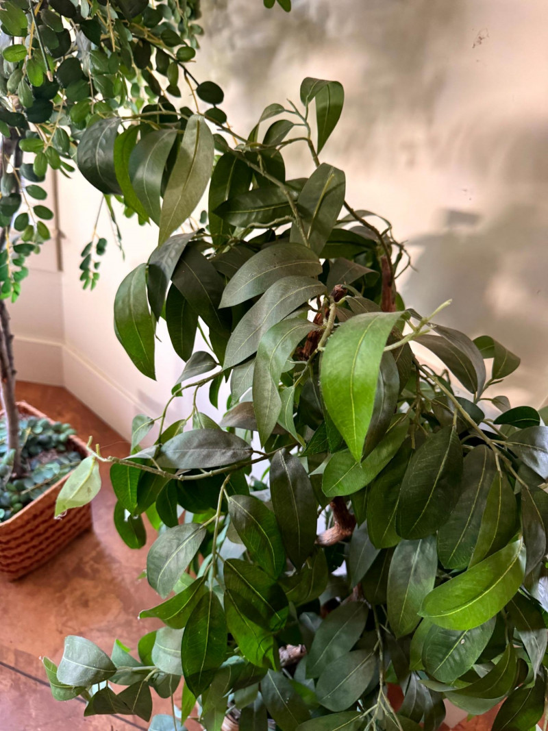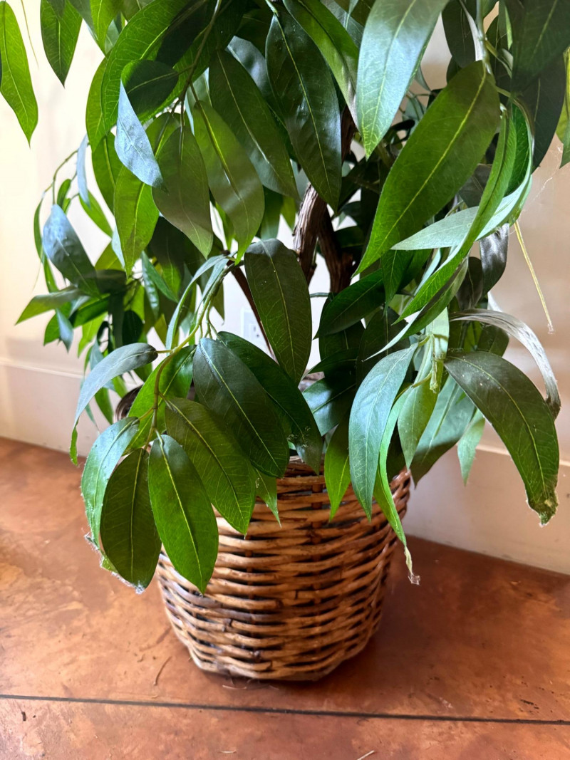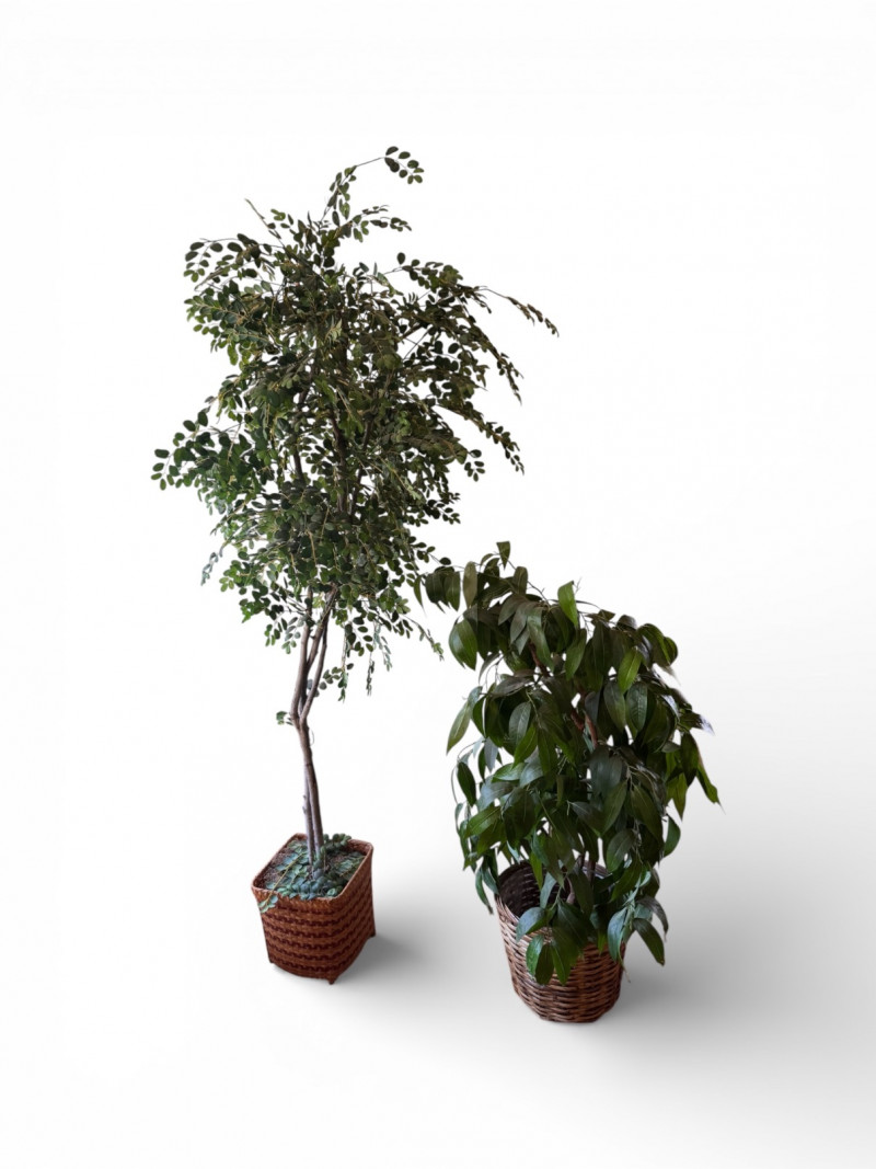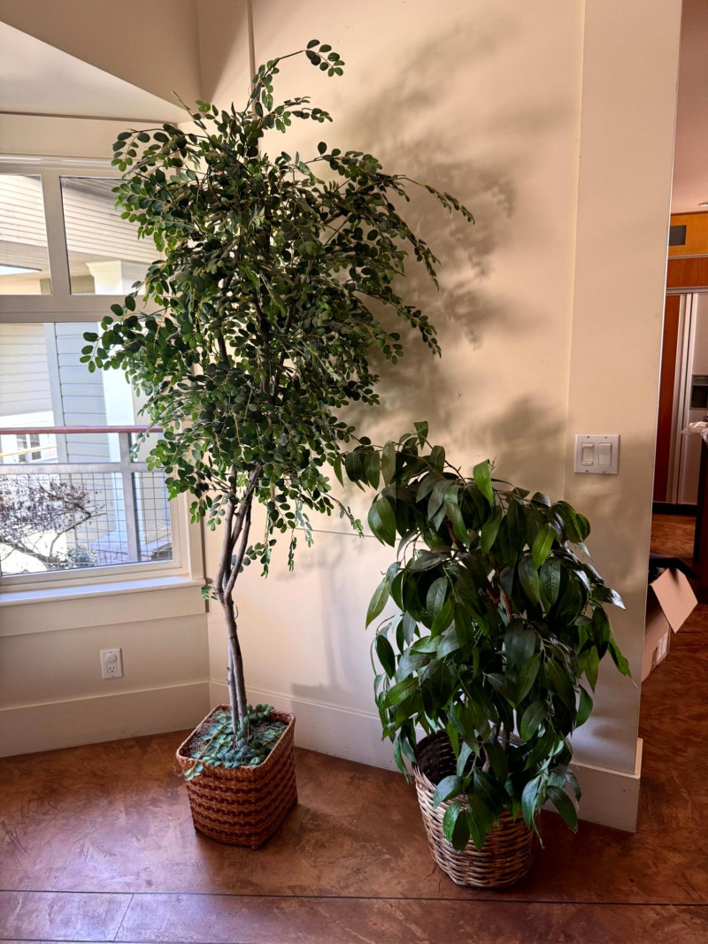 Tall Faux Indoor Trees w/ Wicker Baskets Floor Decor.