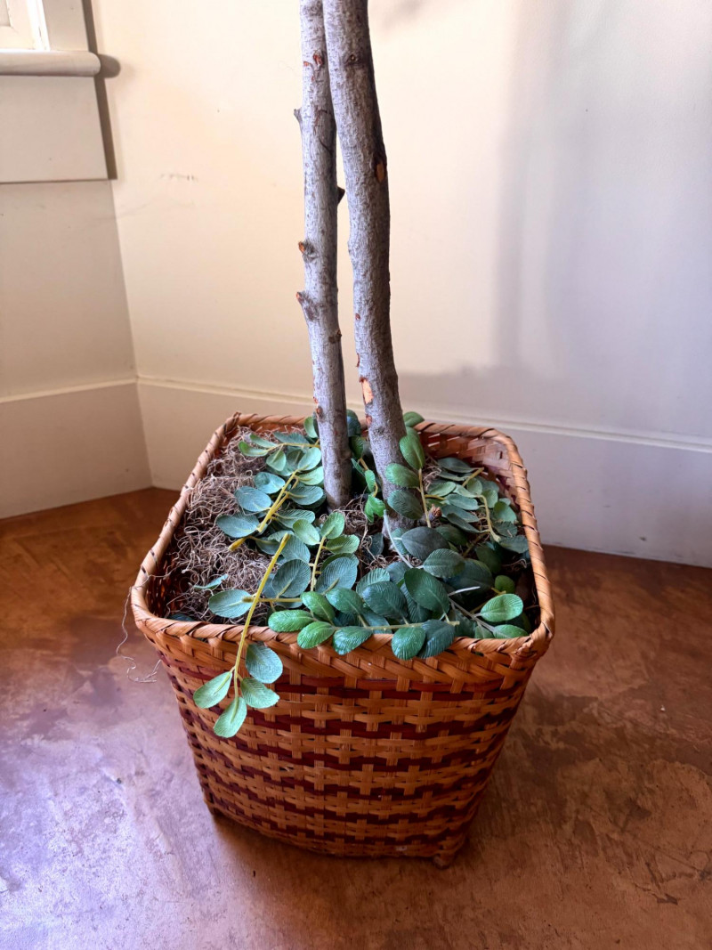 Lot # 62 - Tall Faux Indoor Trees w/ Wicker Baskets Floor Decor