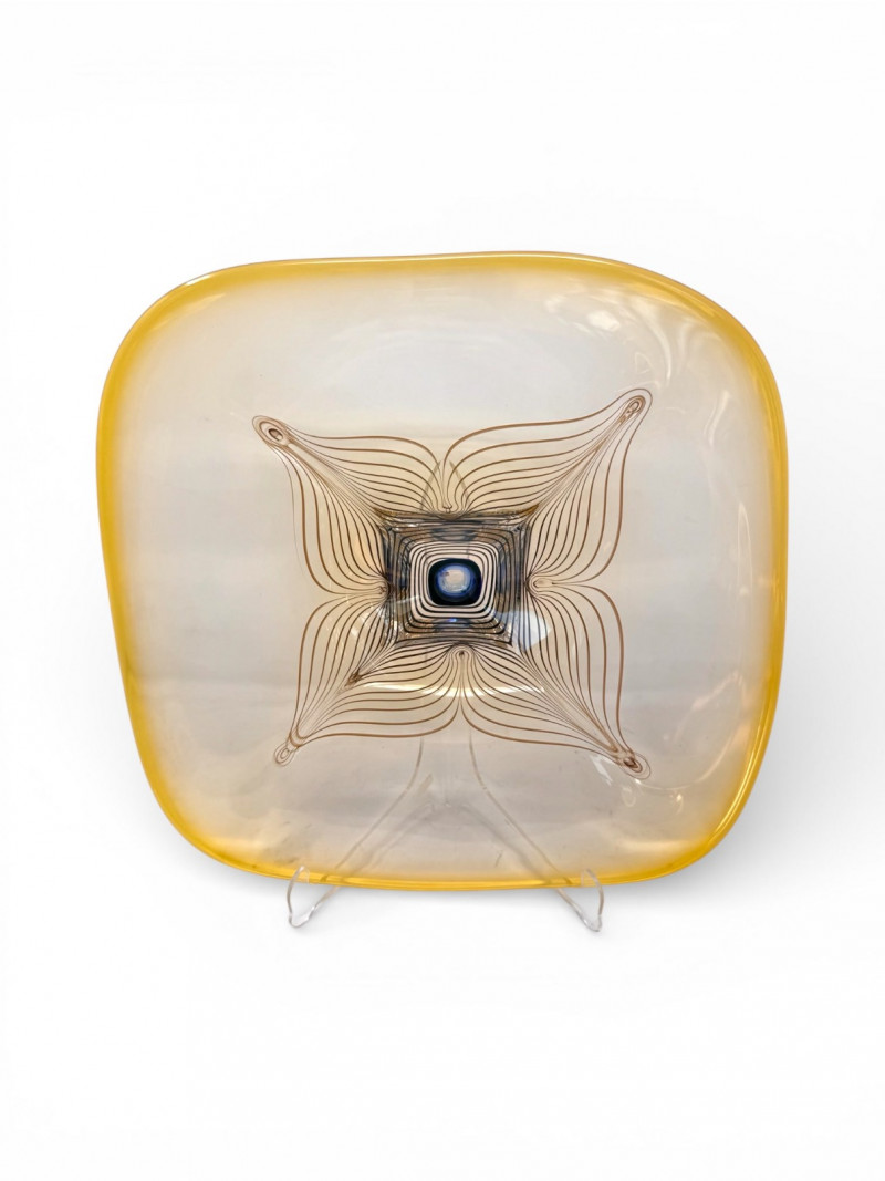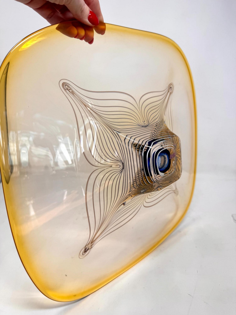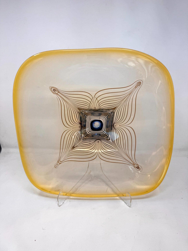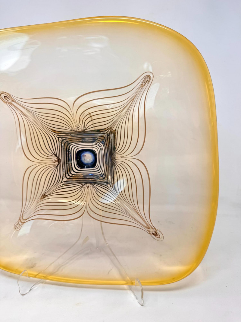 Lot # 64 - Signed A. Jabromski Blown Glass Footed Plate Square w/ Stand