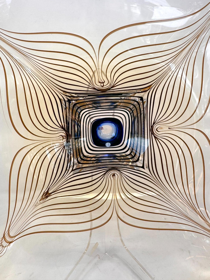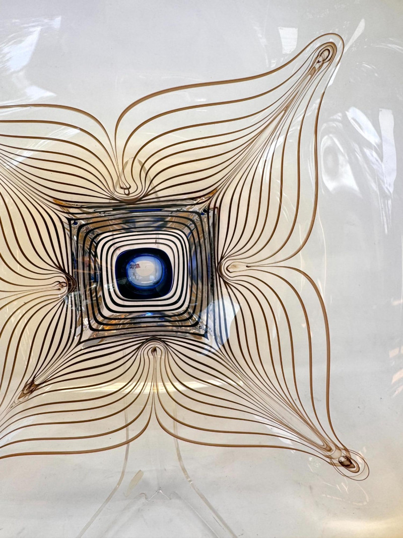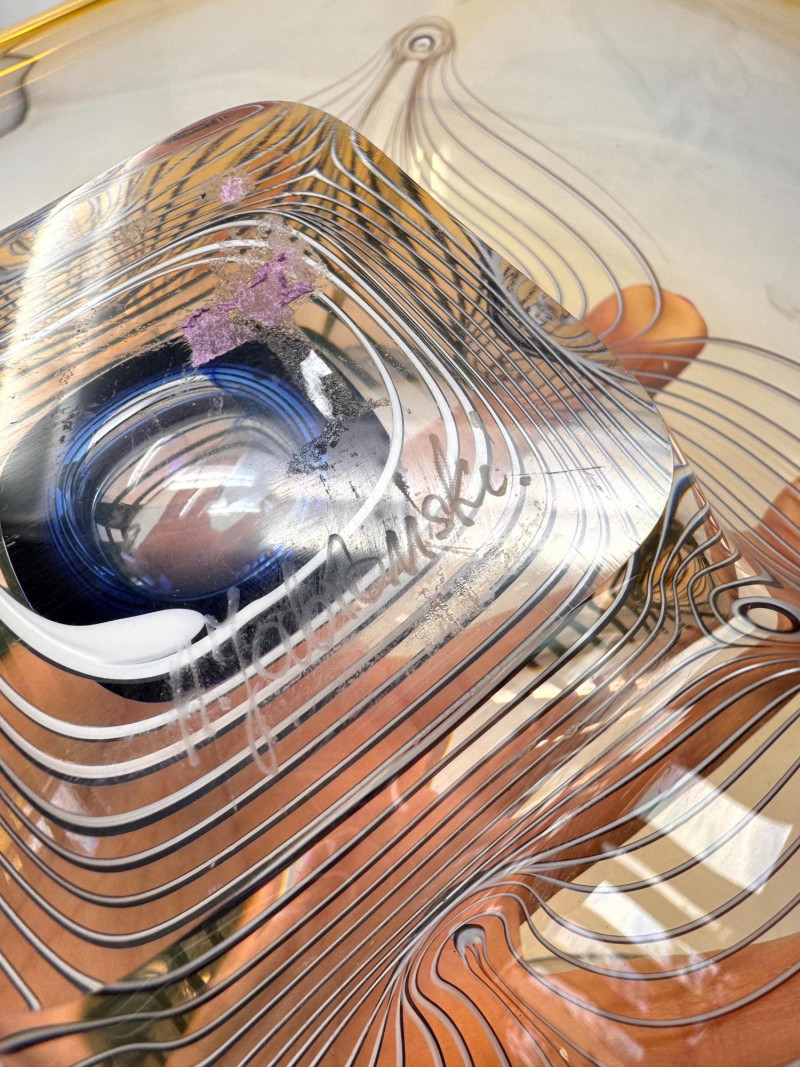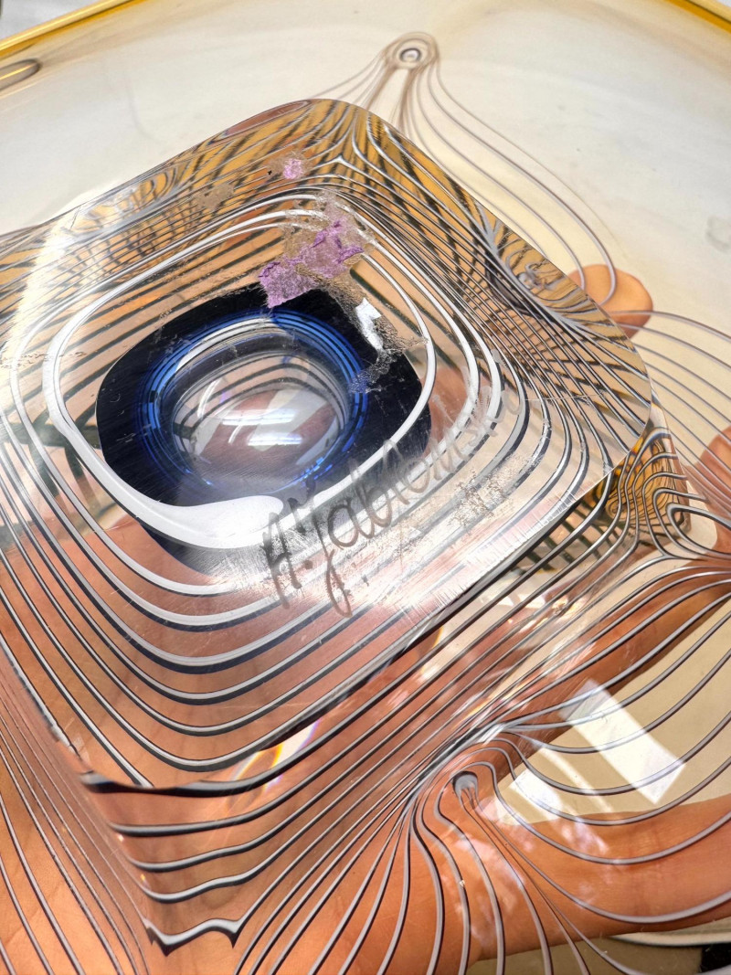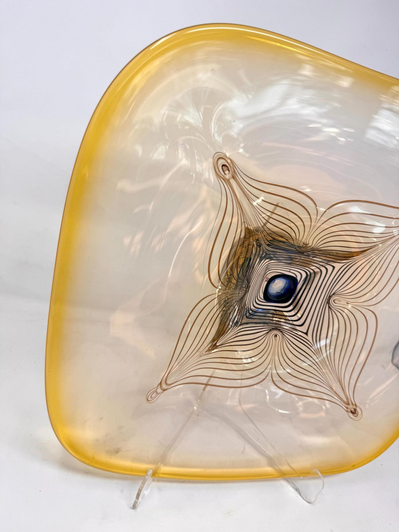 Lot # 64 - Signed A. Jabromski Blown Glass Footed Plate Square w/ Stand