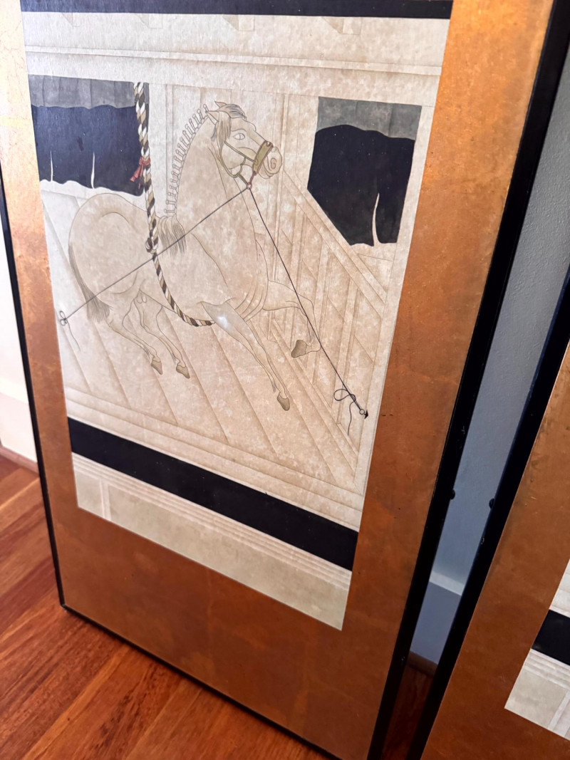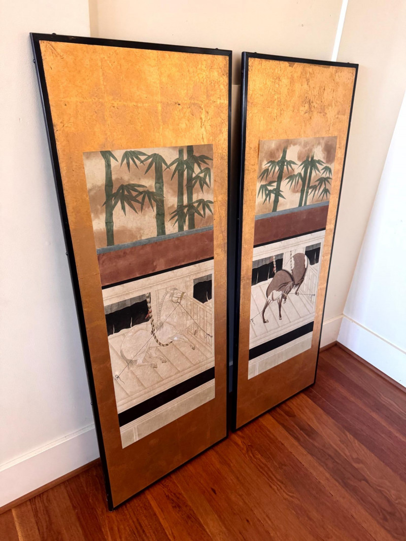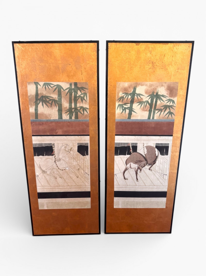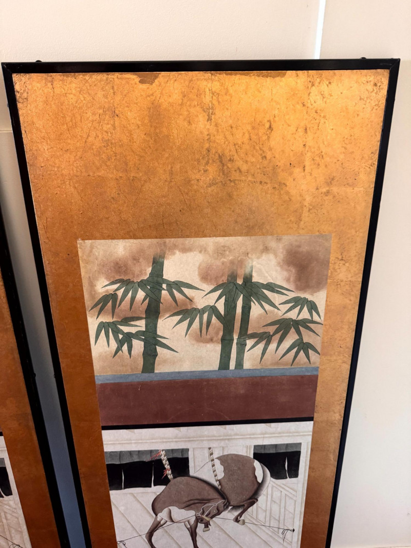 Large Pair of Painted Asian-Style Panels – Horses & Bamboo Motif. Measurements (each panel):