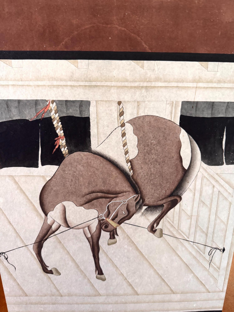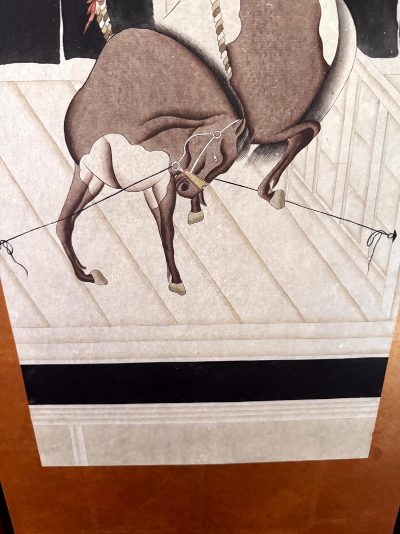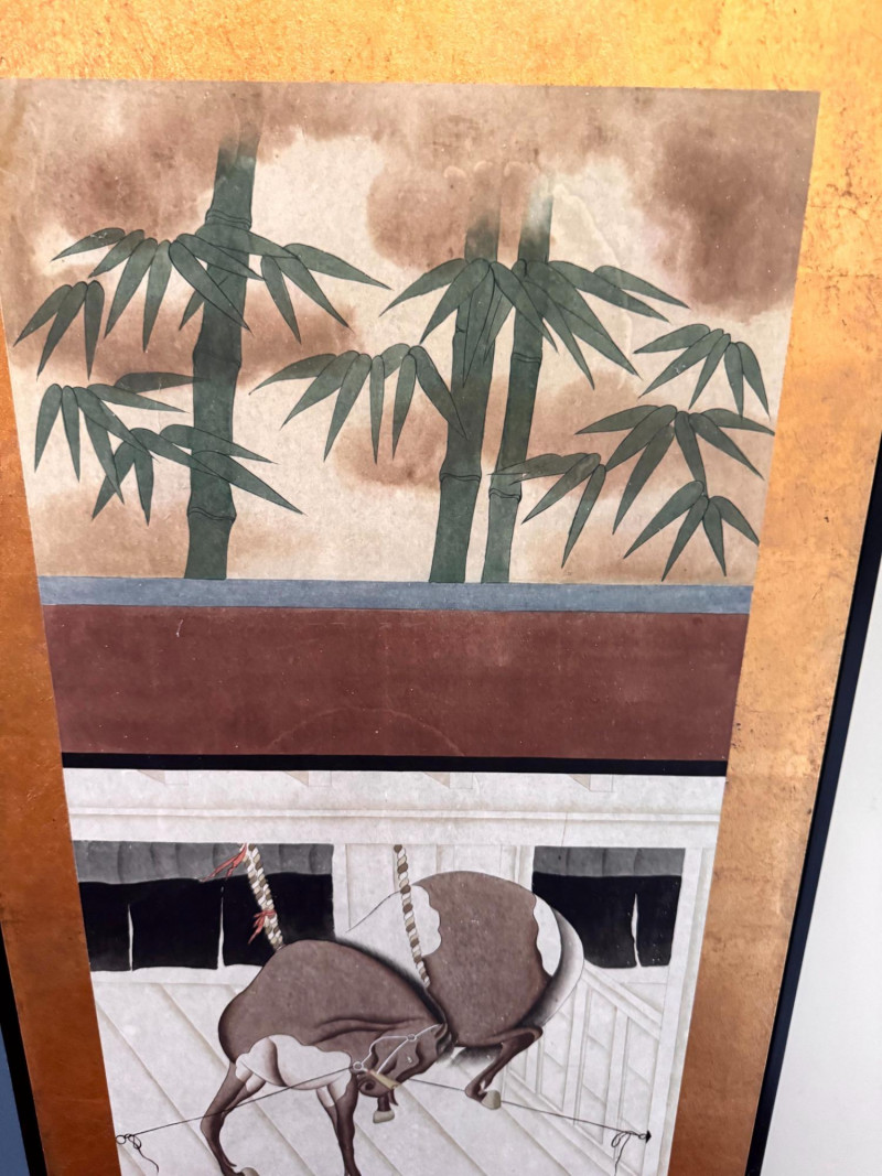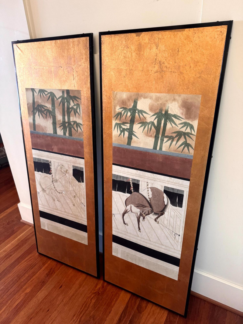 Large Pair of Painted Asian-Style Panels – Horses & Bamboo Motif. Measurements (each panel):