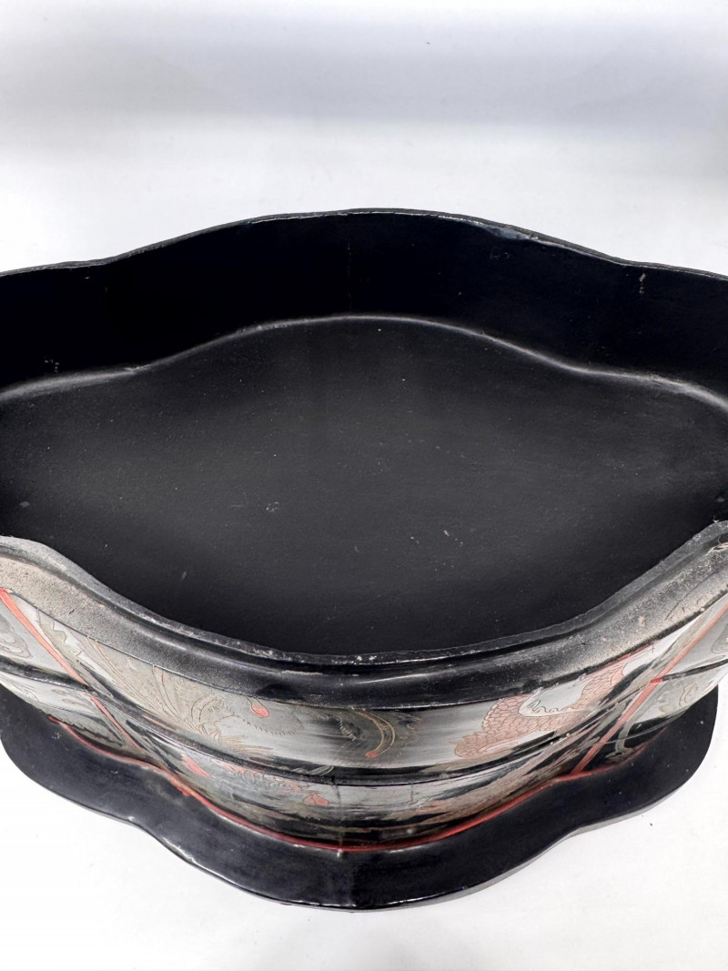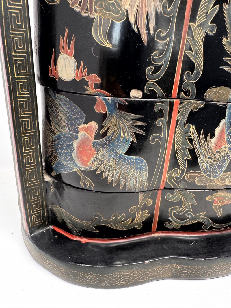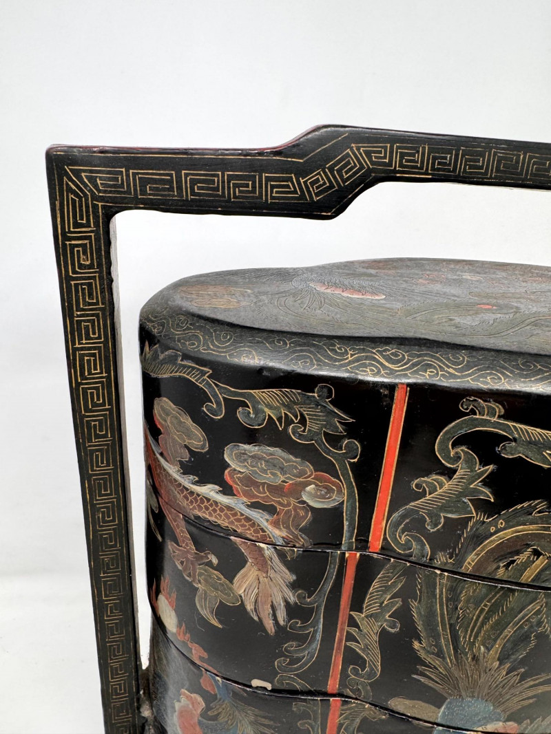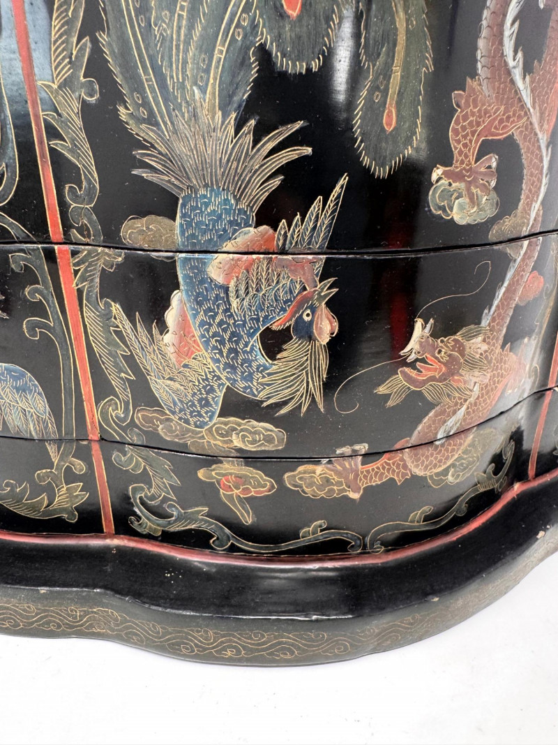 Lot # 71 - Large Vintage Tiered Wedding Basket, Painted Wood Dragon & Phoenix