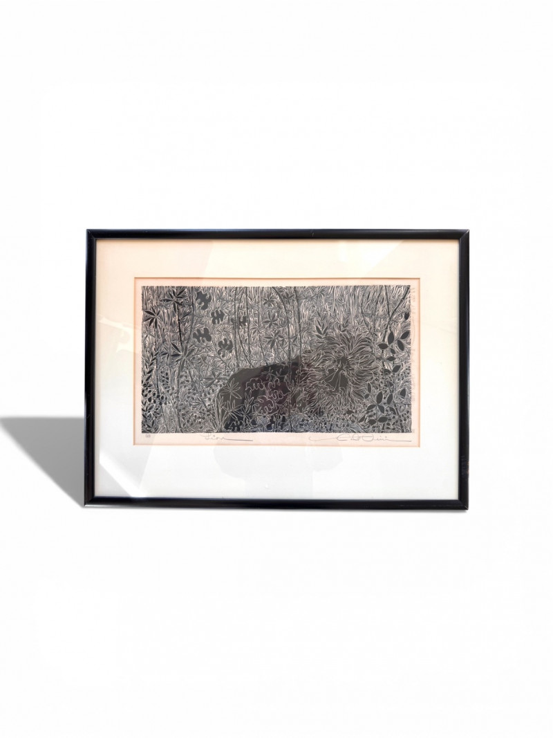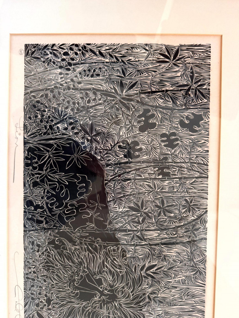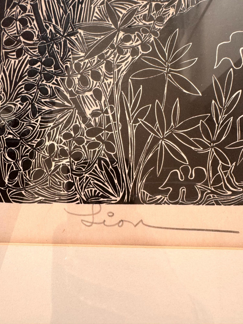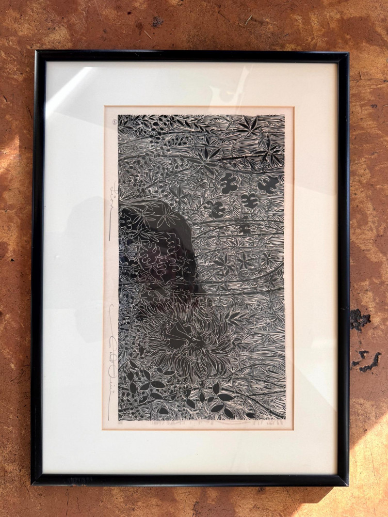 Lot # 77 - Signed Black & White Abstract Botanical Print, Framed