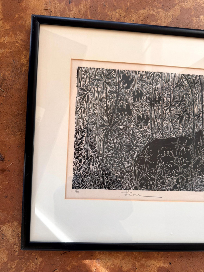 Signed Black & White Abstract Botanical Print, Framed. Size: Approx. 28” x 20.5”
