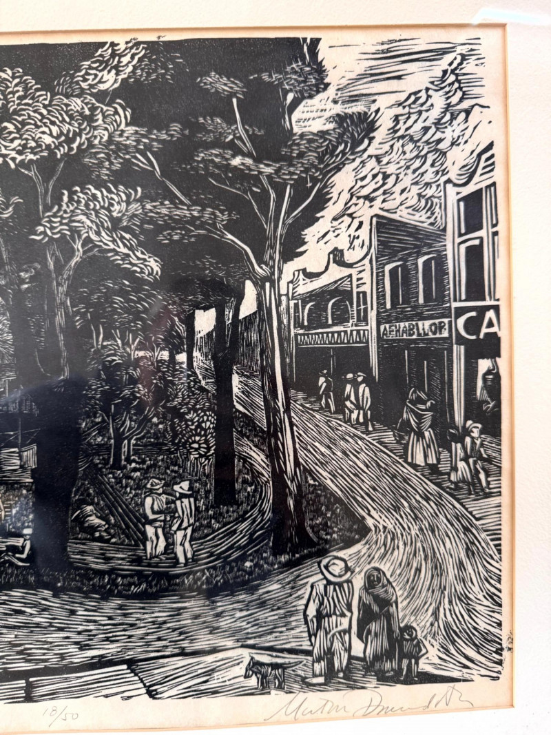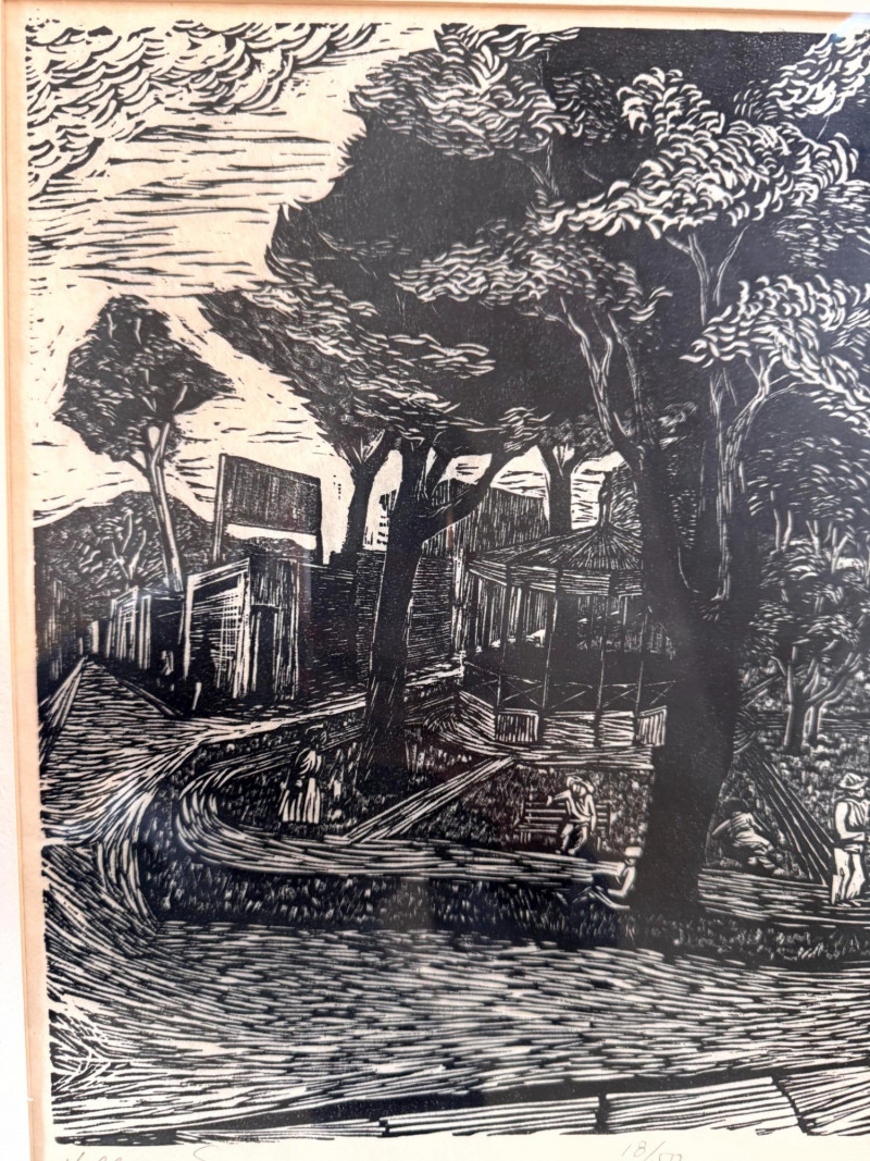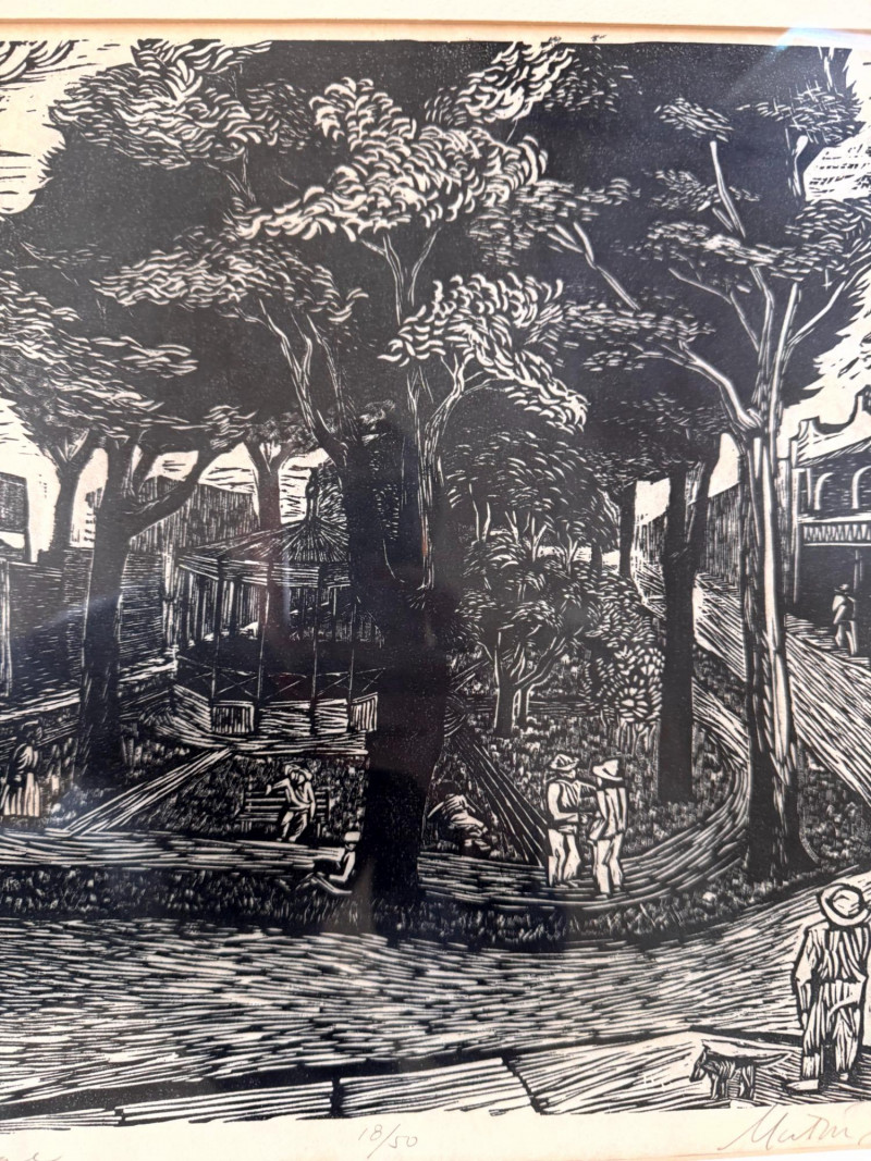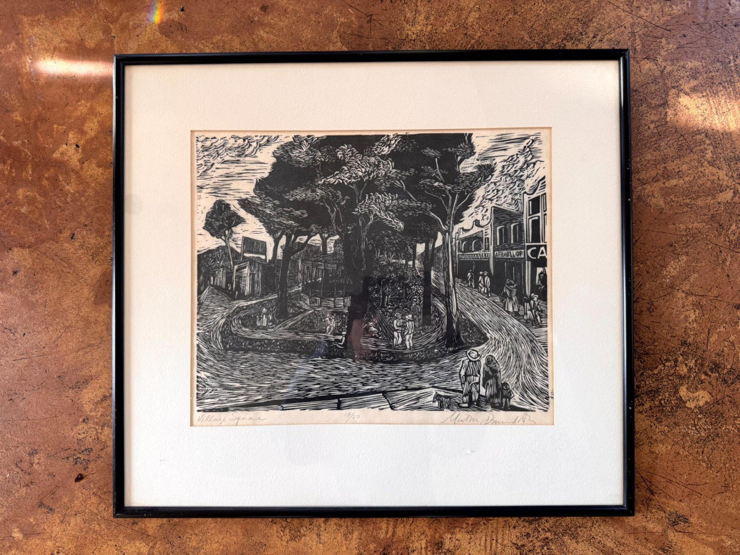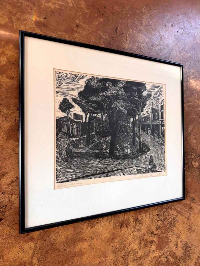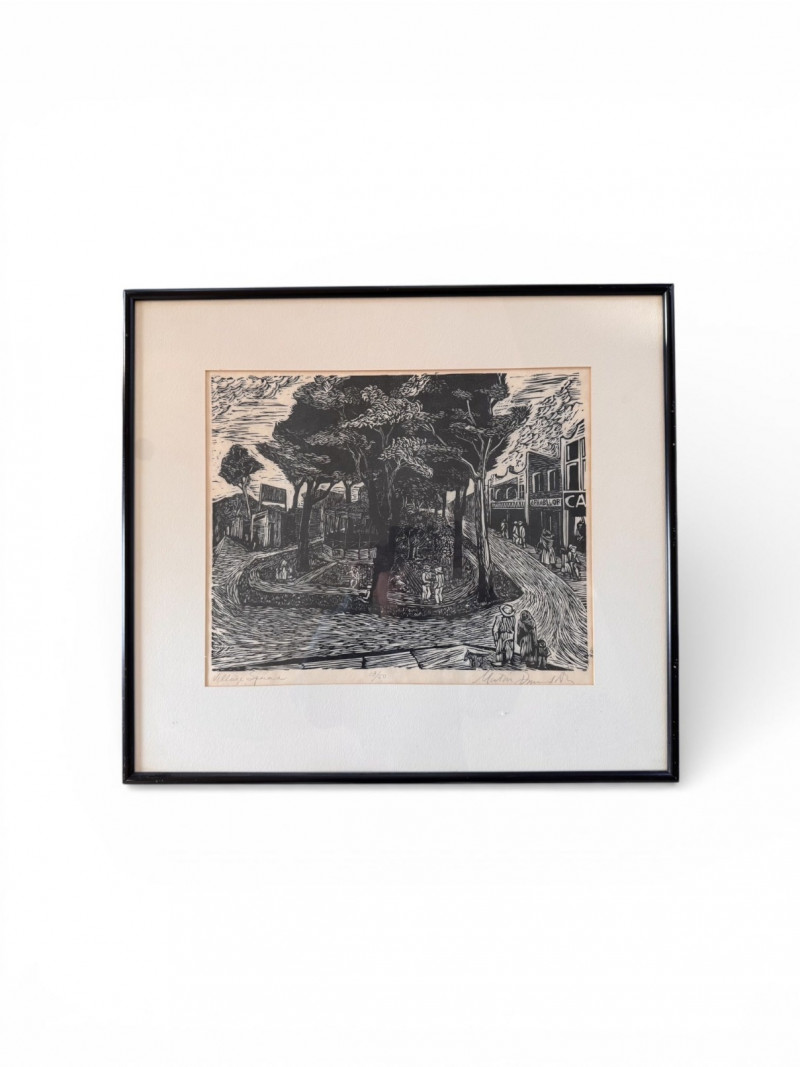 Lot # 80 - Framed Black & White Print Village Square, Signed & Numbered