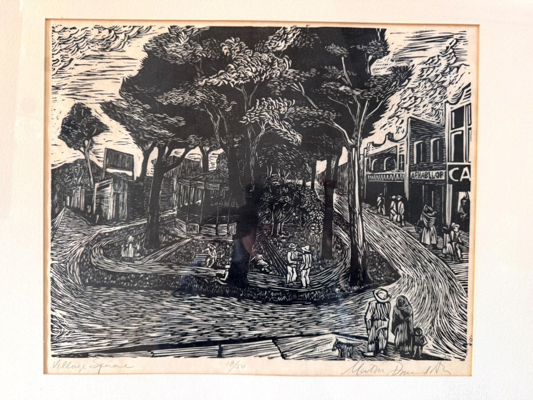 Framed Black & White Print Village Square, Signed & Numbered.