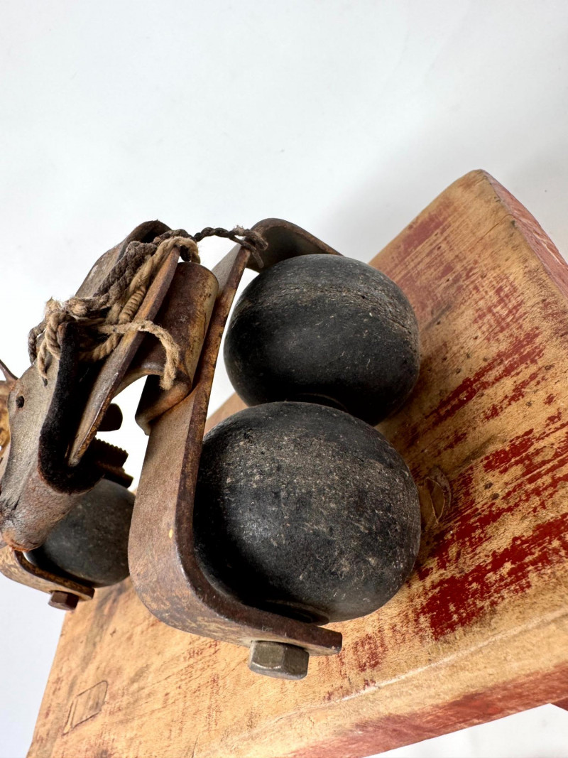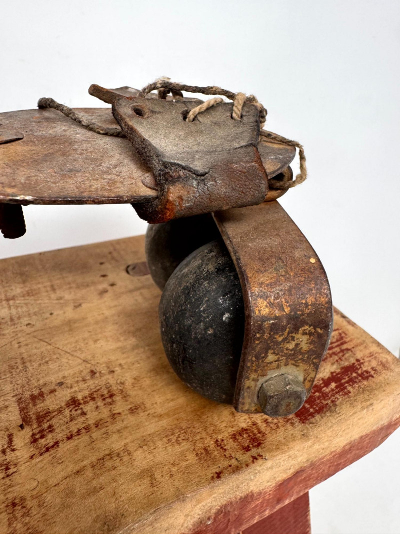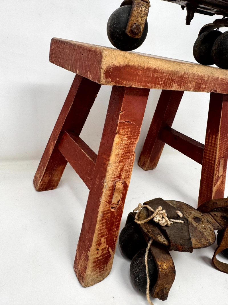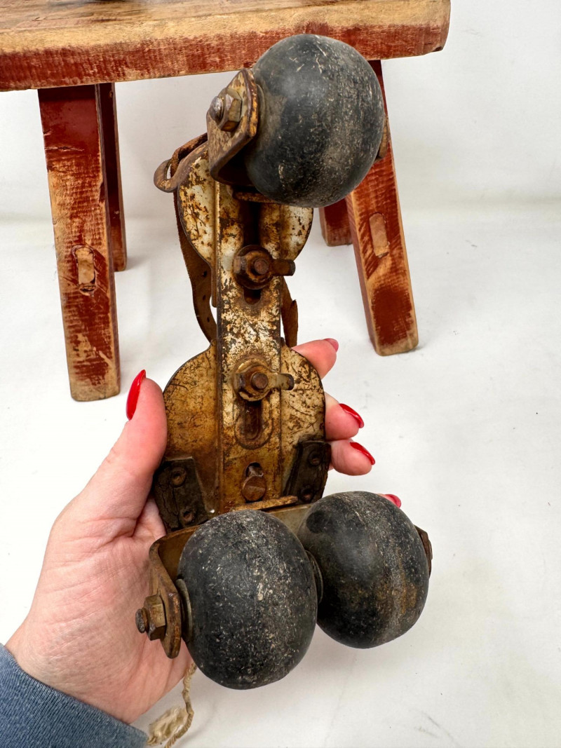 Antique Metal Roller Skates w/ Wooden Children’s Step Stool.