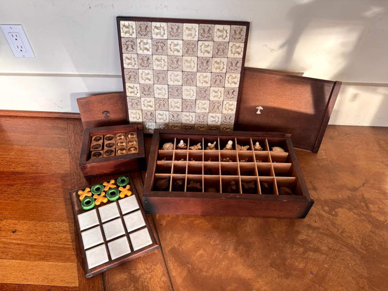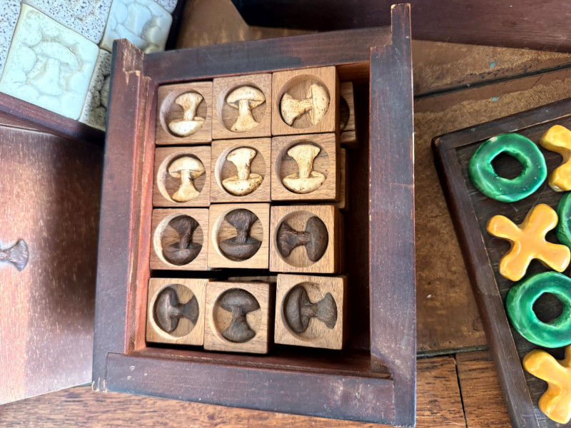 Lot # 89 - 1970’s Handmade Mushroom Themed Chess, Checkers & Tic Tac Toe Set