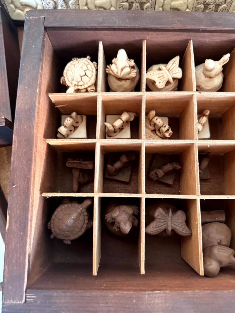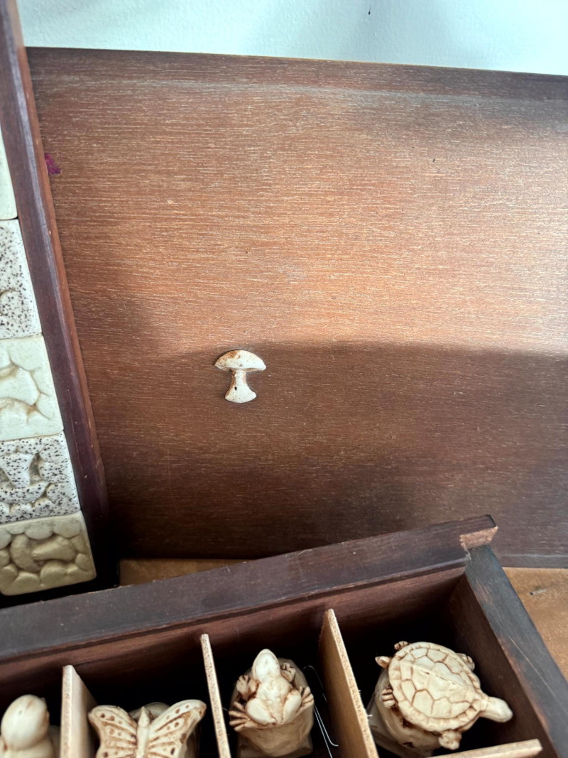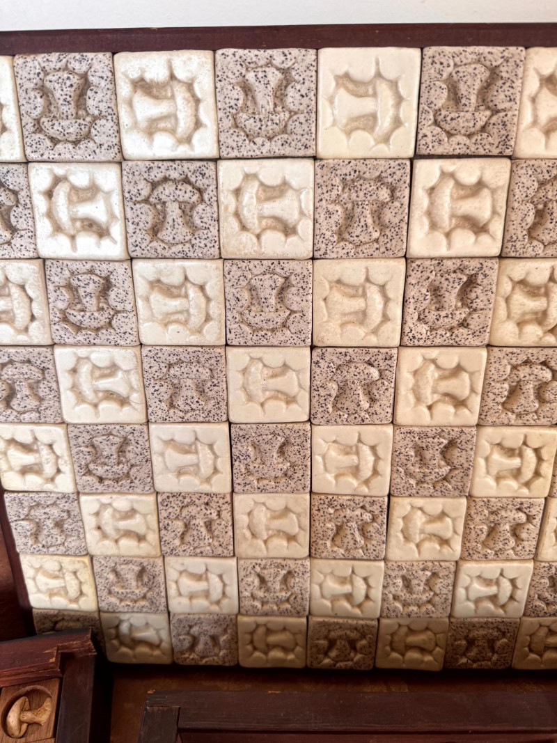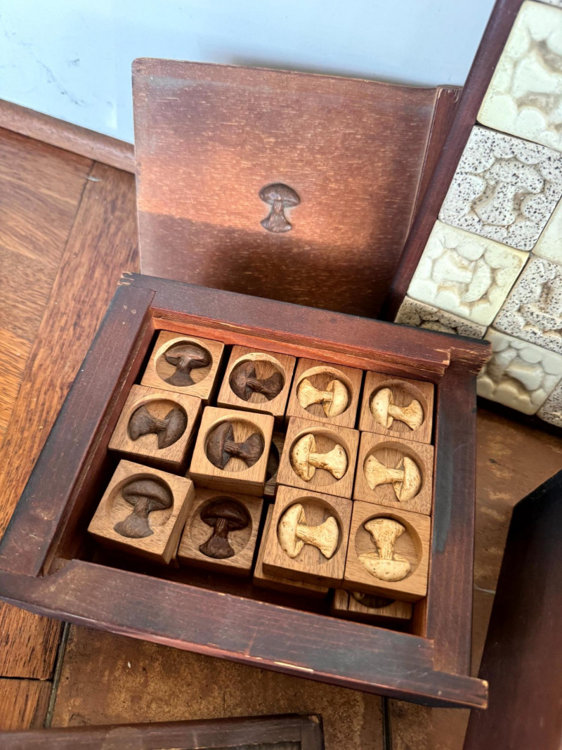 1970’s Handmade Mushroom Themed Chess, Checkers & Tic Tac Toe Set.