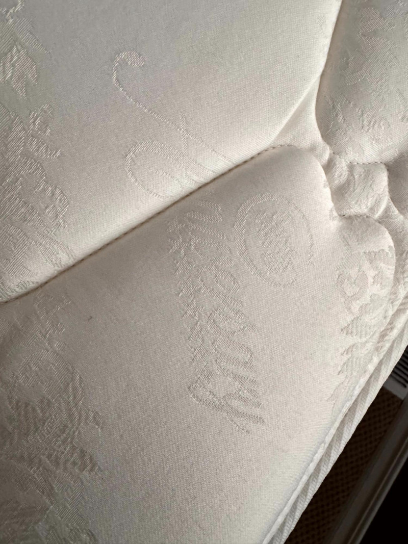 Lot # 9 - Gorgeous Queen Solid Wood Bed Glass Floral Headboard + Veratex Bedding