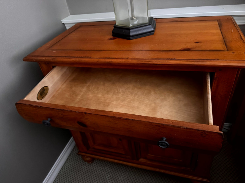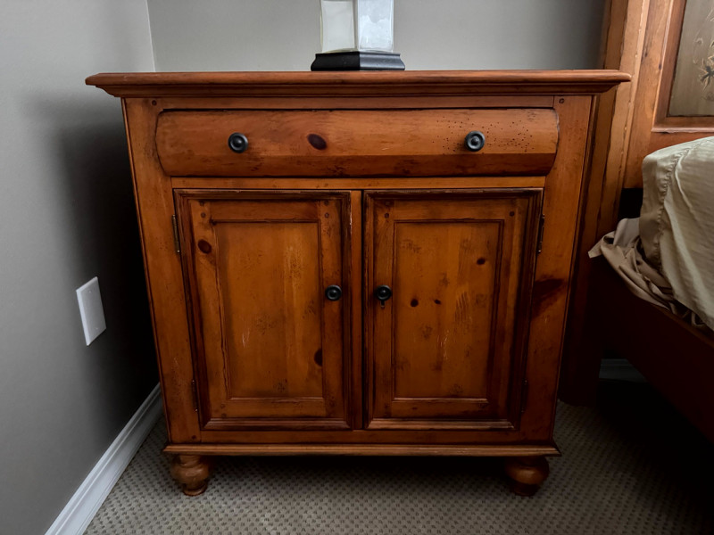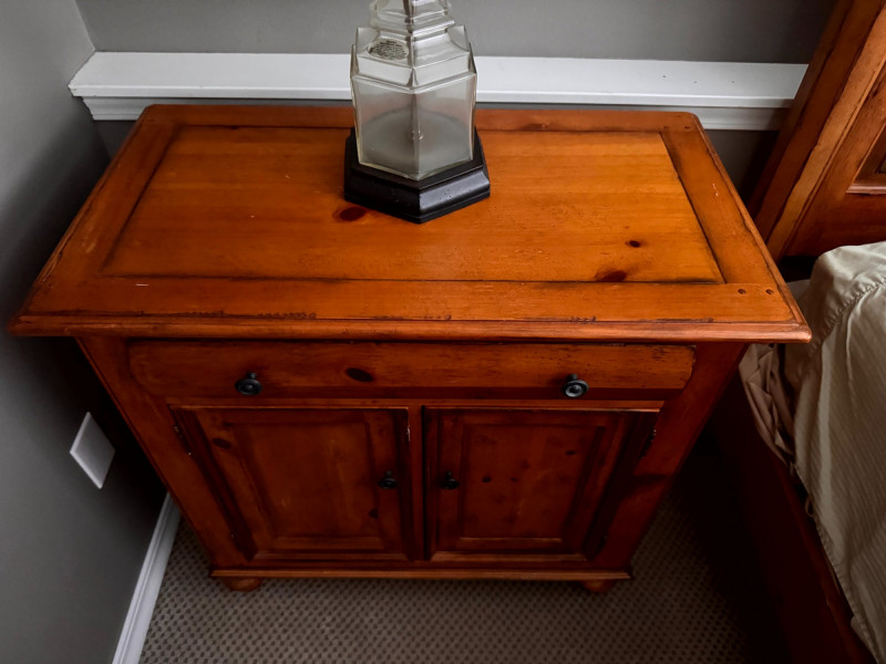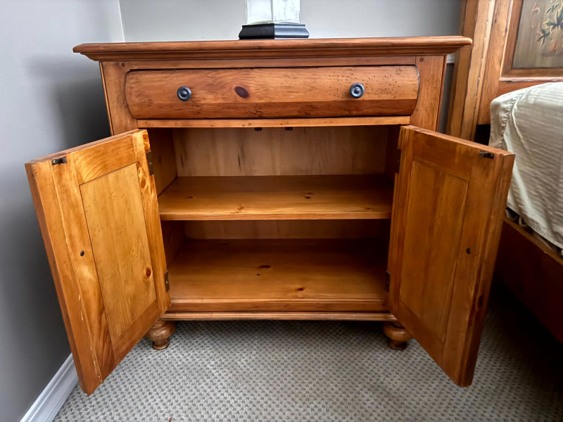 Drexel Heritage Pinehurst Solid Wood Nightstand Cabinet. Maker: Drexel Heritage A good match for the Gorgeous Queen bed shown in Item #9. Dimensions: