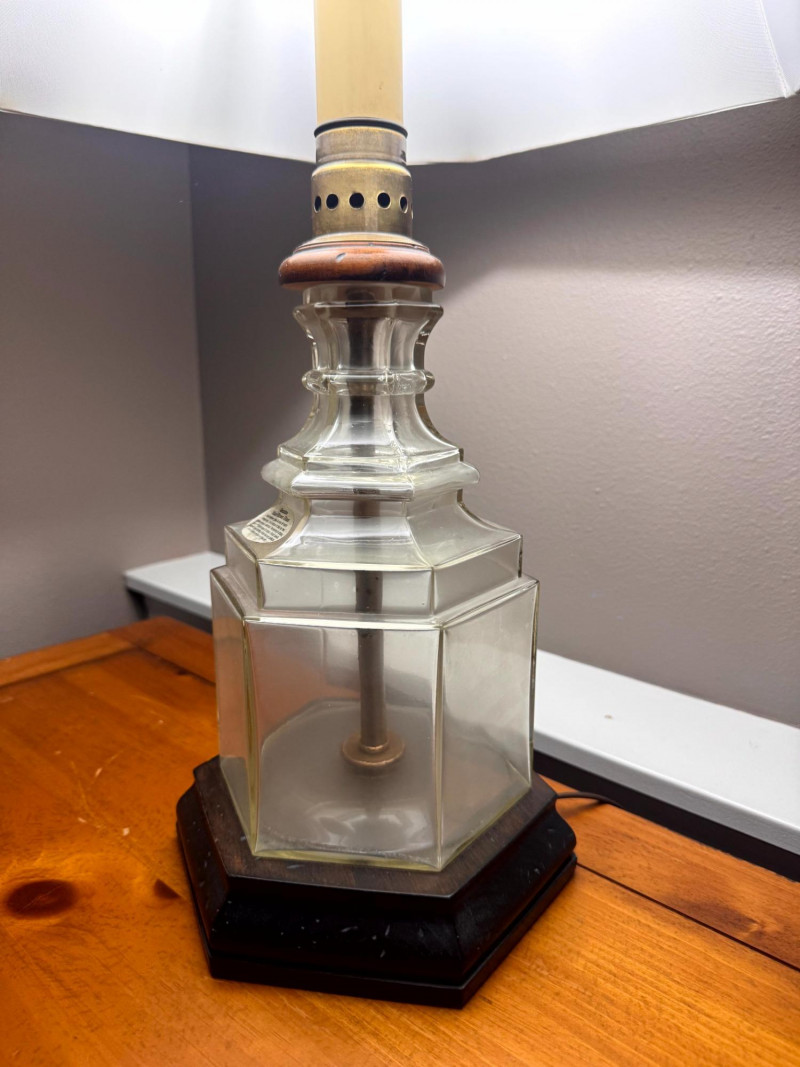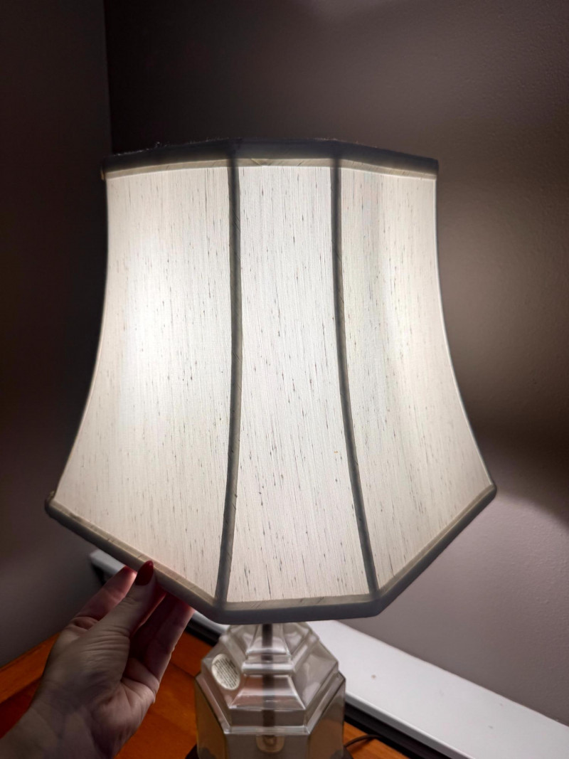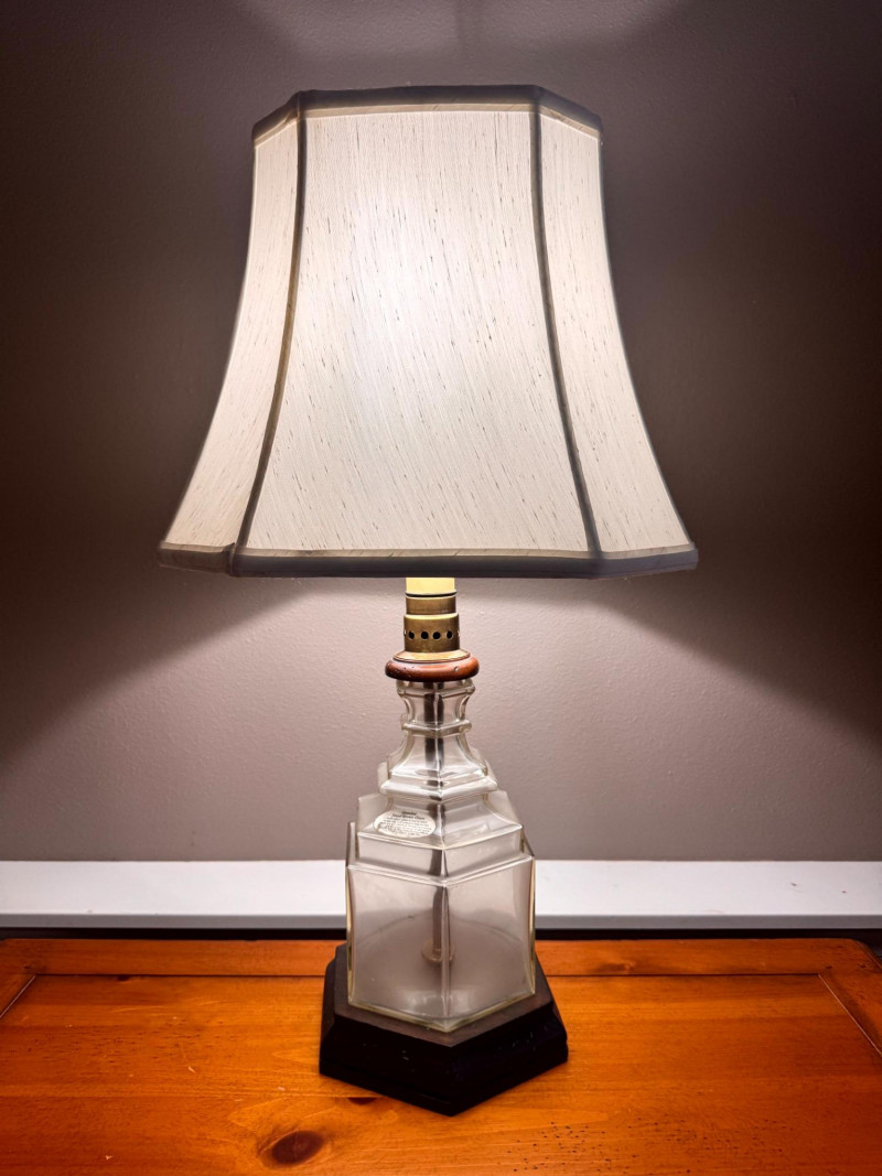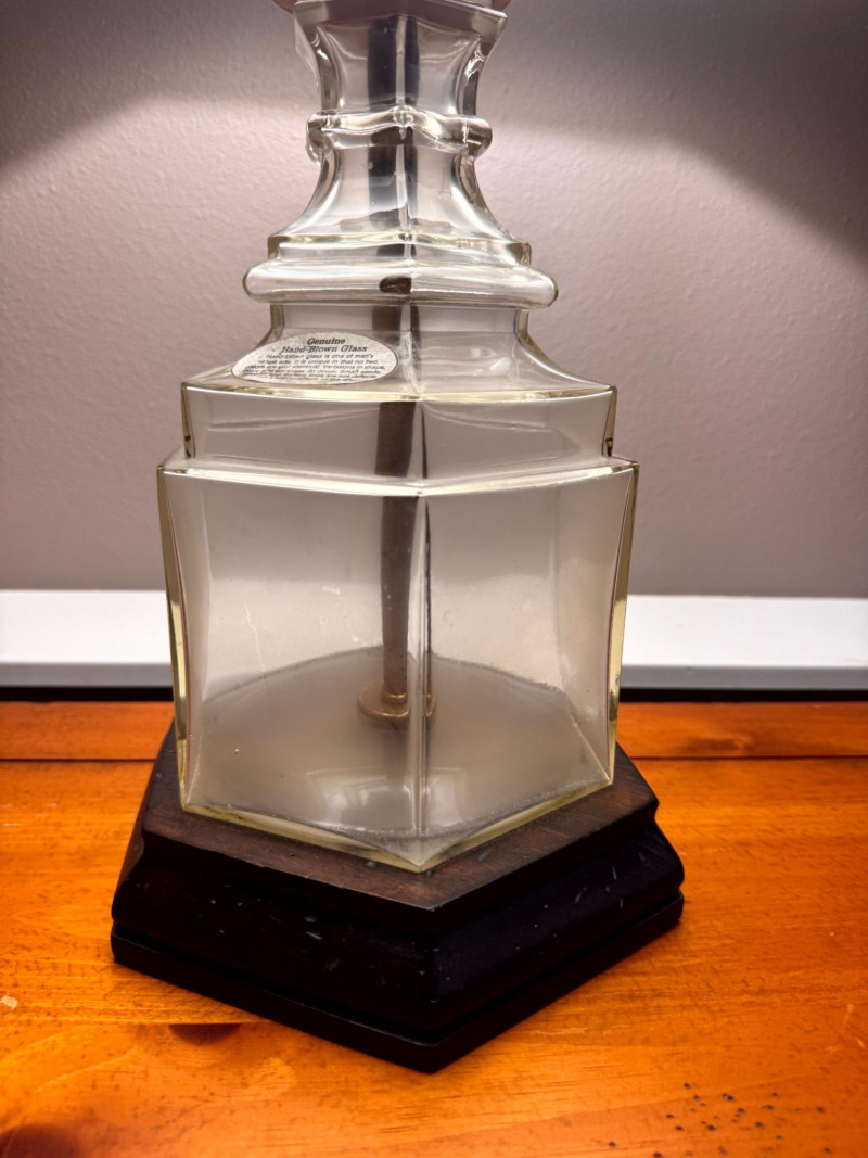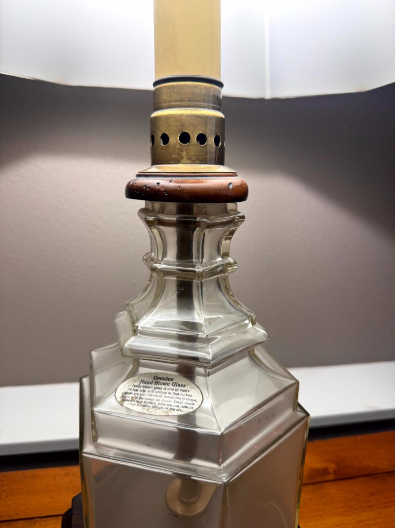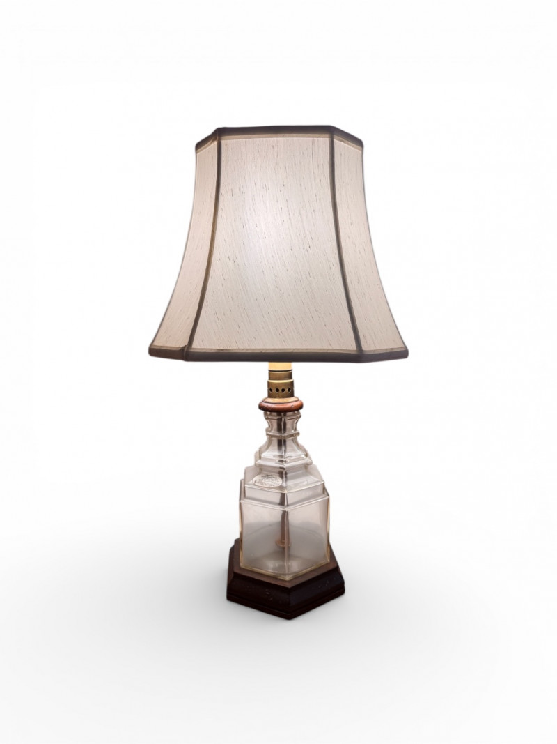Lot # 11 - Hand Blown Clear Hexagon Glass Table Lamp w/ Fabric Shade