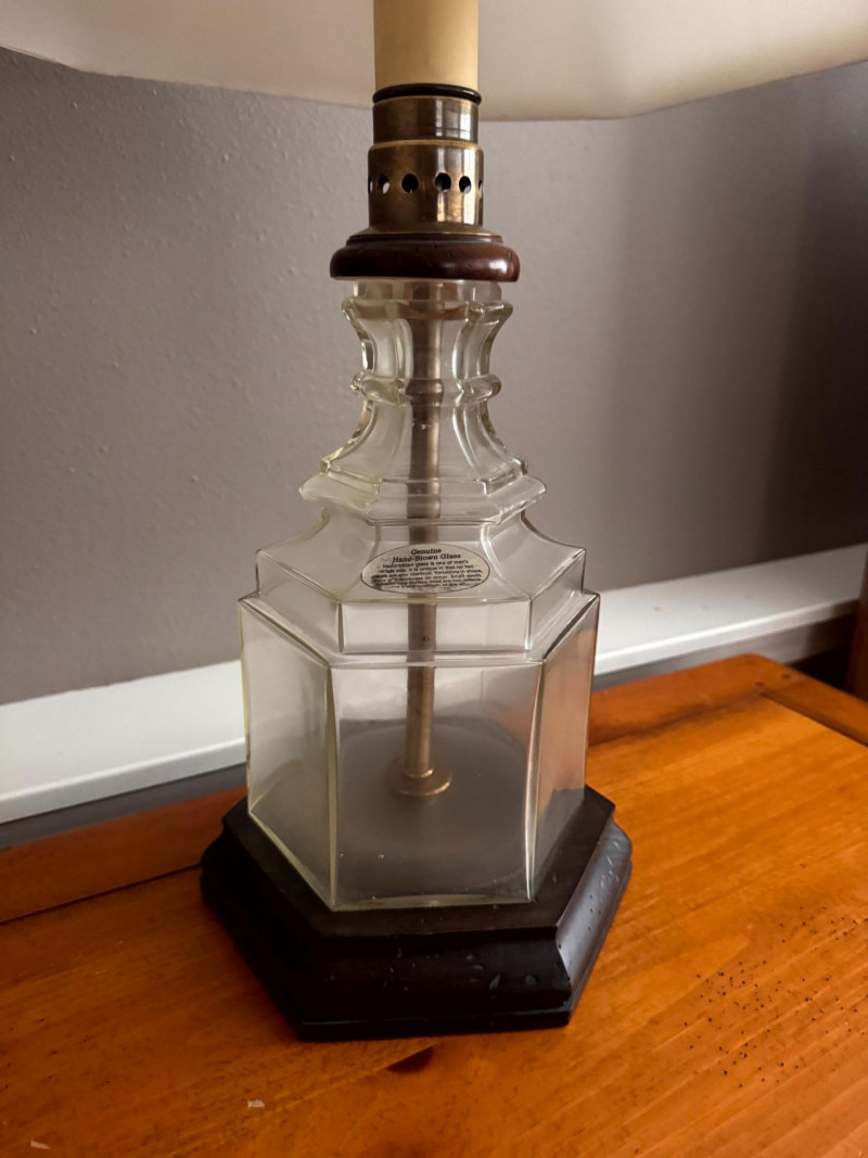 Hand Blown Clear Hexagon Glass Table Lamp w/ Fabric Shade. Dimensions: