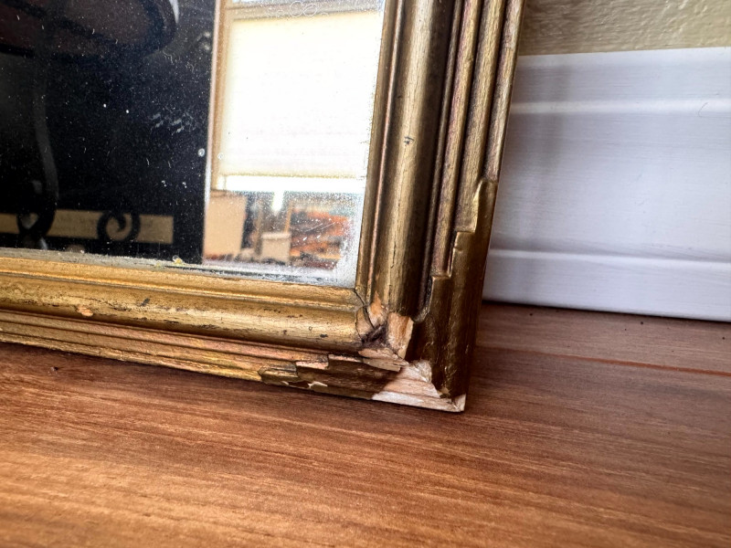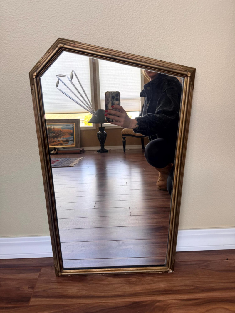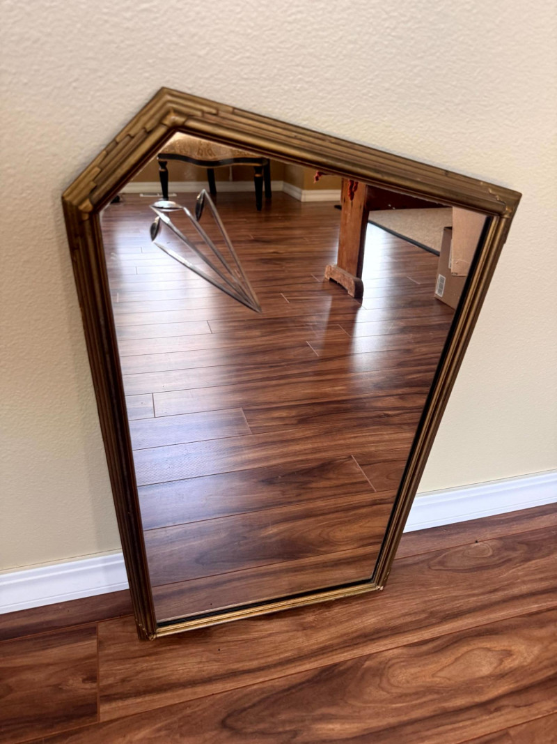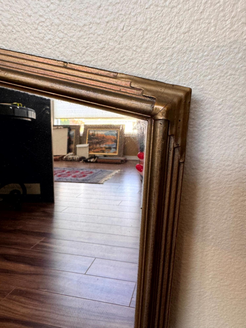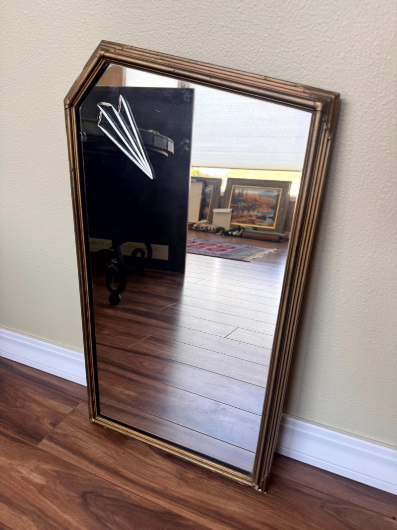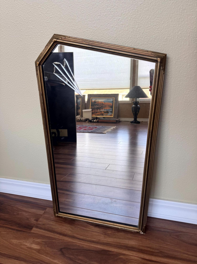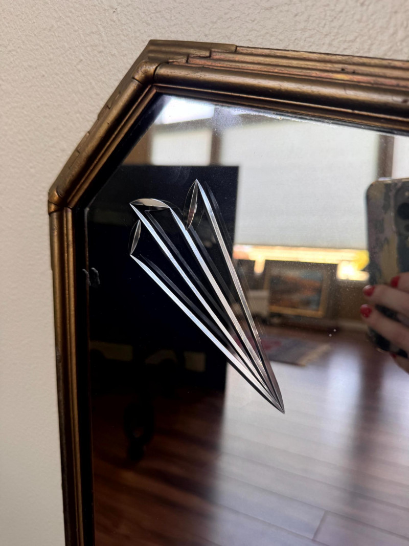Antique Art Deco Gold Frame Etched Glass Accent Mirror. Dimensions: Condition: