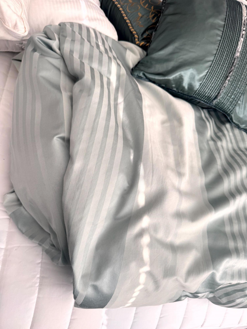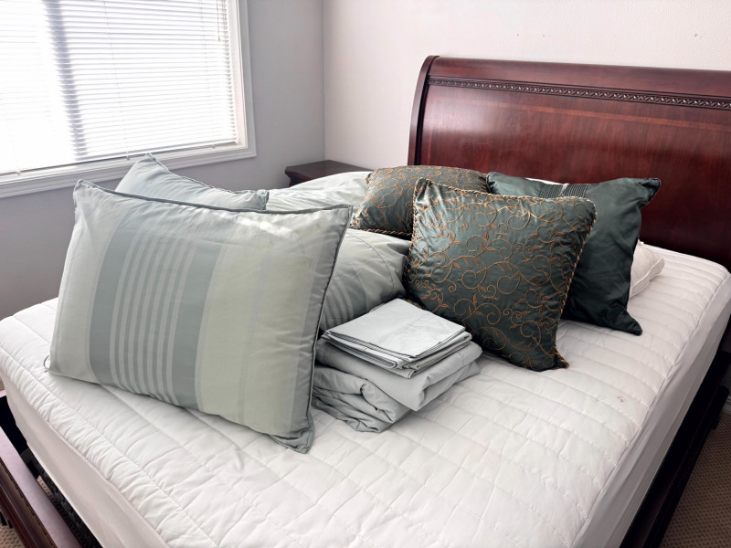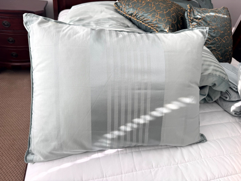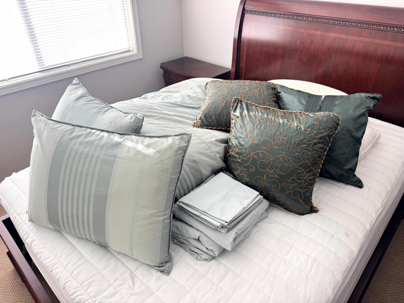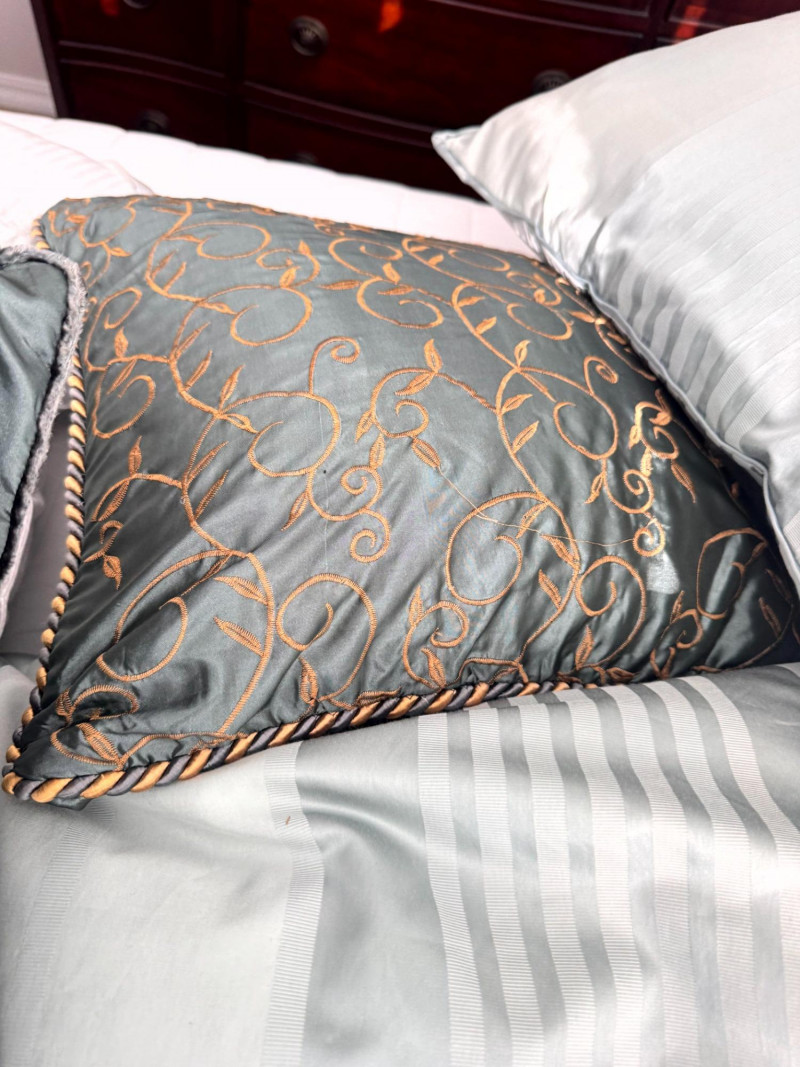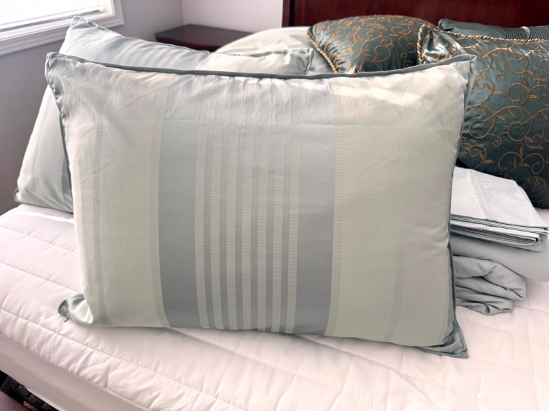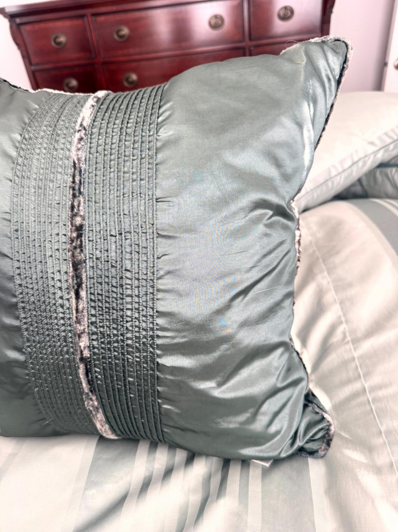 Lot # 16 - Luxury Queen Bedding, Seafoam & Teal Milli Home Pillows, Comforter +