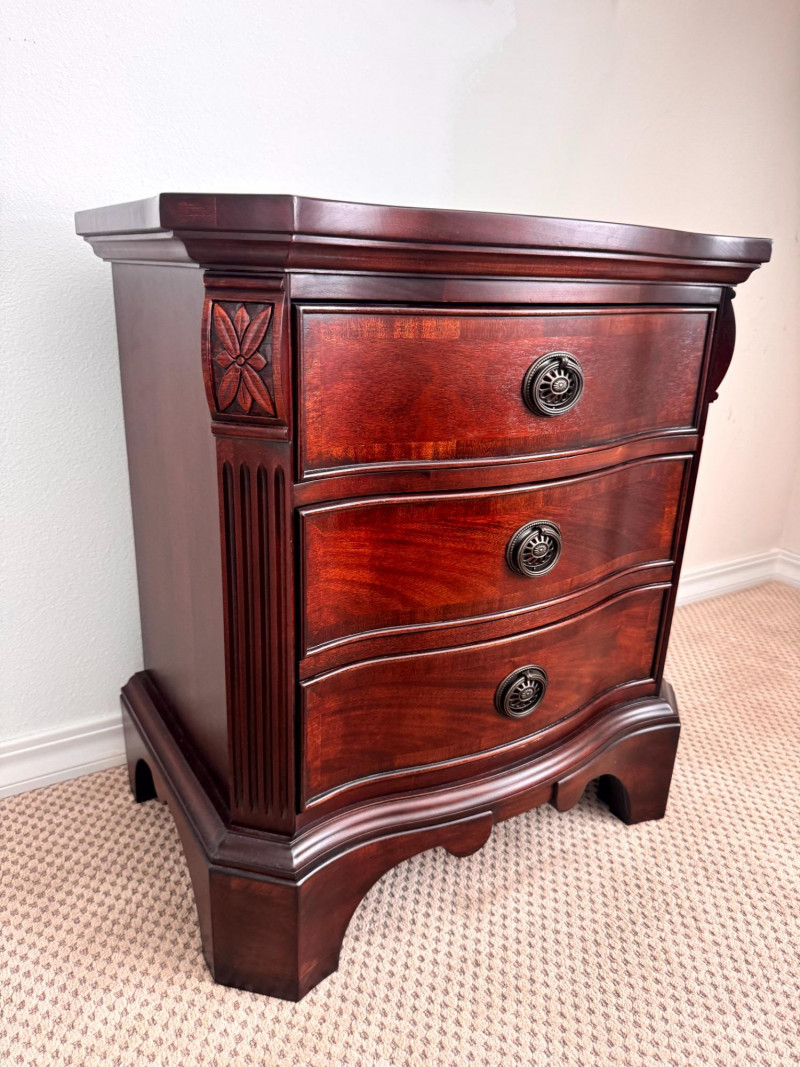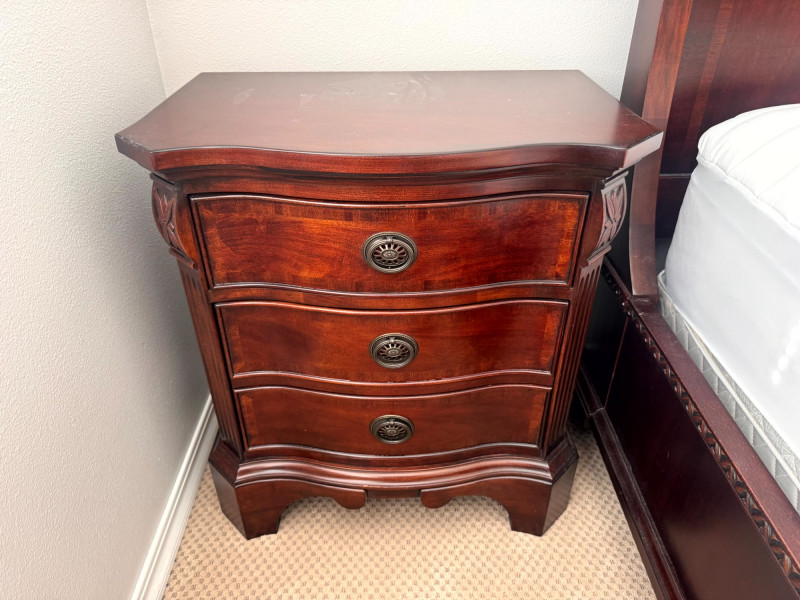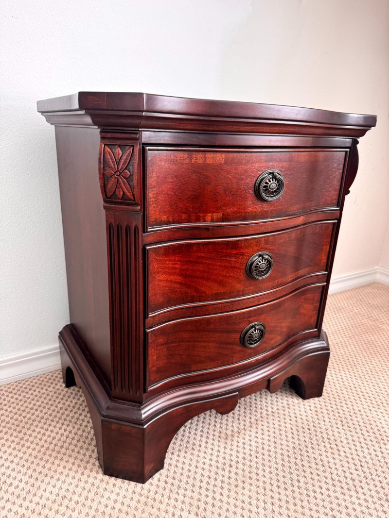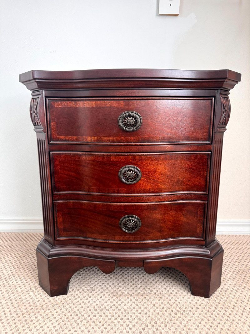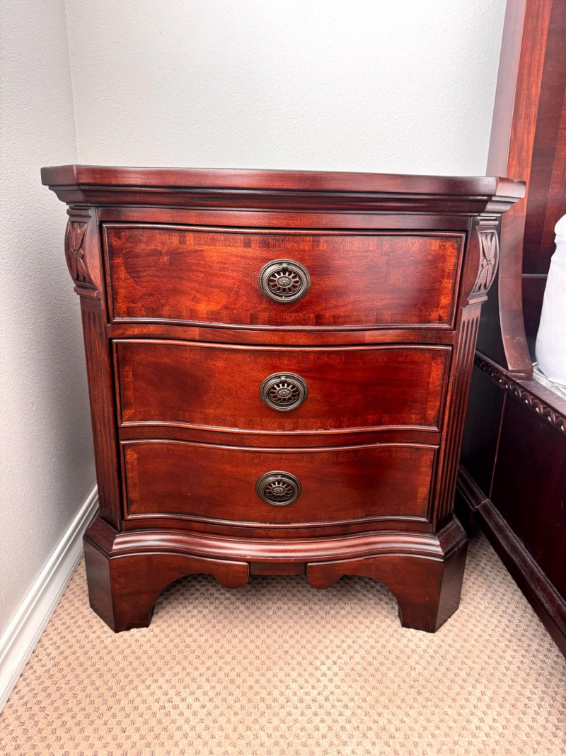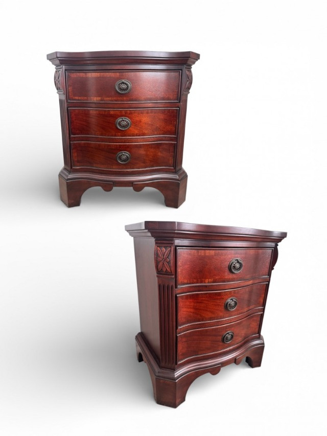 Lot # 18 - Pair Solid Wood Nightstands 3 Drawer Curved Front Fine Quality