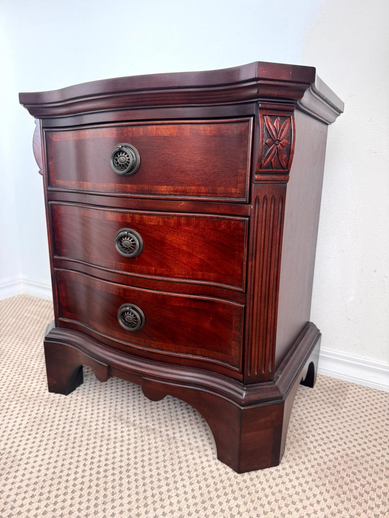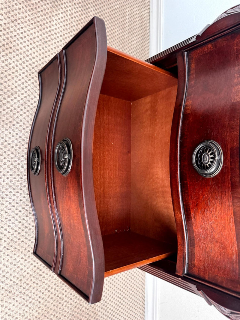 Pair Solid Wood Nightstands 3 Drawer Curved Front Fine Quality. Dimensions (each):