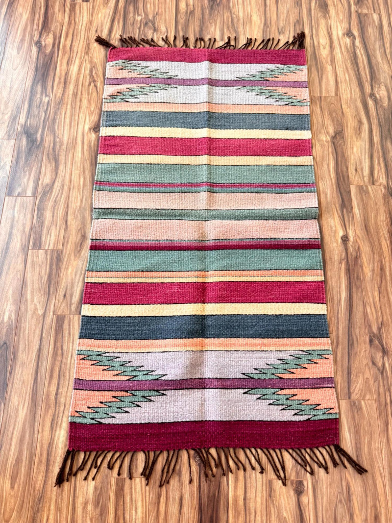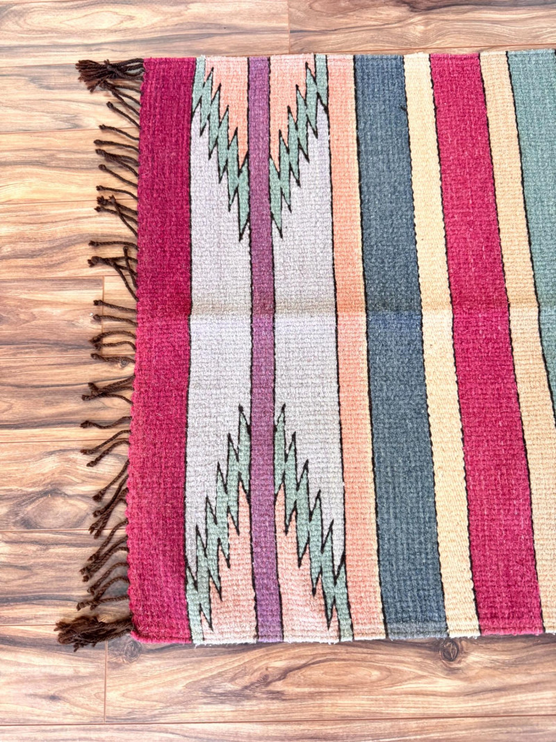 Handwoven Southwest Wool Rug Purple Pink Sage Geometric