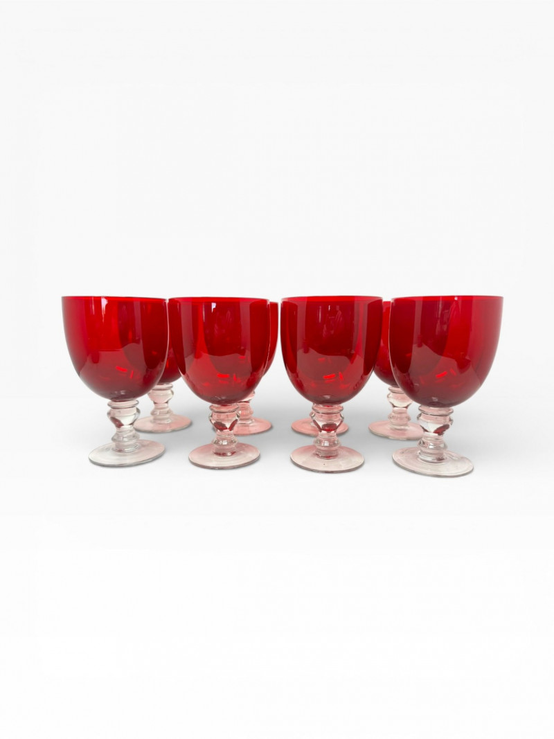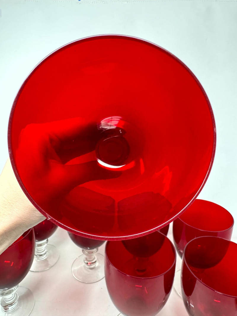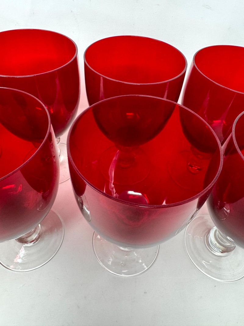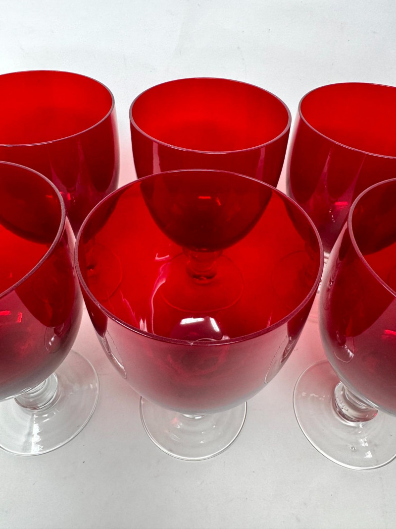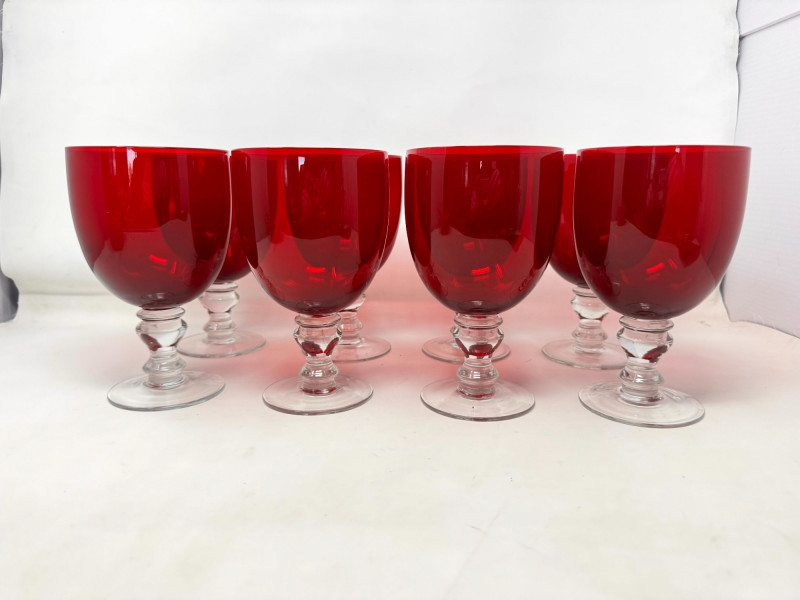 Lot # 28 - 8 Oversized Ruby Red Blown Glass Goblets Clear Stems