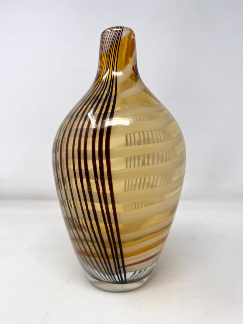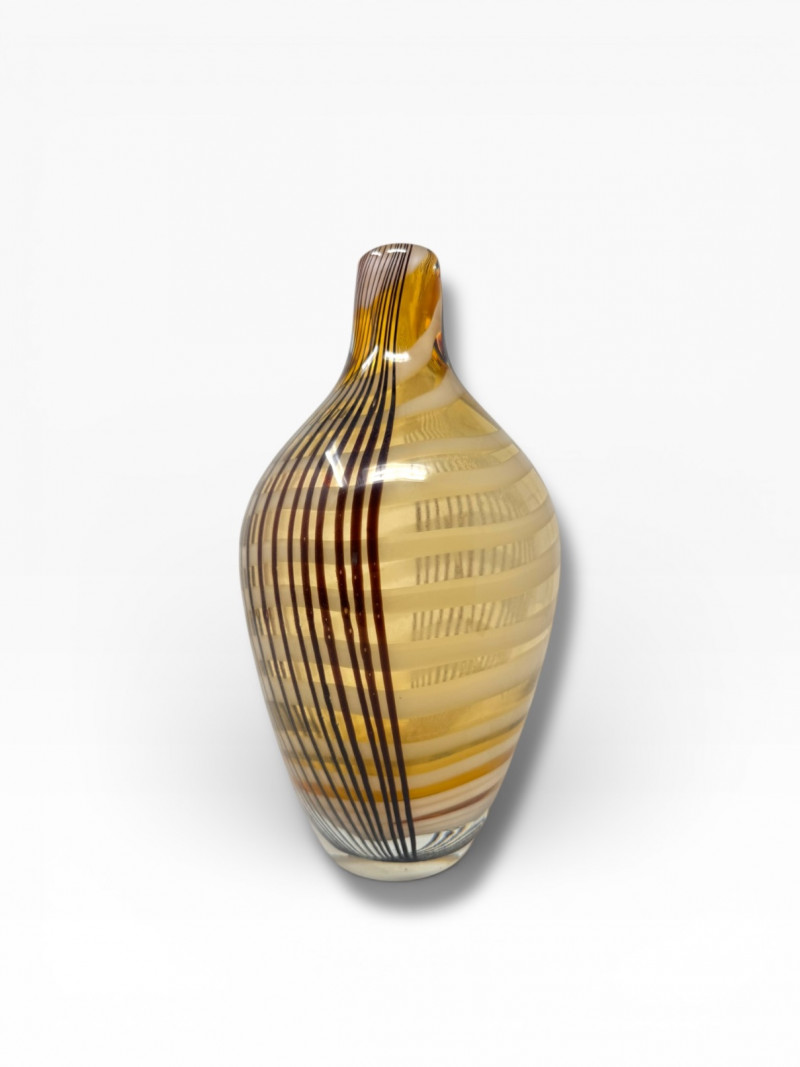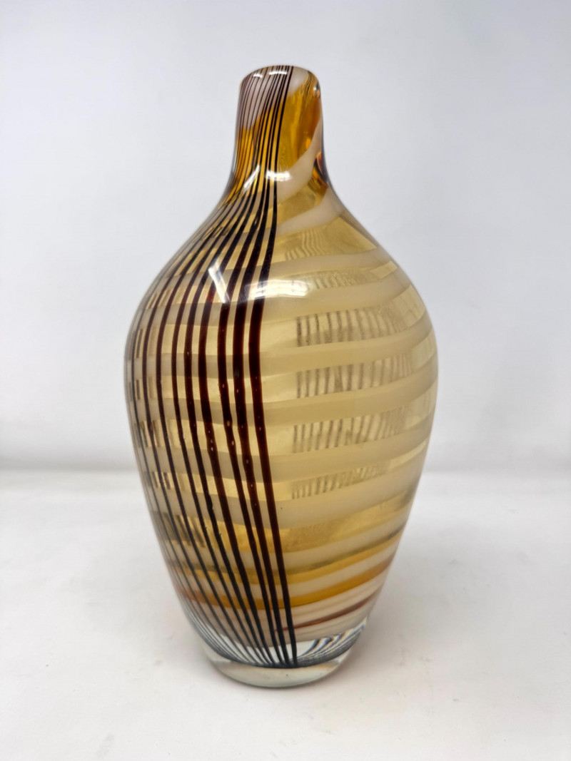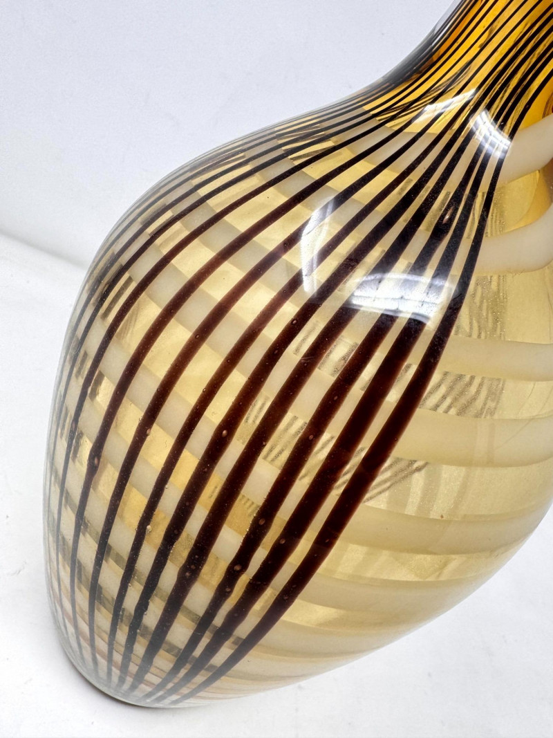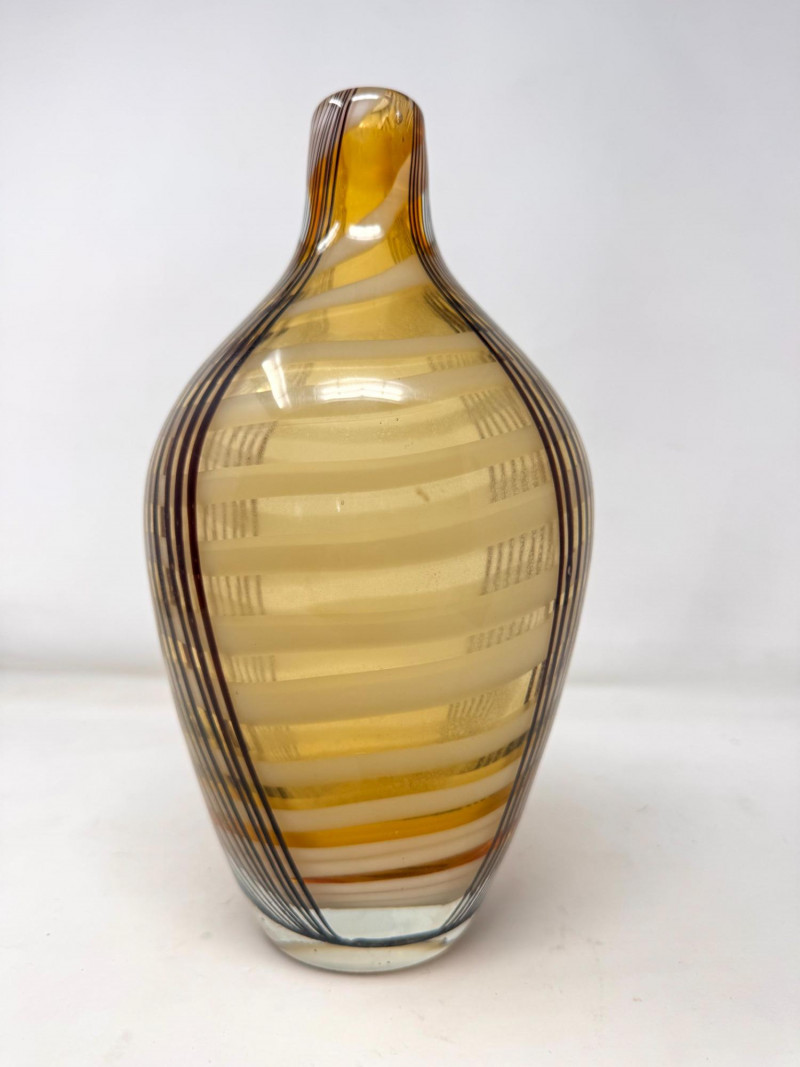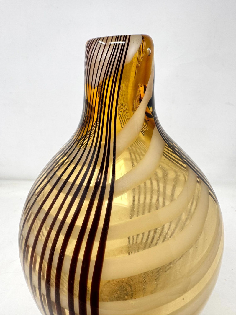 Lot # 31 - Amber Blown Art Glass Vase w/ Thick Round Form & Narrow Top
