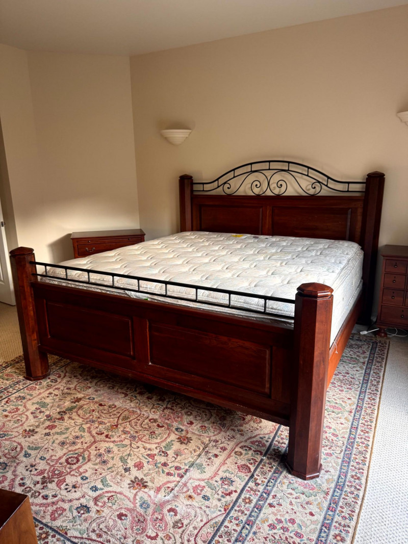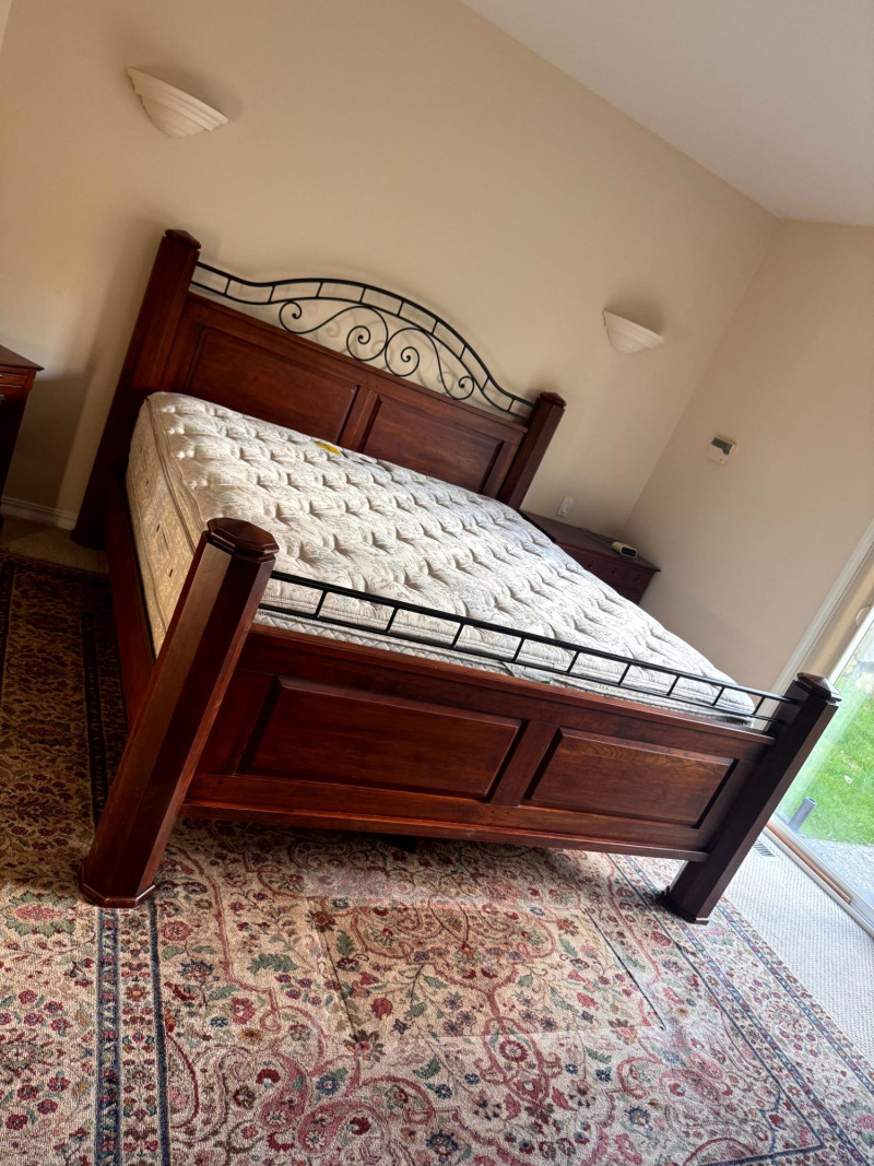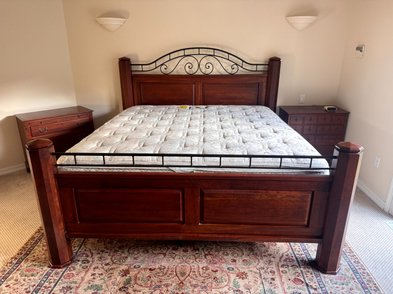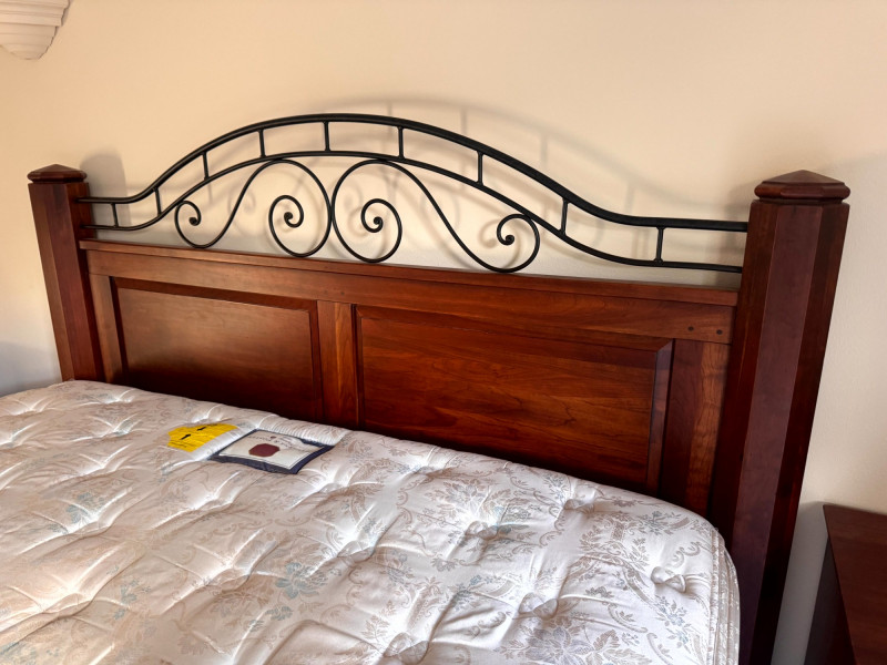 King Size Wood & Metal Bed Frame – Bob Timberlake Style. Bidding on this lot is an agreement that: (1.) You will have at least 2 capable, able bodied persons to lift and load at a minimum. (2.) You will bring a hand truck and/or any other tools needed to remove this item. If these steps are not followed your item will be forfeit and no refund given.