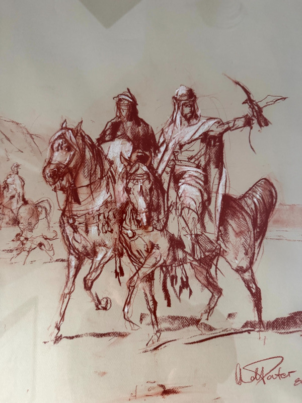 Andre Pater “Allies of the Chase” Original Signed Sketch 1988 – Framed.
