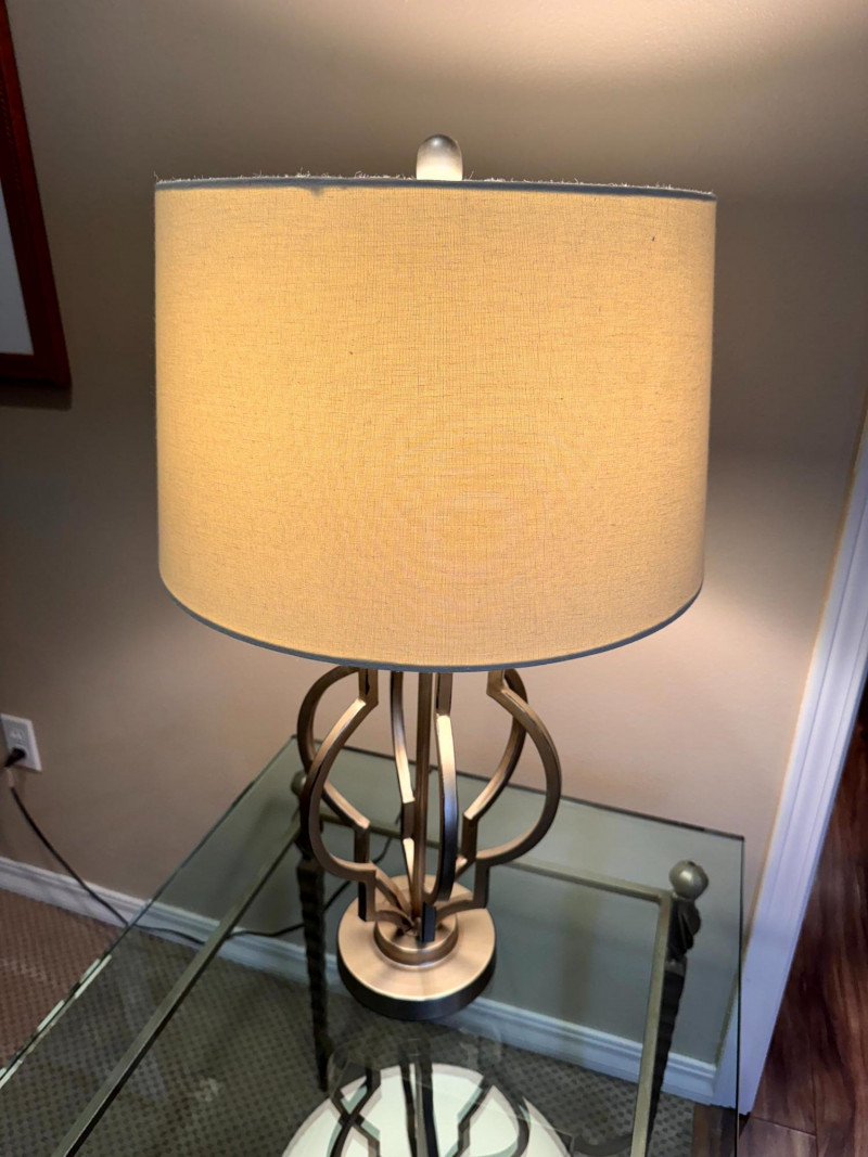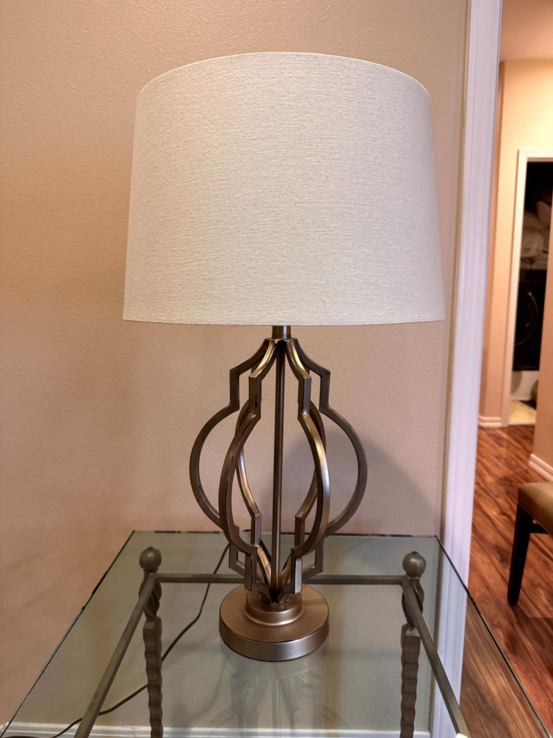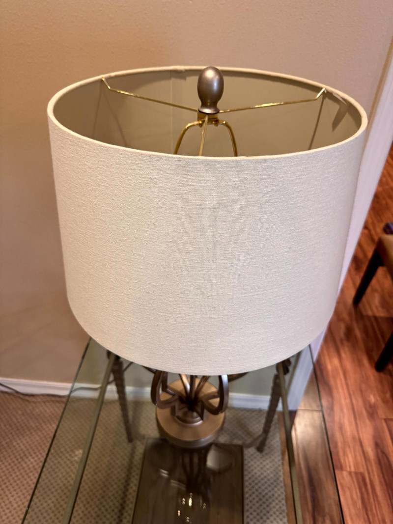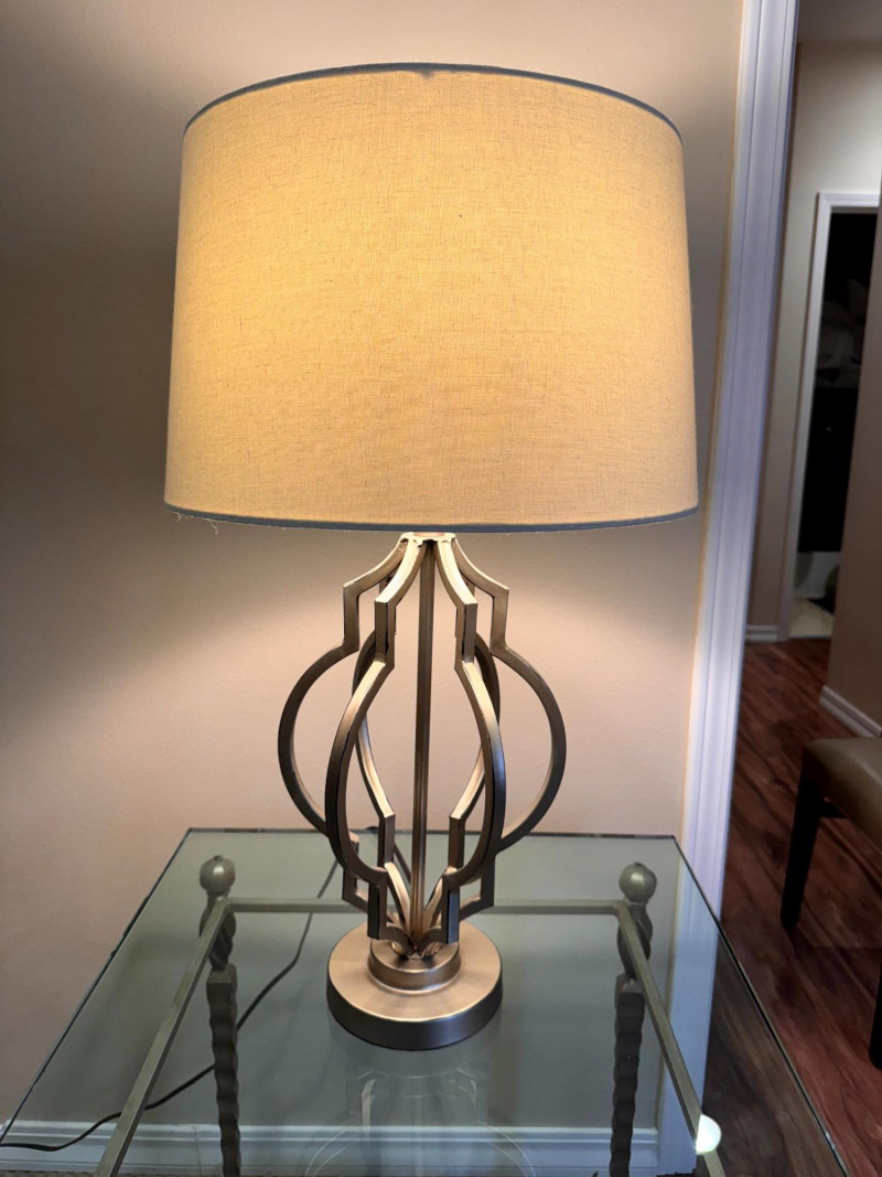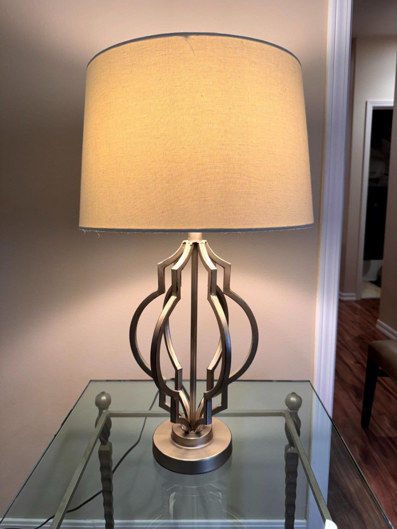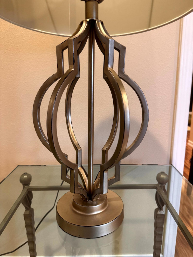 Lot # 66 - Modern Silver-Tone Open Cutout Table Lamp w/ Drum Shade