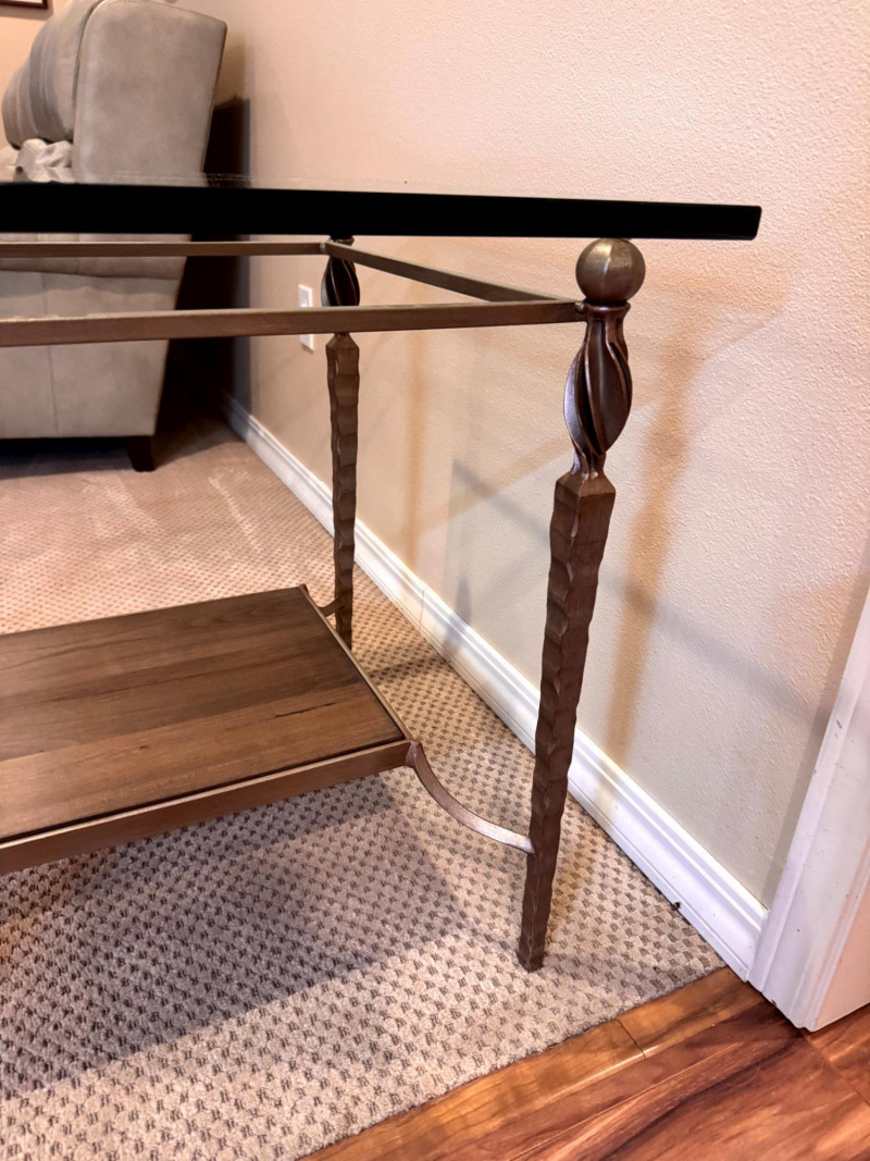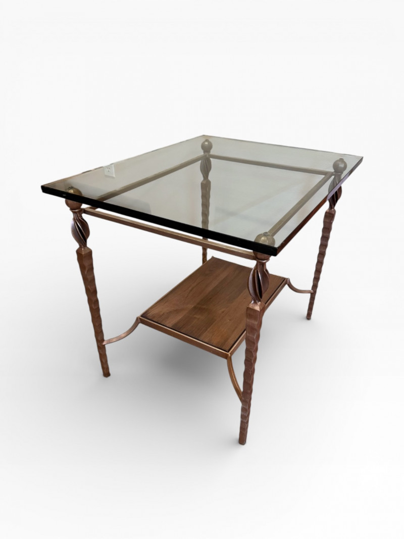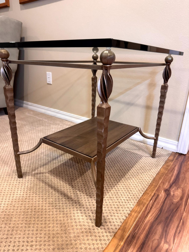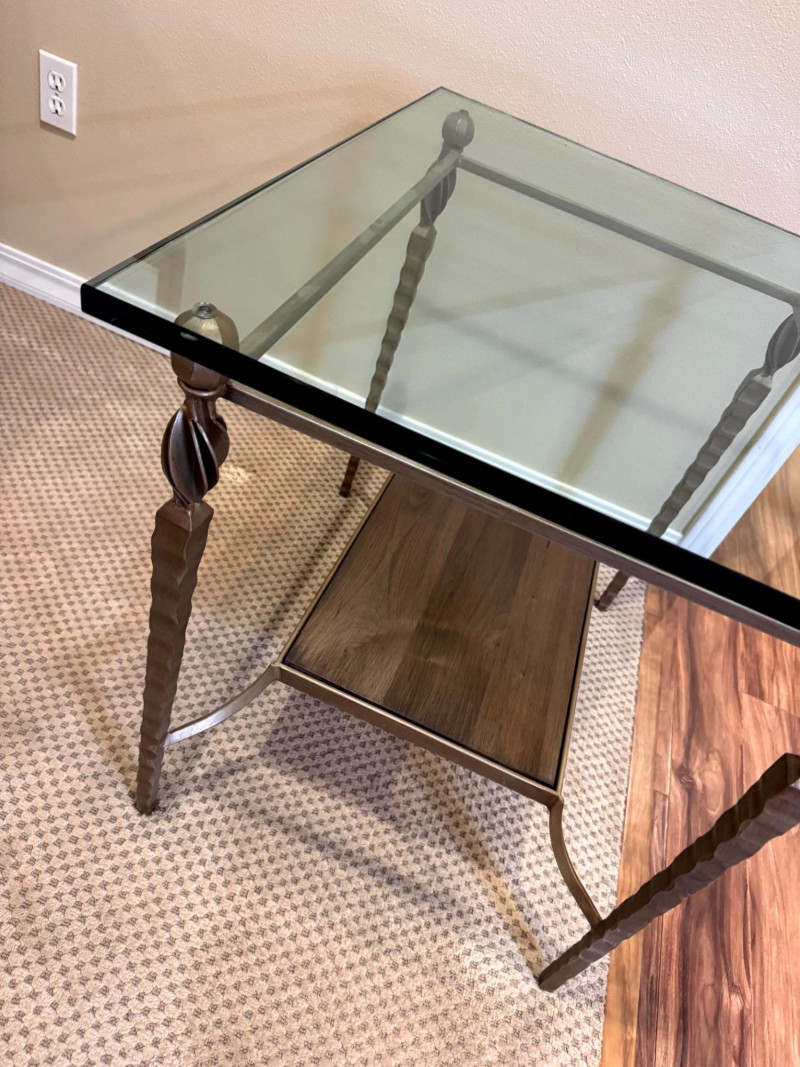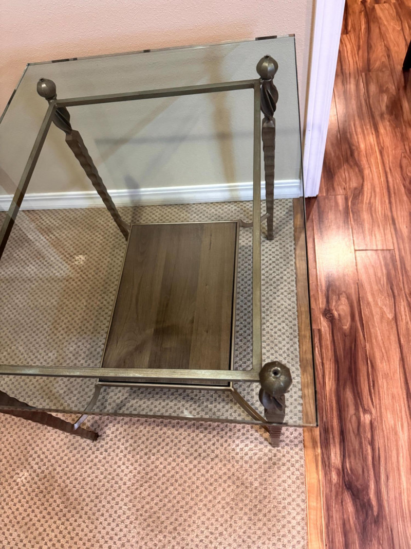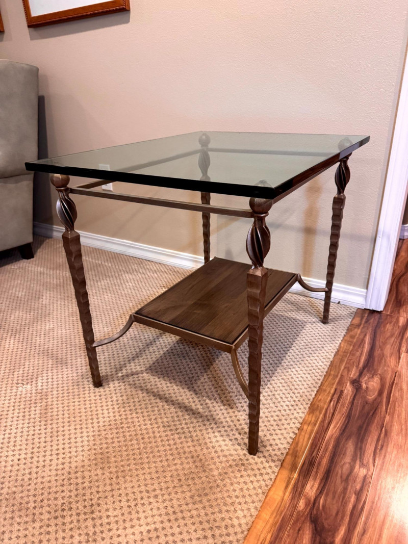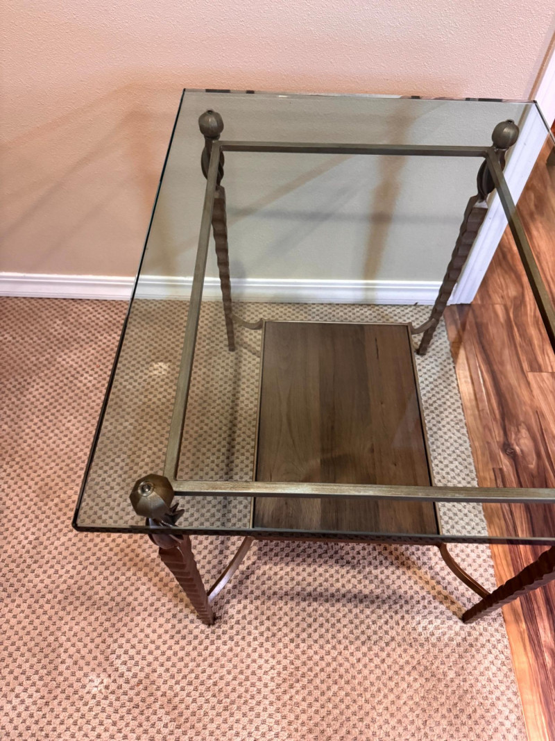 Small Glass Top Side Table w/ Sculpted Metal Base – Matches Lot #65.