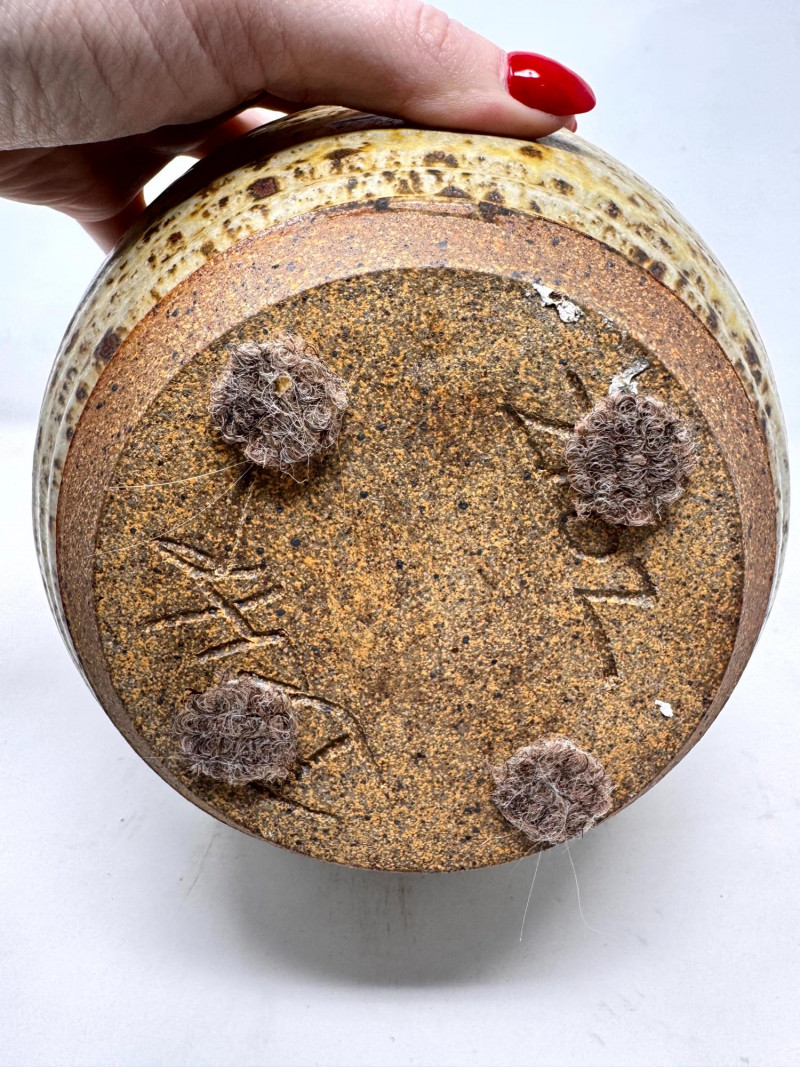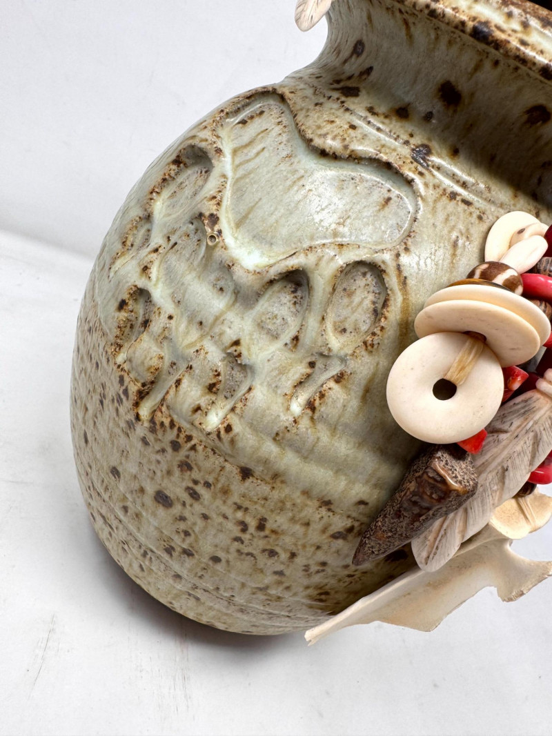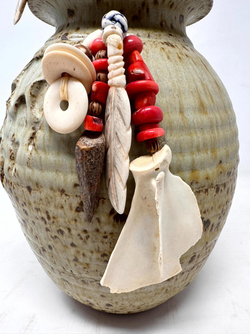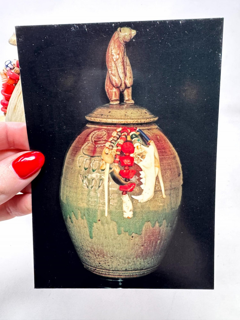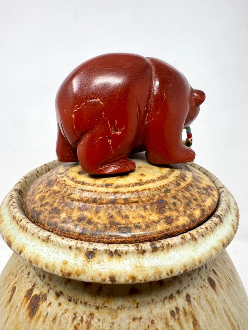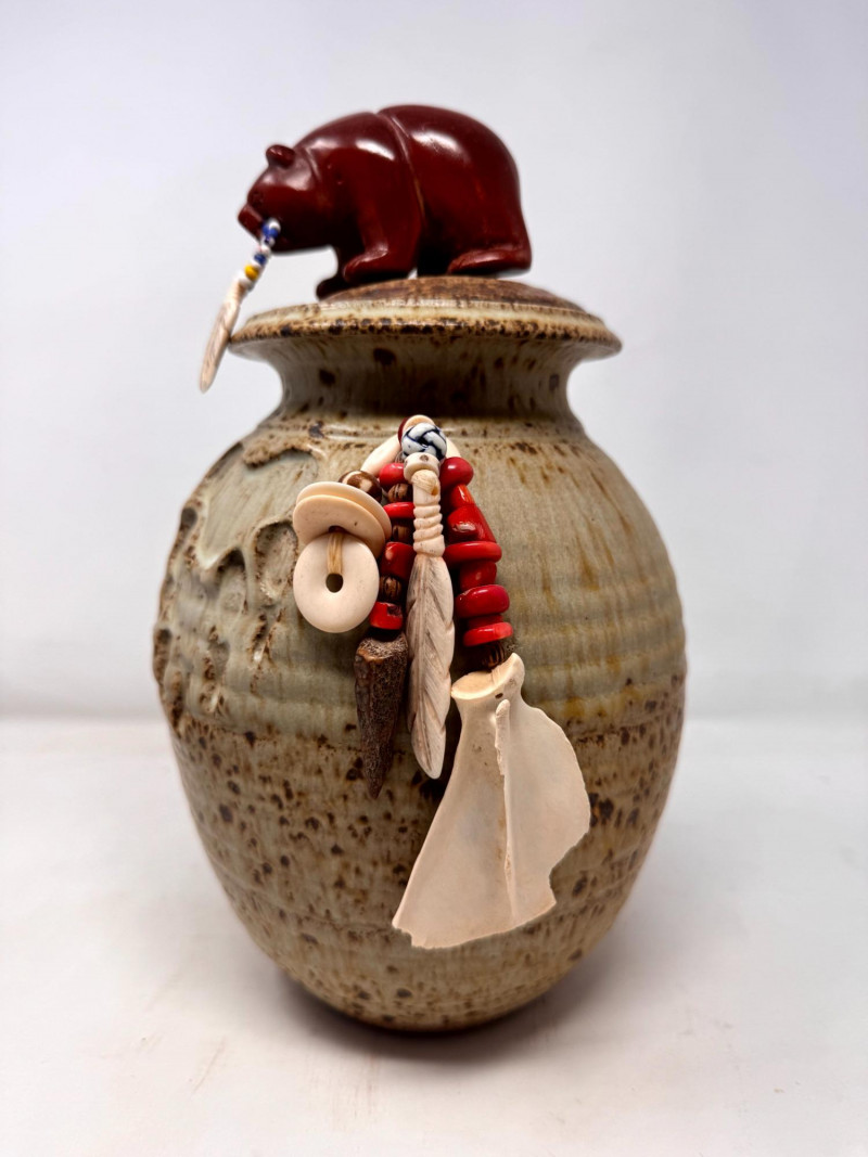 Lot # 72 - Haida Spirit Vessel Stoneware Jar w/ Bear Lid – Wood Ash Glaze