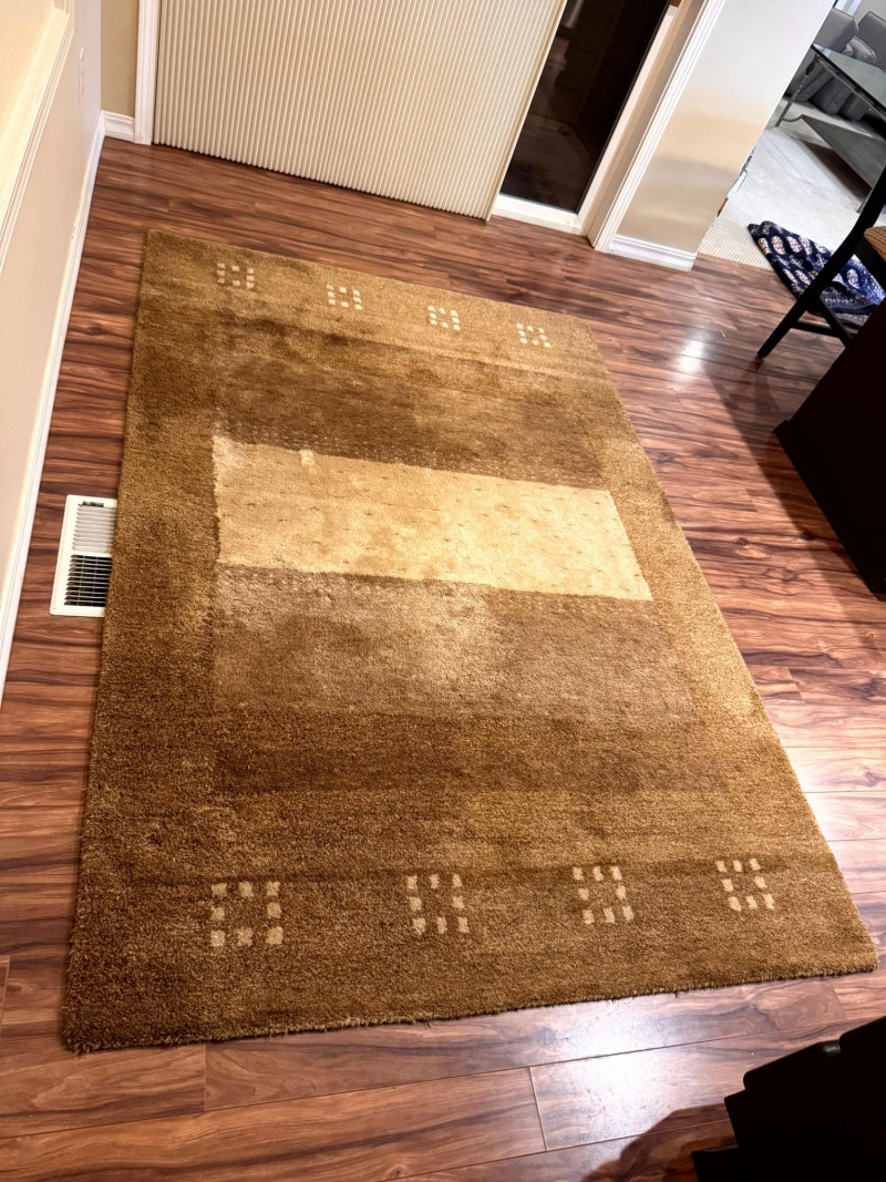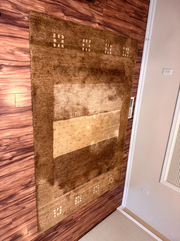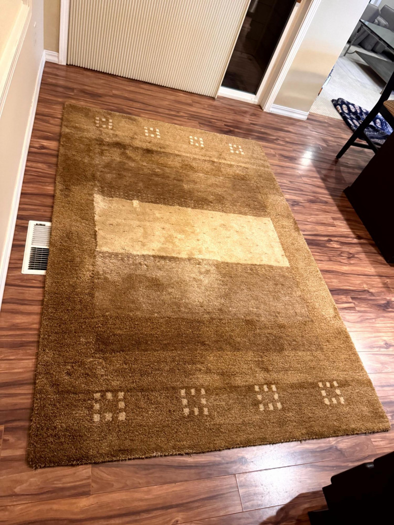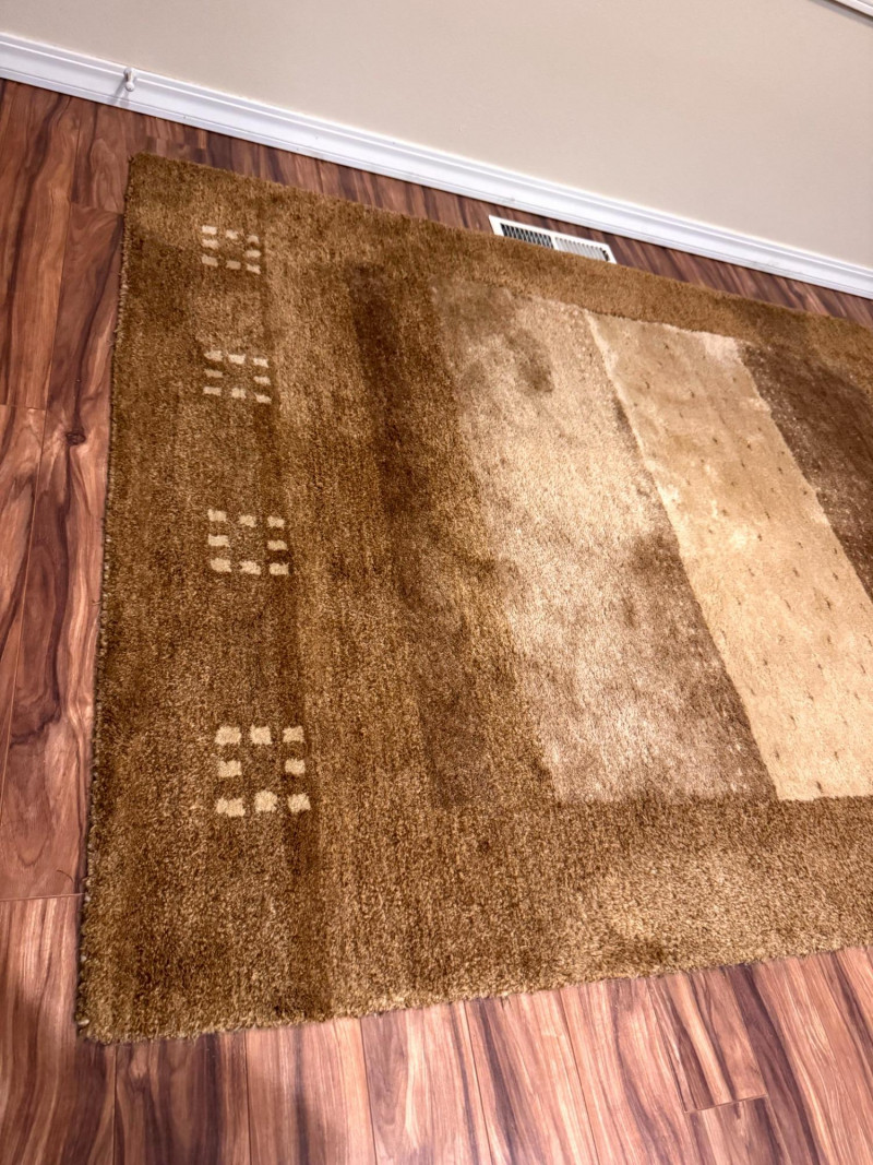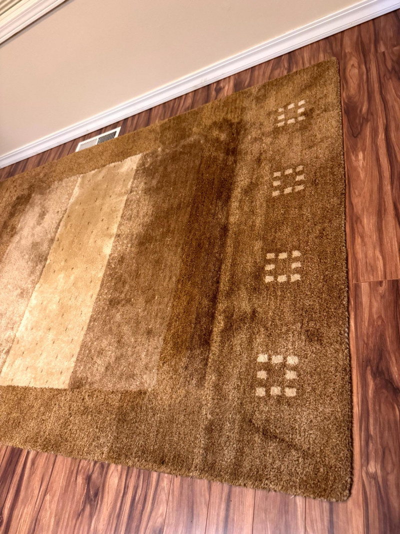 Large Brown & Tan Wool Area Rug – Geometric Block Design.