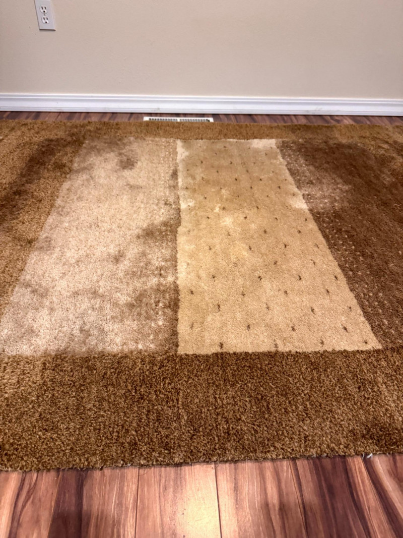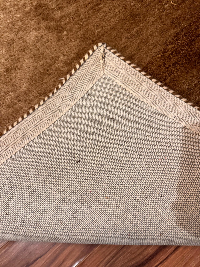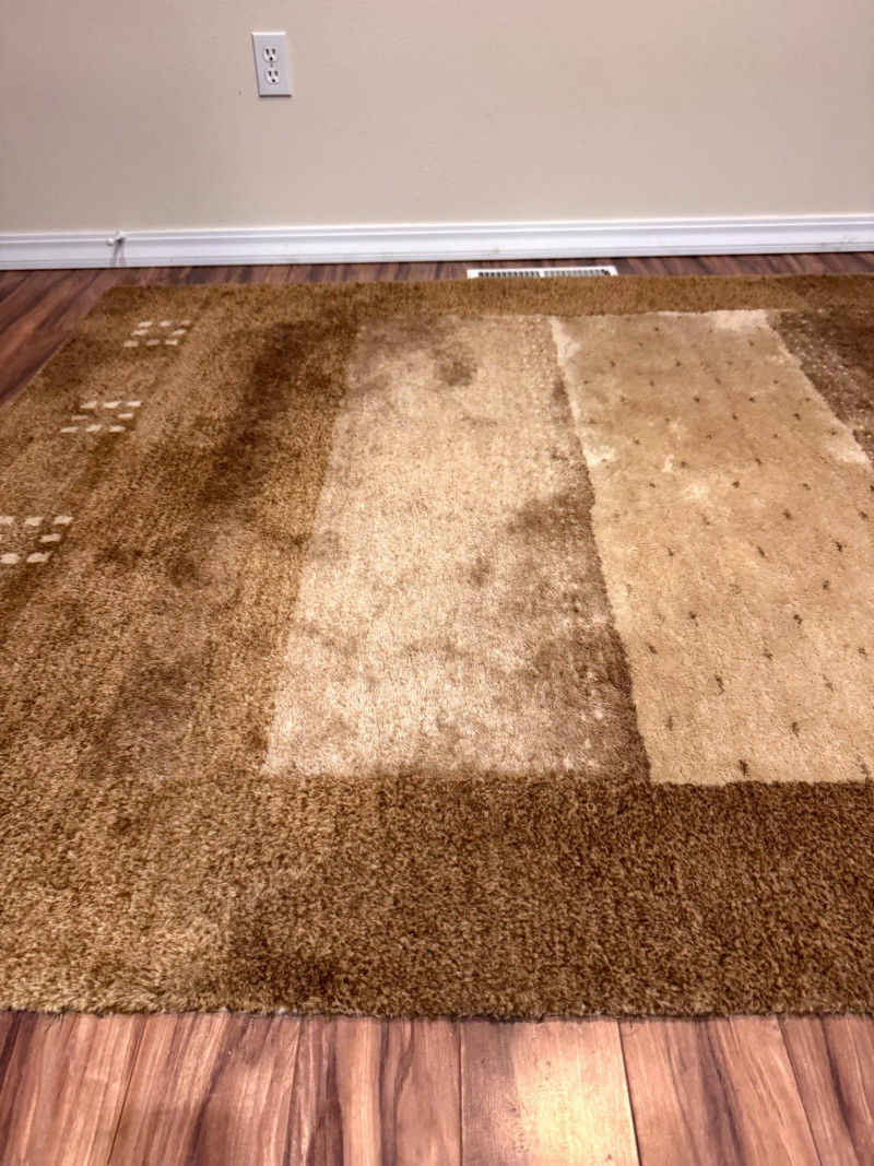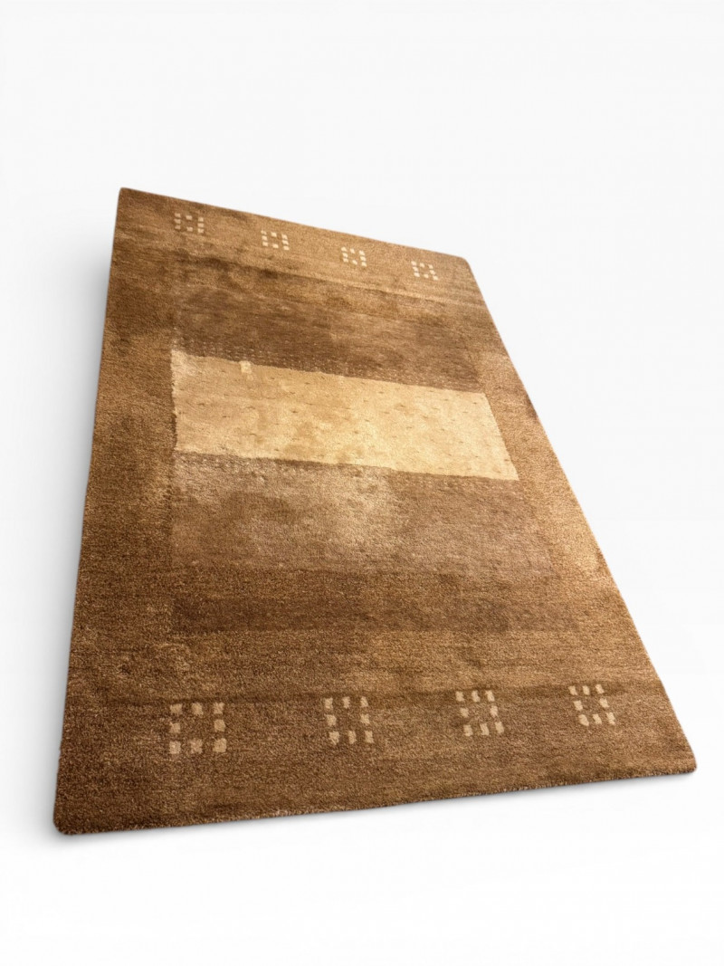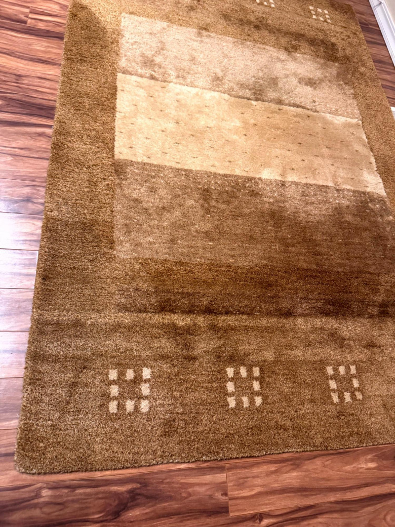 Large Brown & Tan Wool Area Rug – Geometric Block Design.